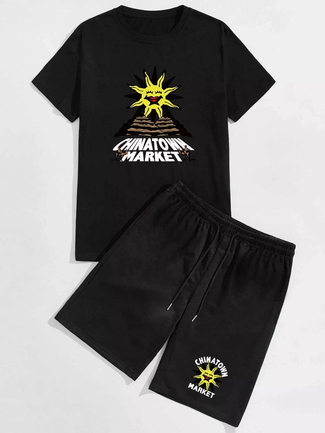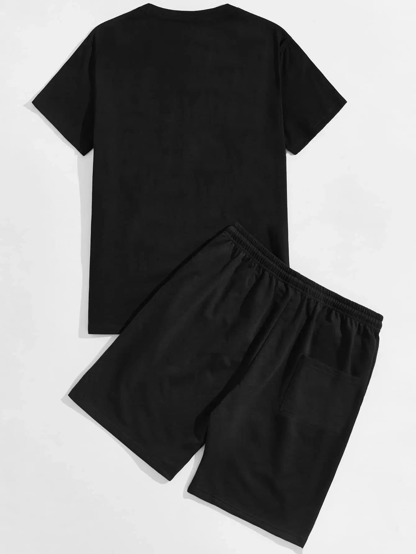 Men Letter Graphic Tee & Drawstring Shorts
