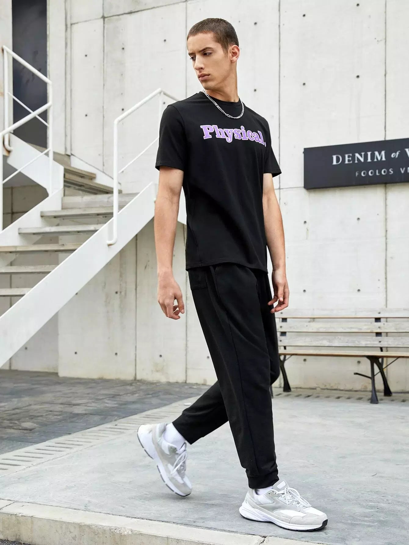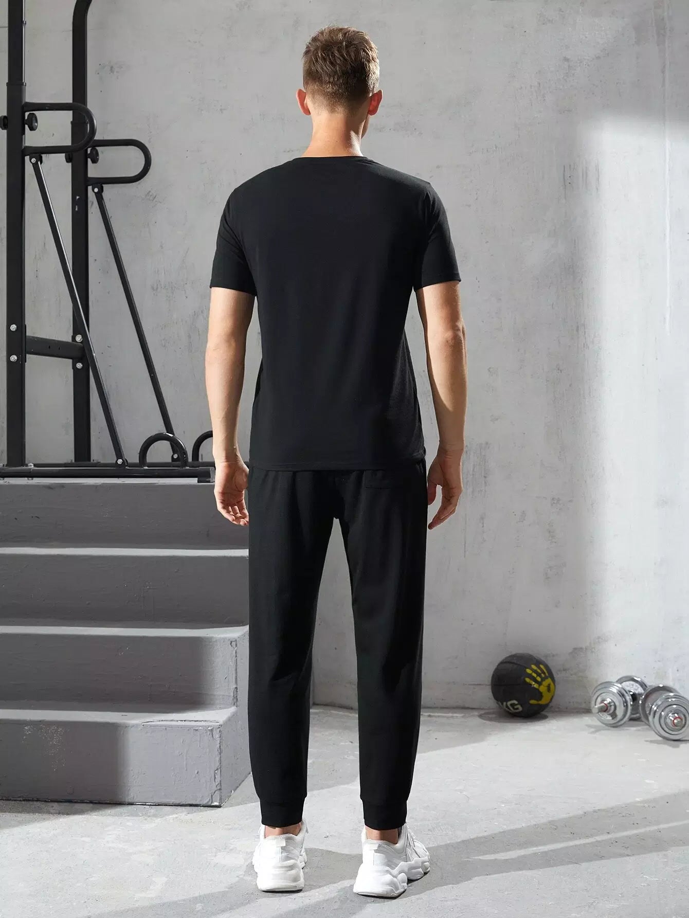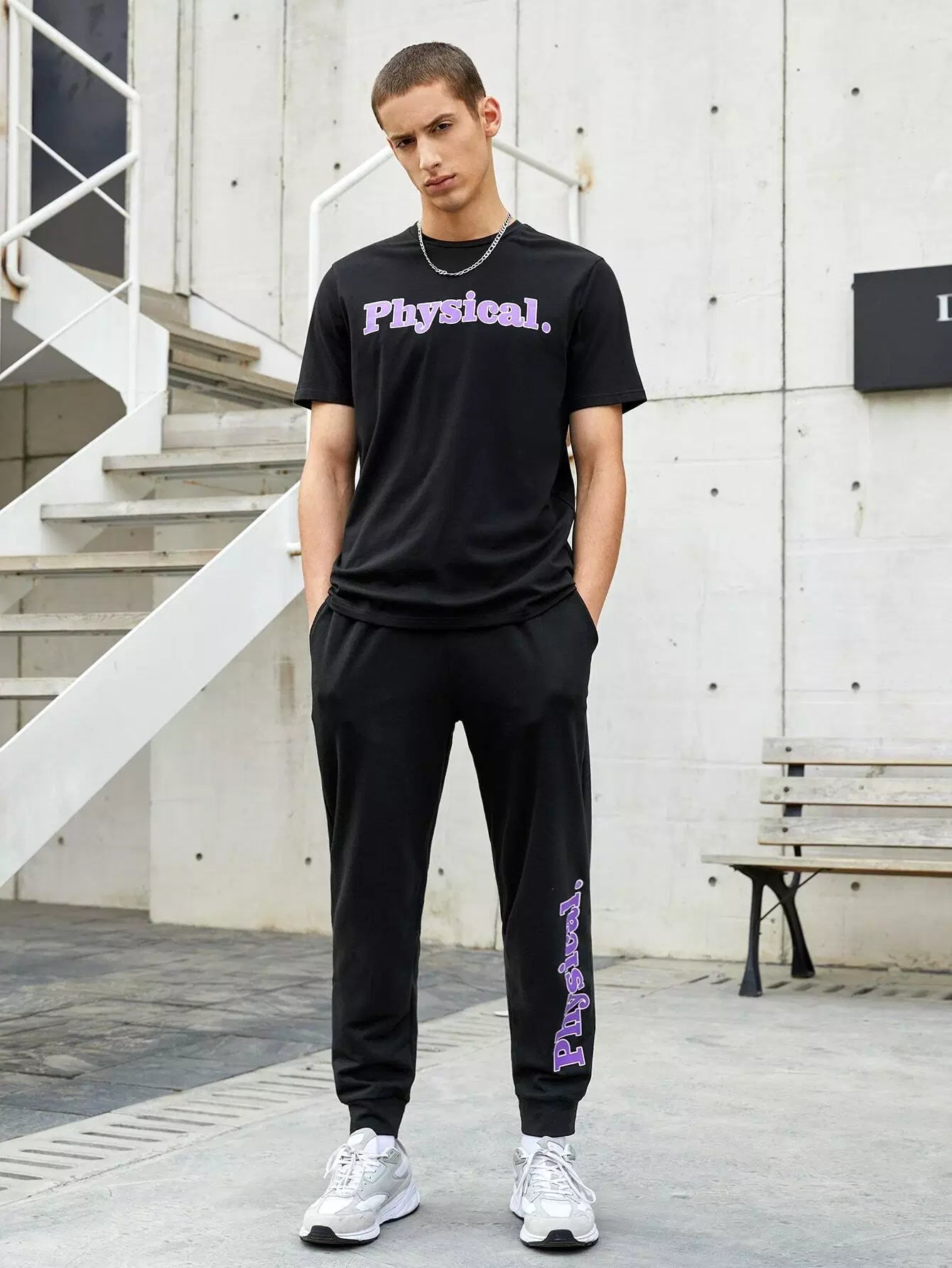 Men Letter Graphic Tee & Pocket Side Joggers Set
