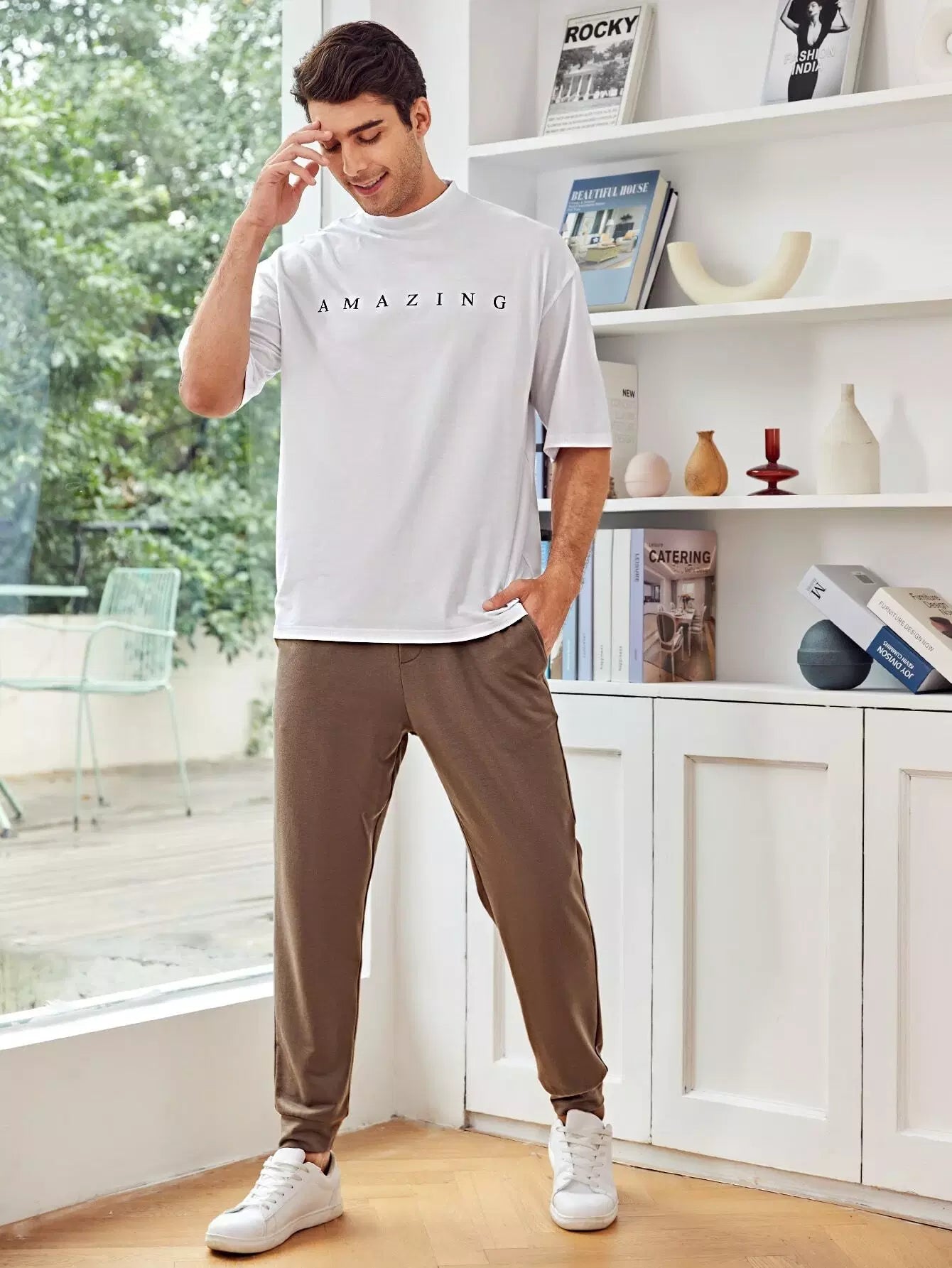 Men - Men Letter Graphic Tee & Sweatpants Set