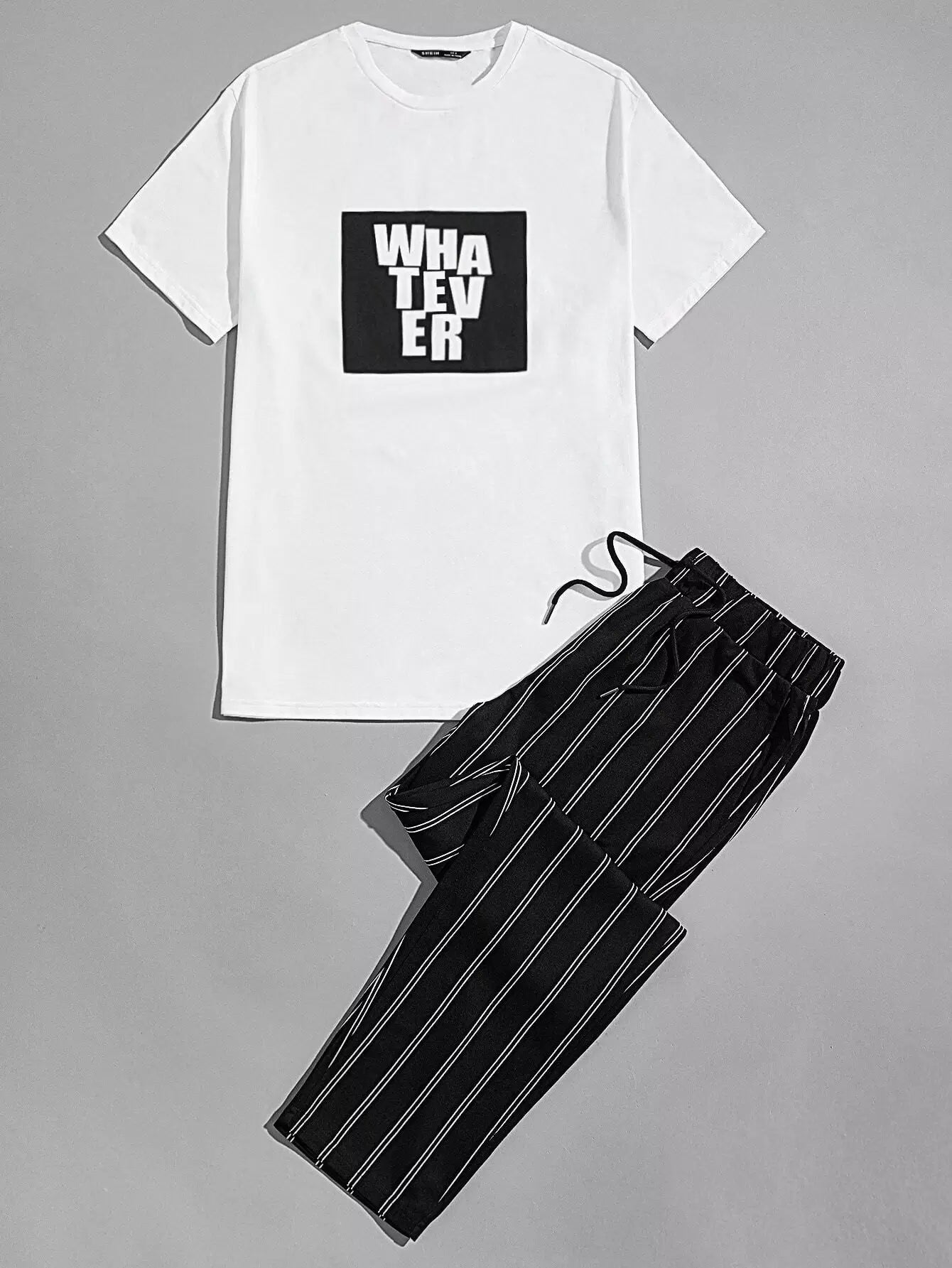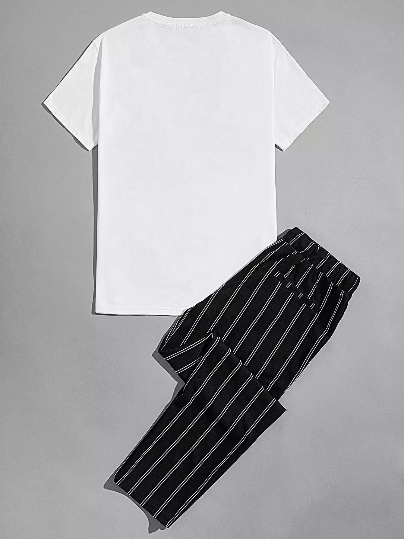 Men - Men Letter Graphic Top & Striped Pants Set