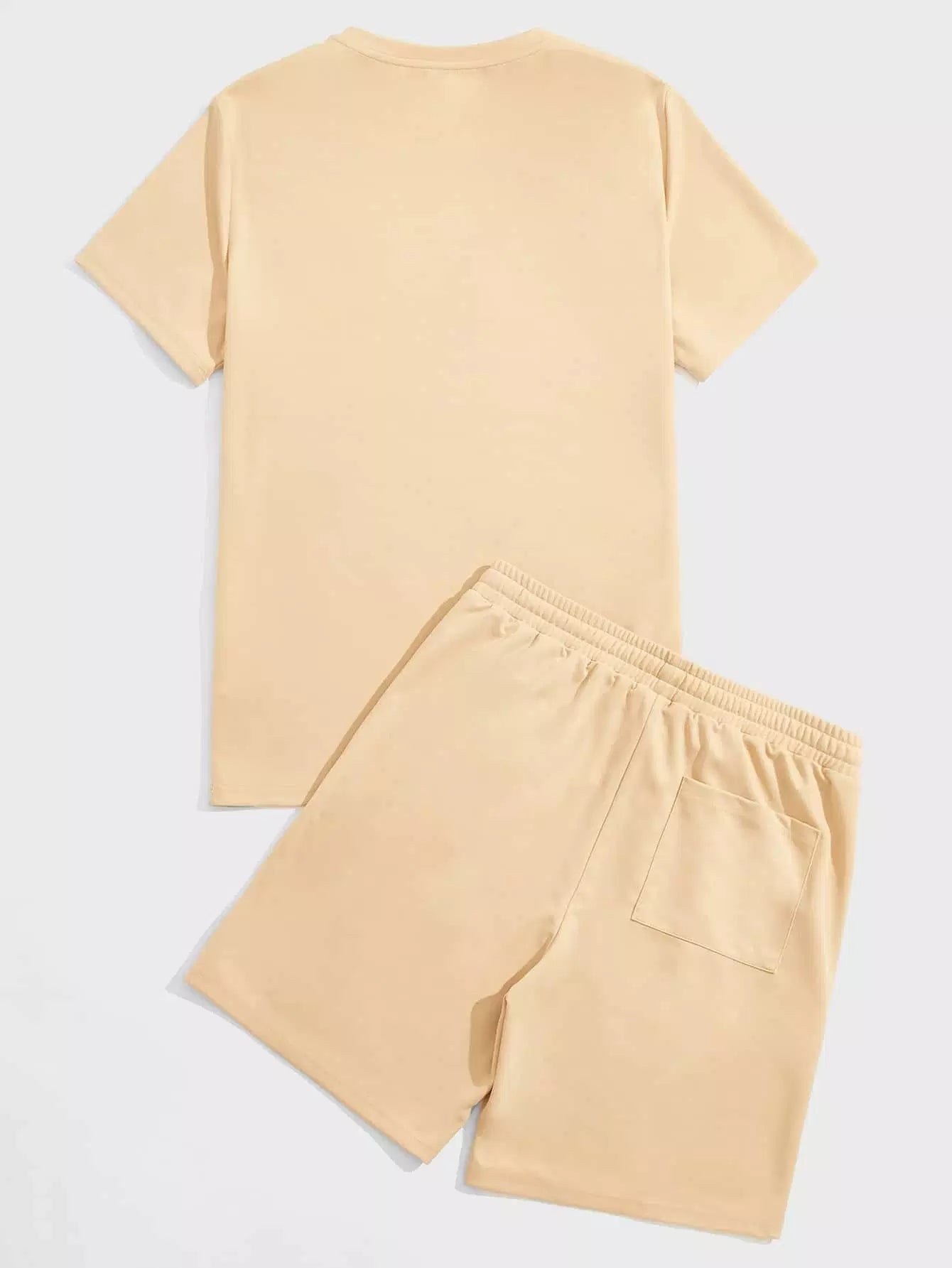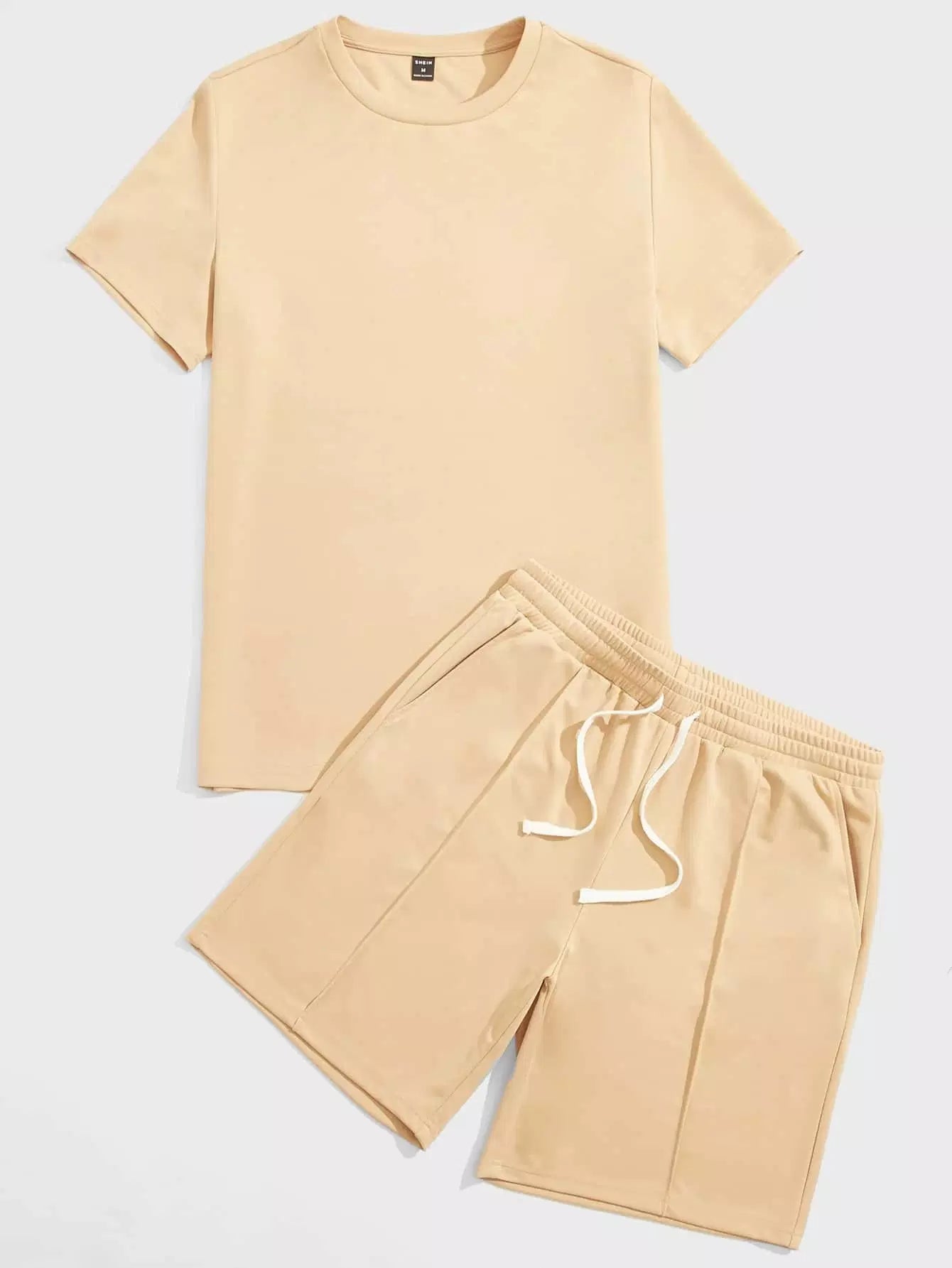 Men Solid Top & Seam Front Track Shorts Set