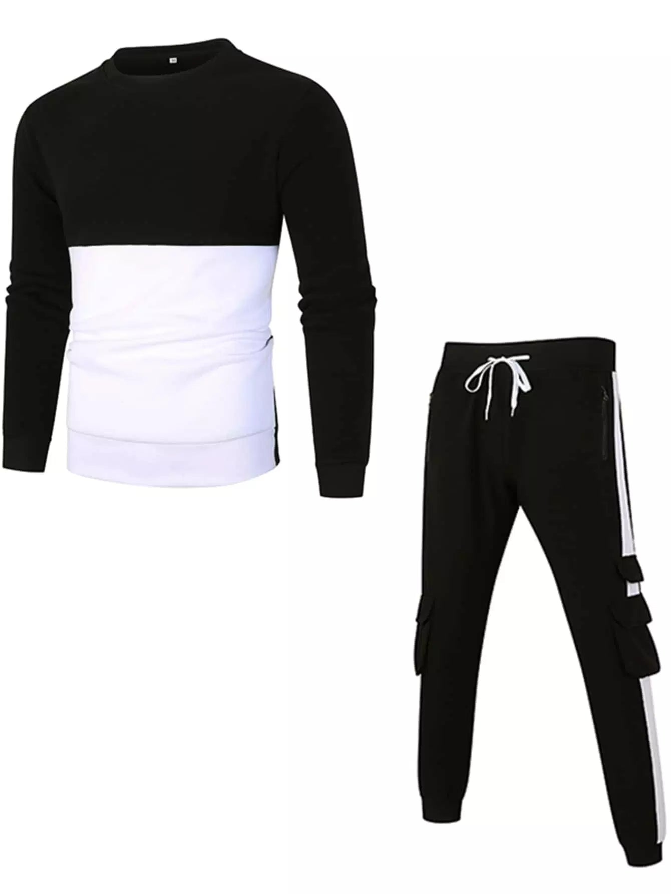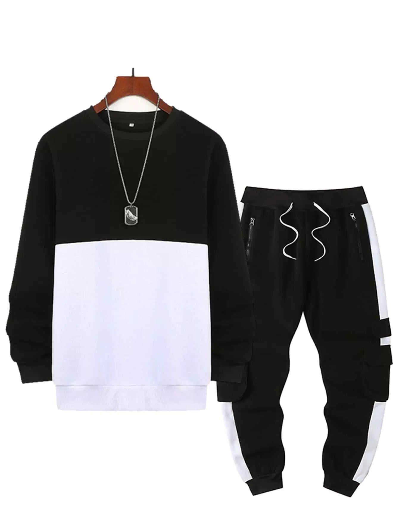 Men Two Tone Sweatshirt & Flap Pocket Pants