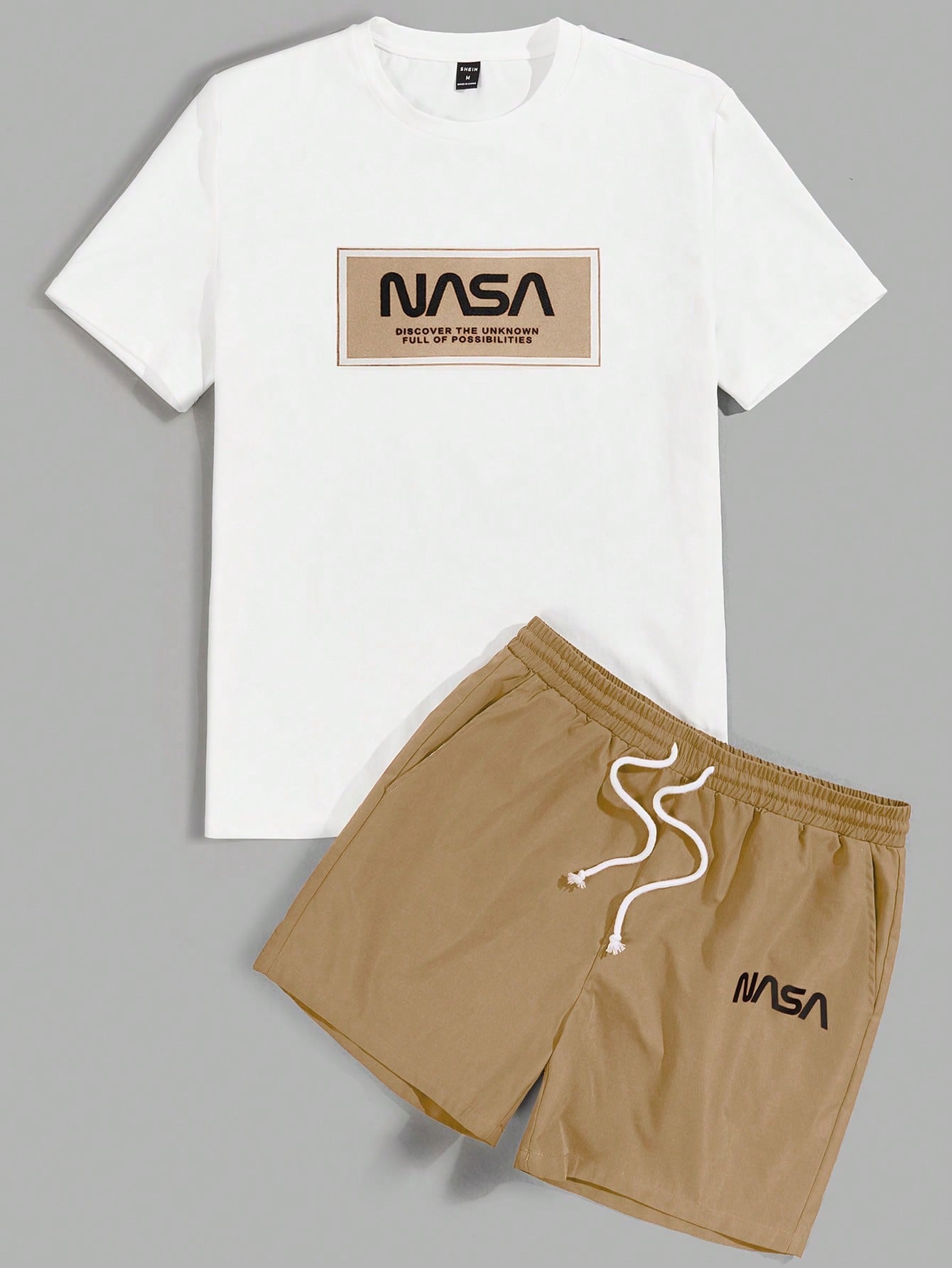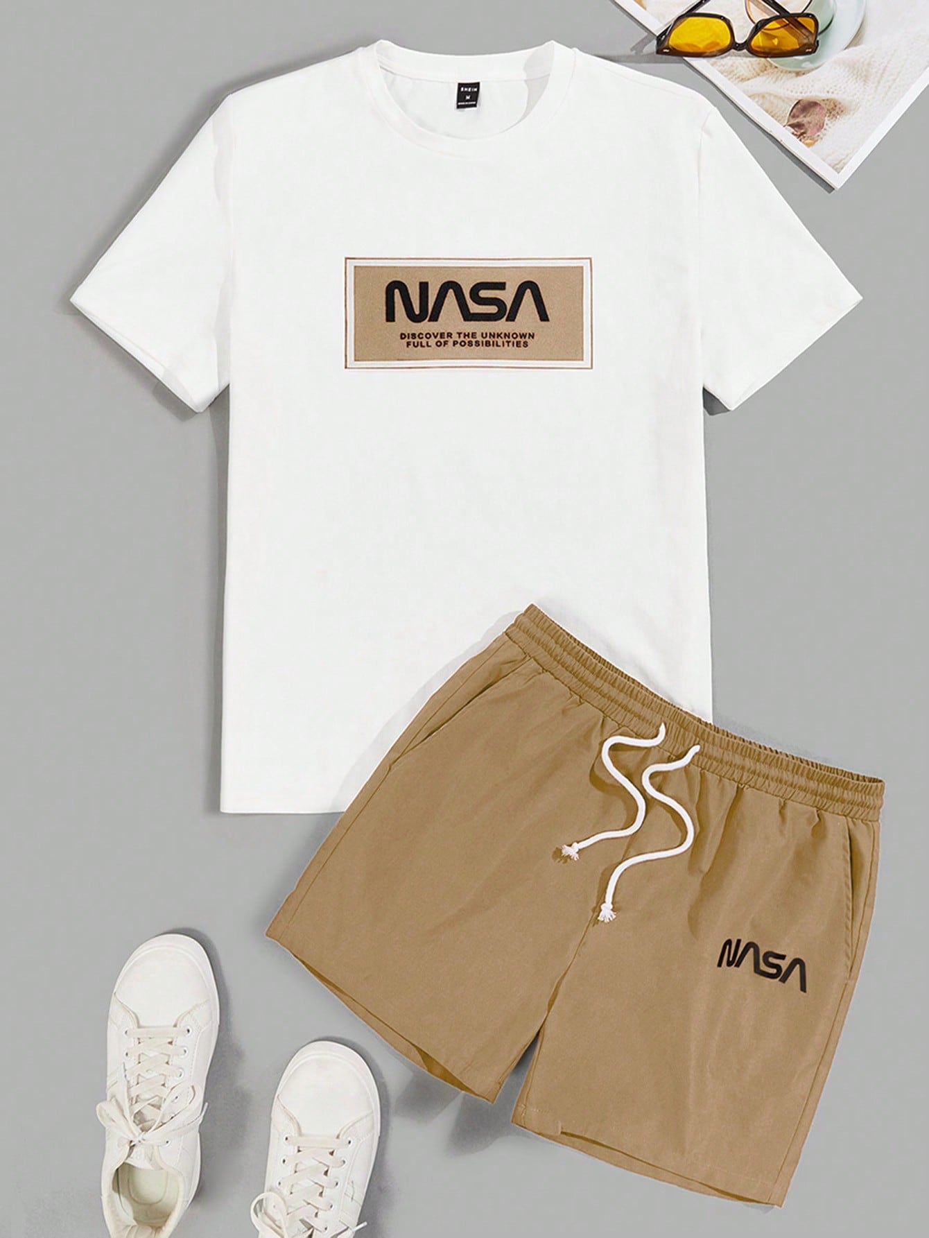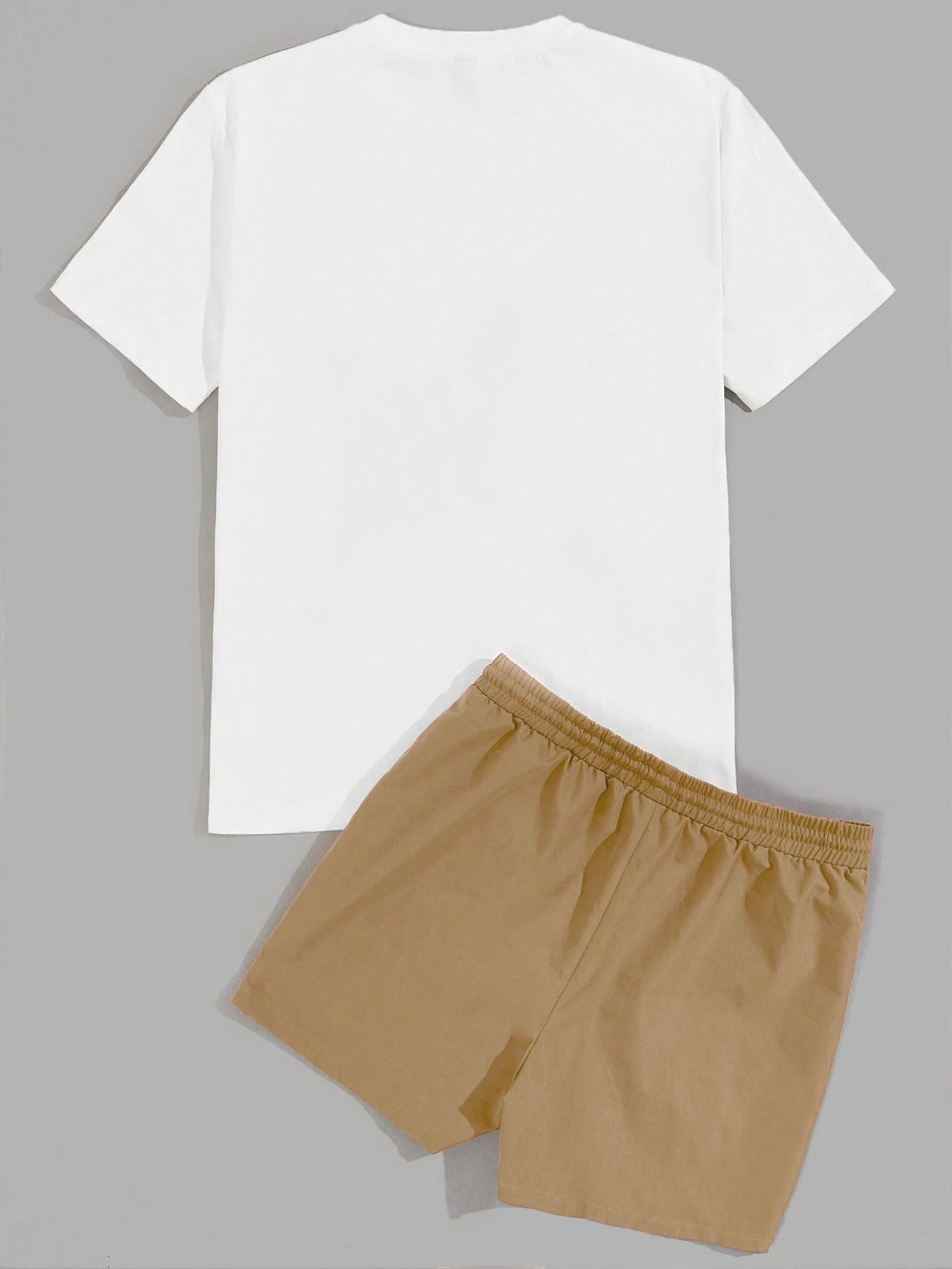 SWAVVY Men Letter Graphic Tee & Drawstring Waist Shorts Summer Outfit