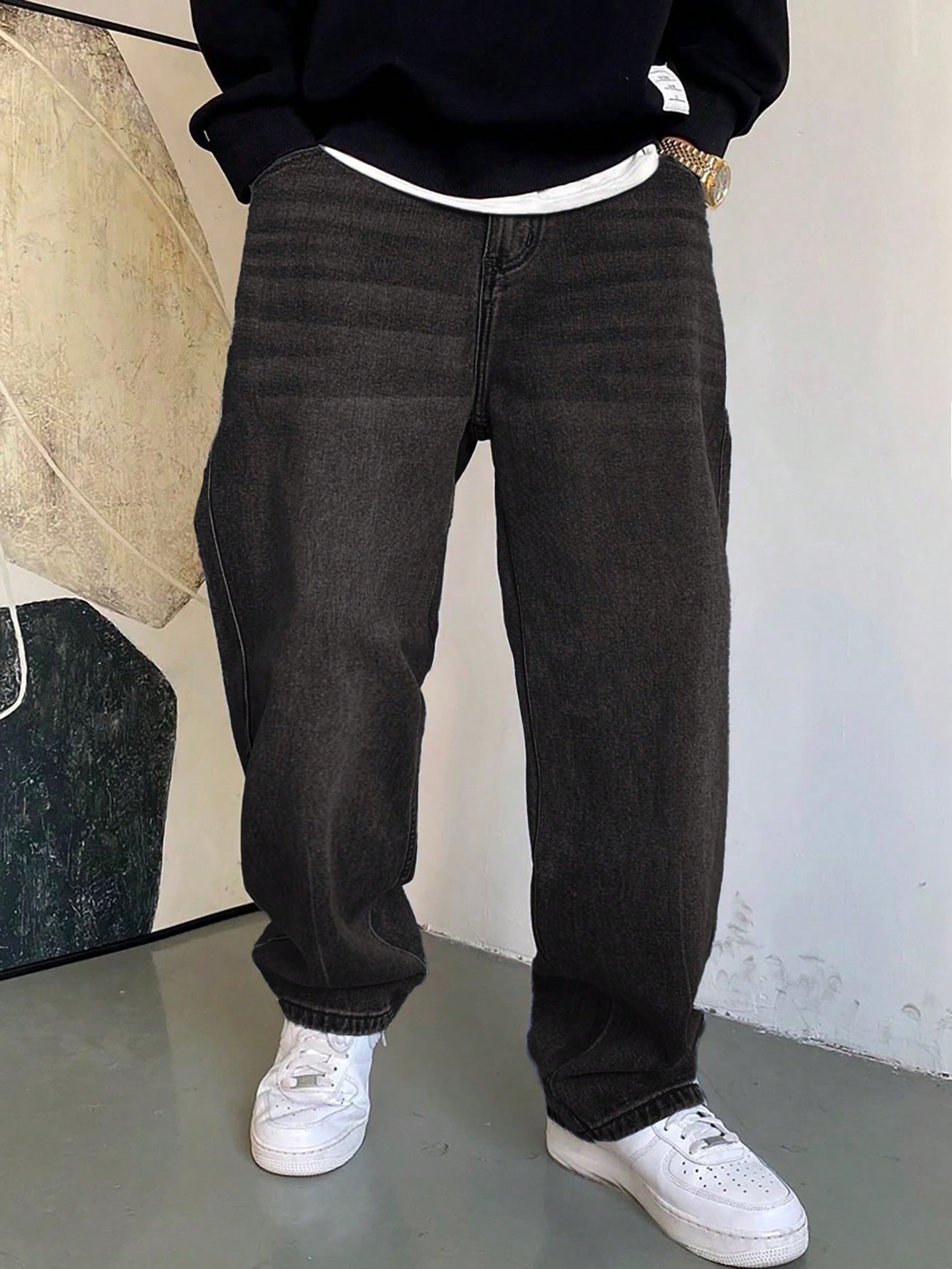 1pc Men's Casual Washed Loose Straight Leg Wide-Leg Jeans