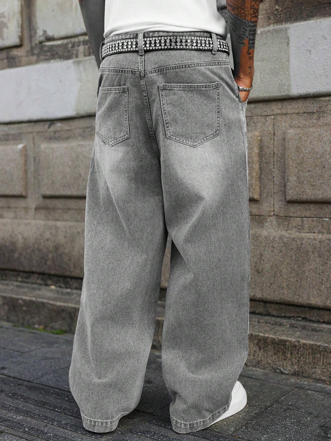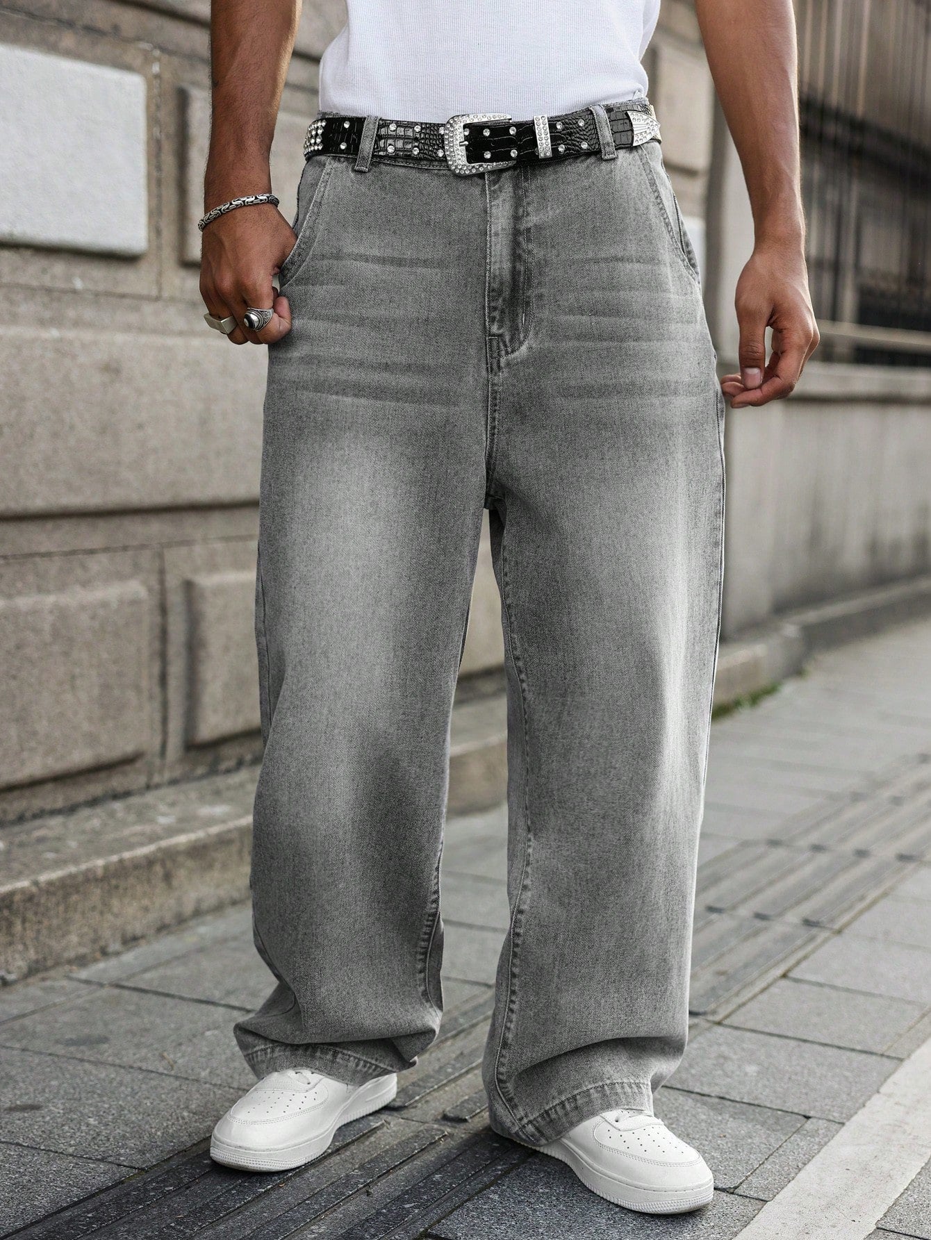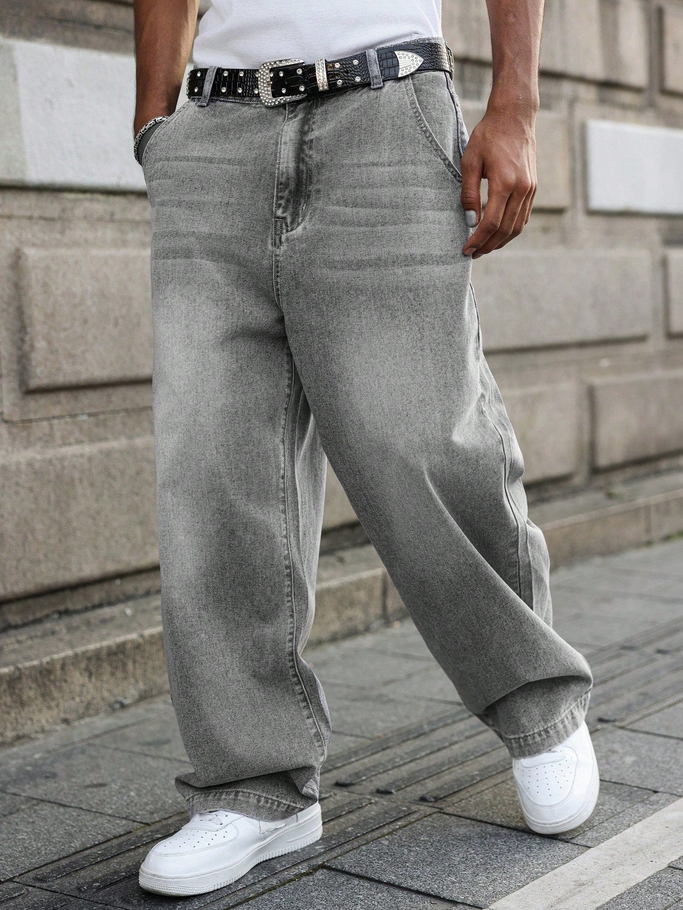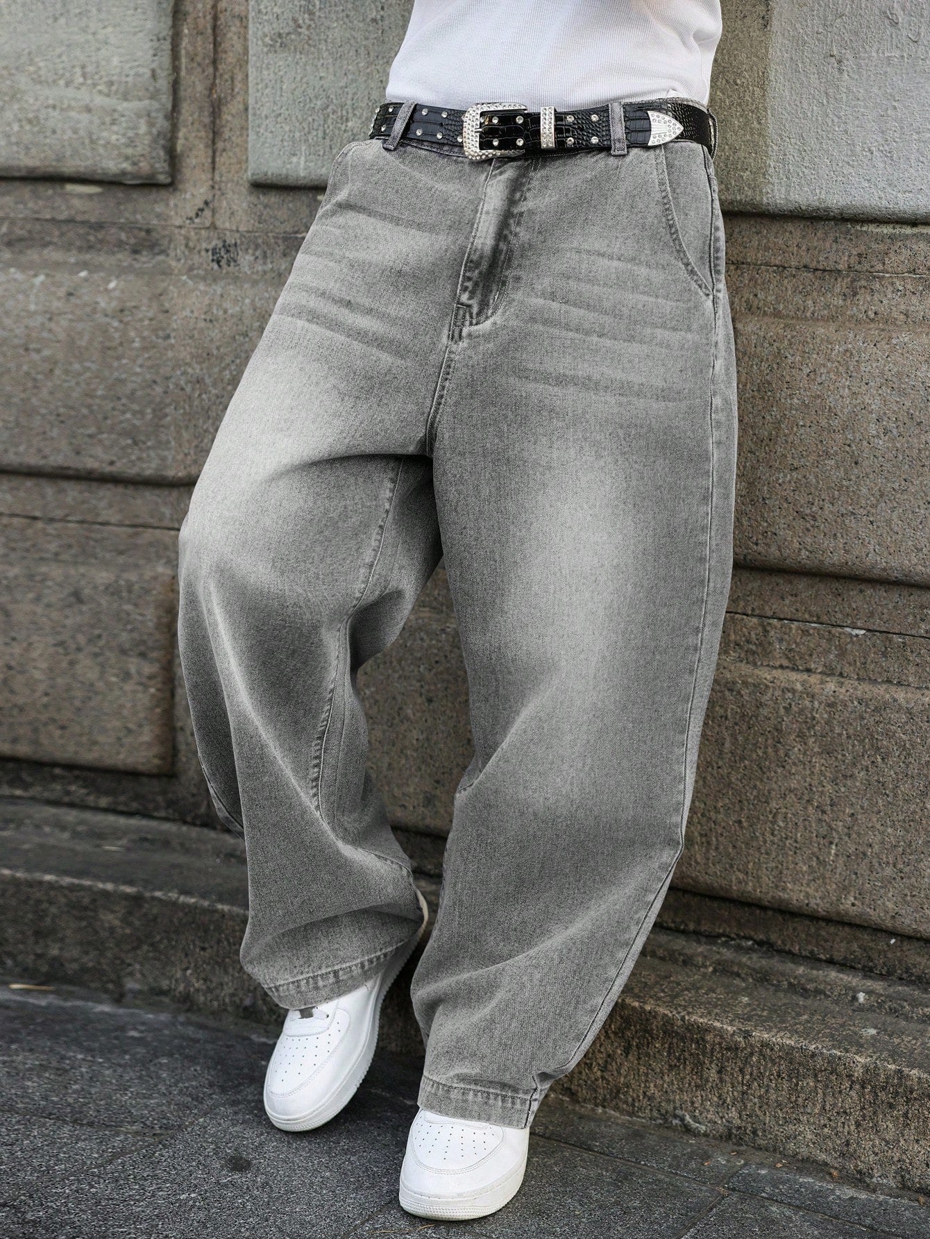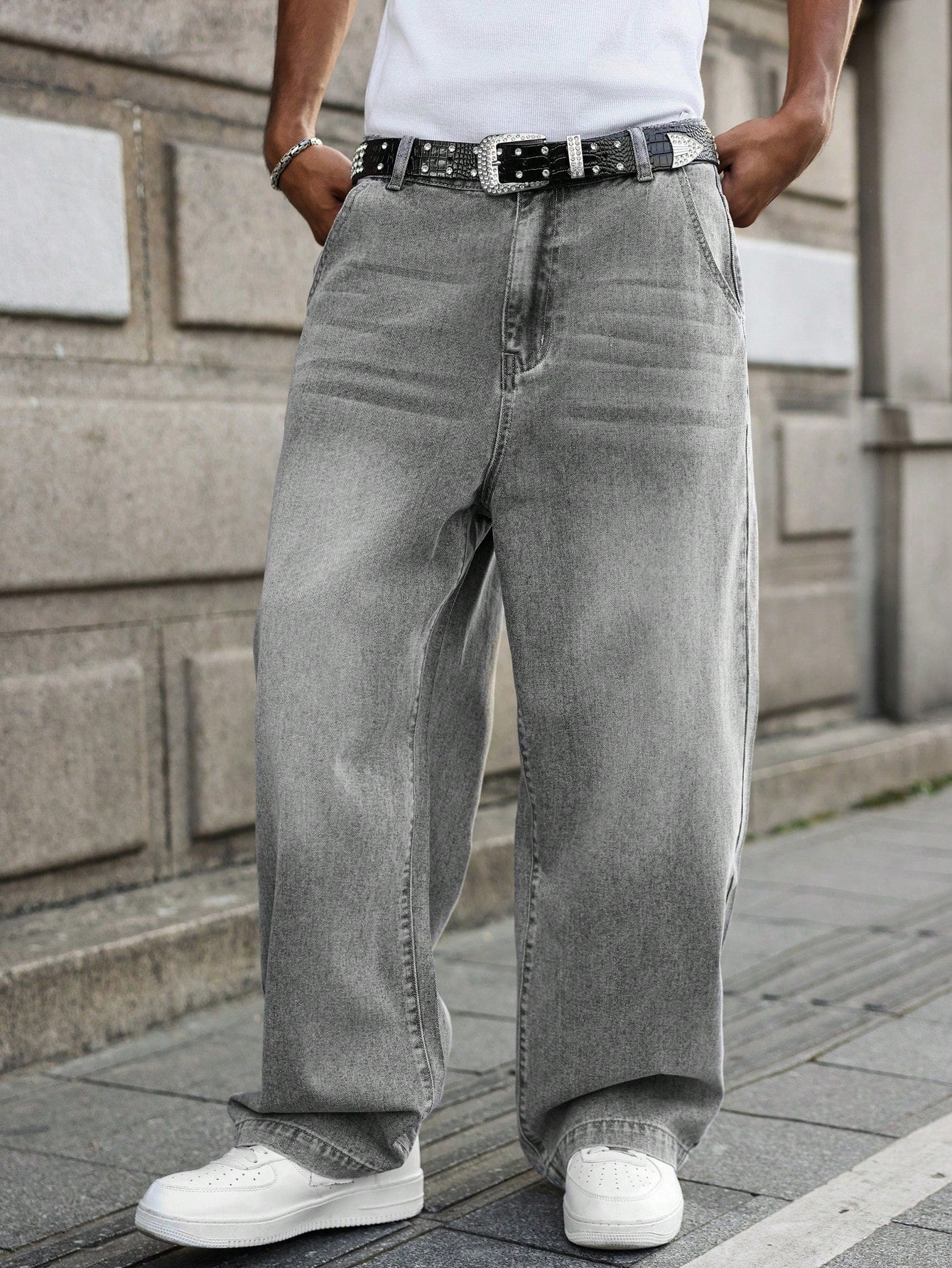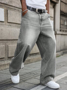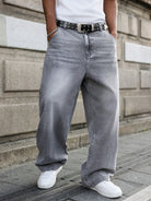 GALLERY FADE Men's Light Grey Casual Wide Leg Loose Fit Denim Jeans Going Out Urban Hang Out Vacation