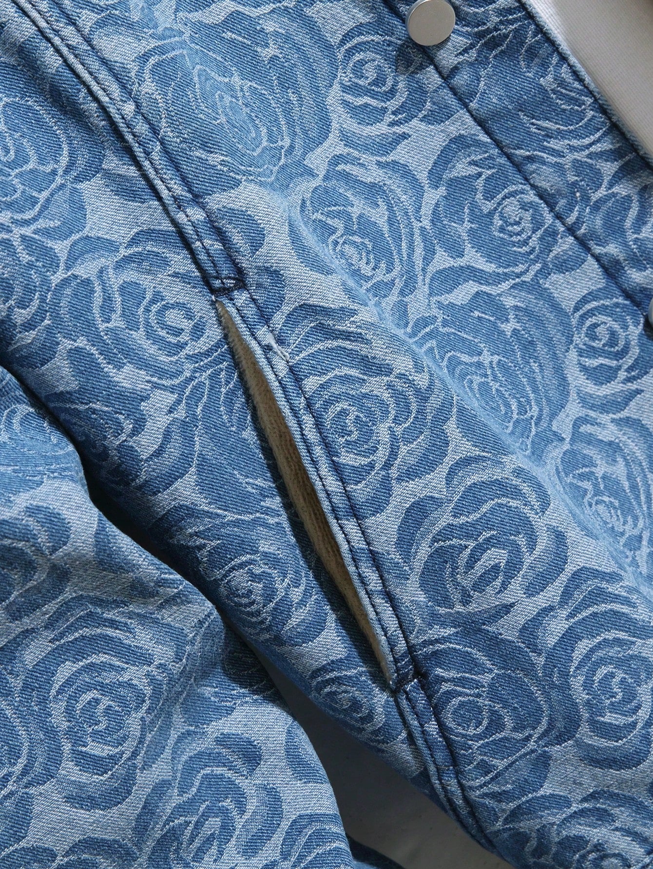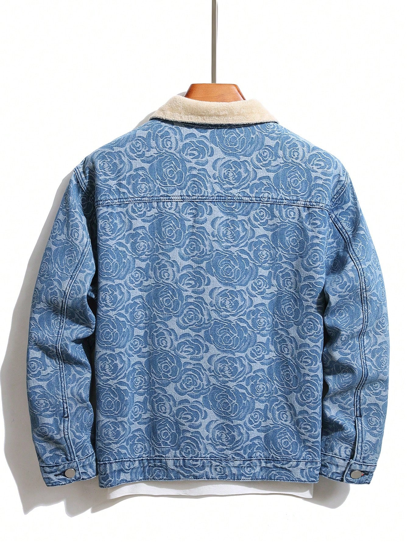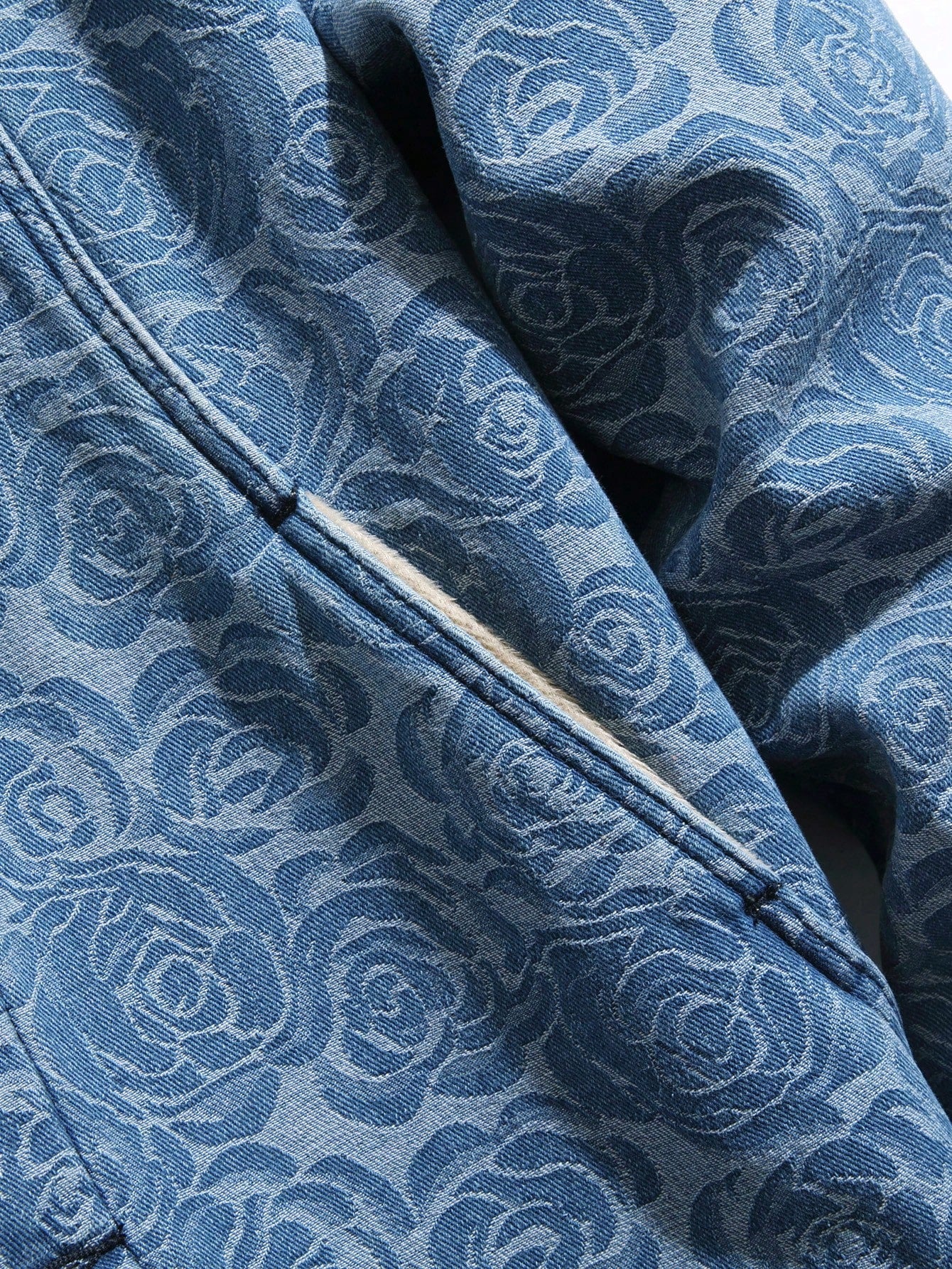 Manfinity Hypemode Plus Size Men's Casual Denim Jacket With Allover Floral Print And Front Button, Long