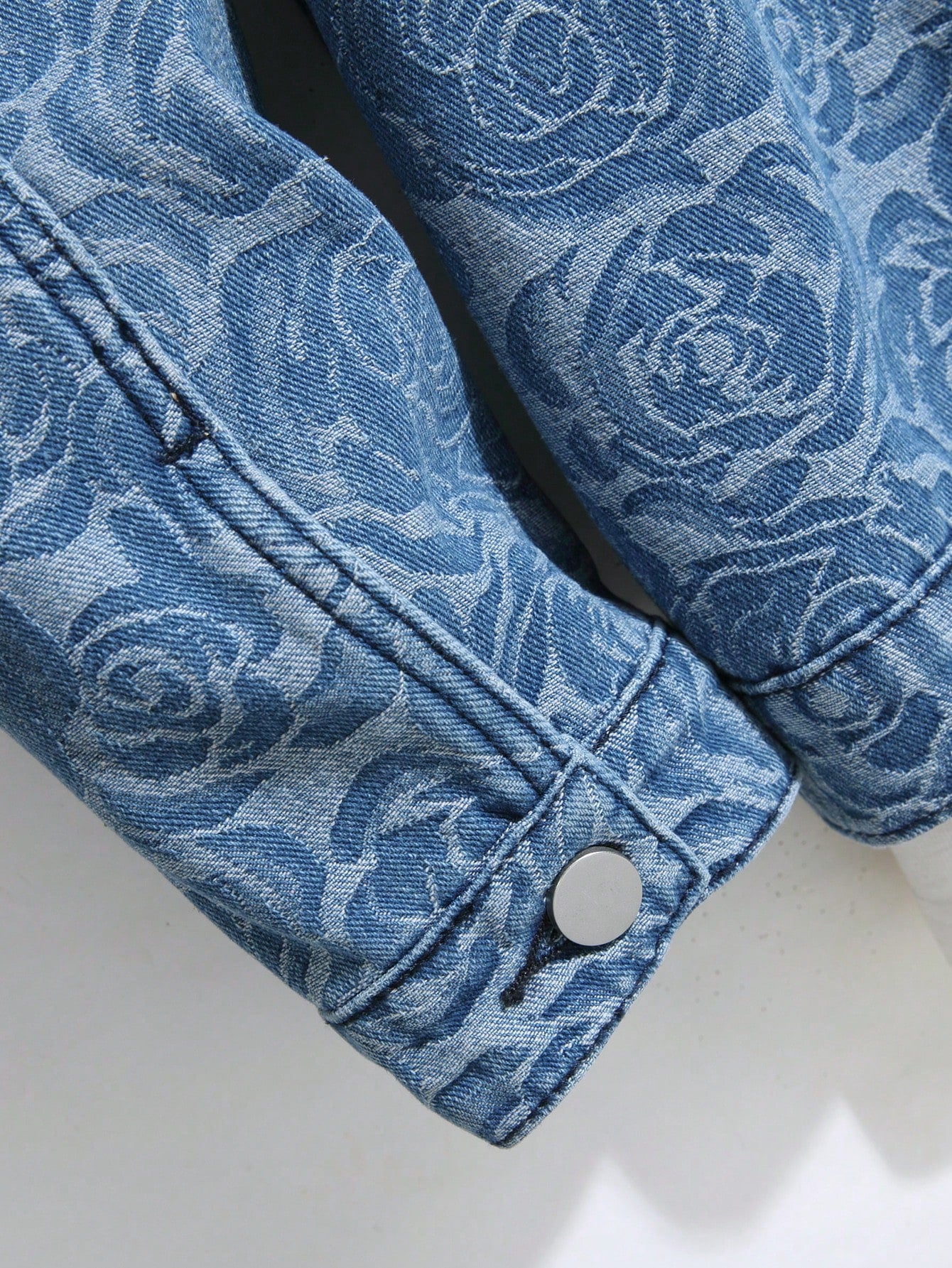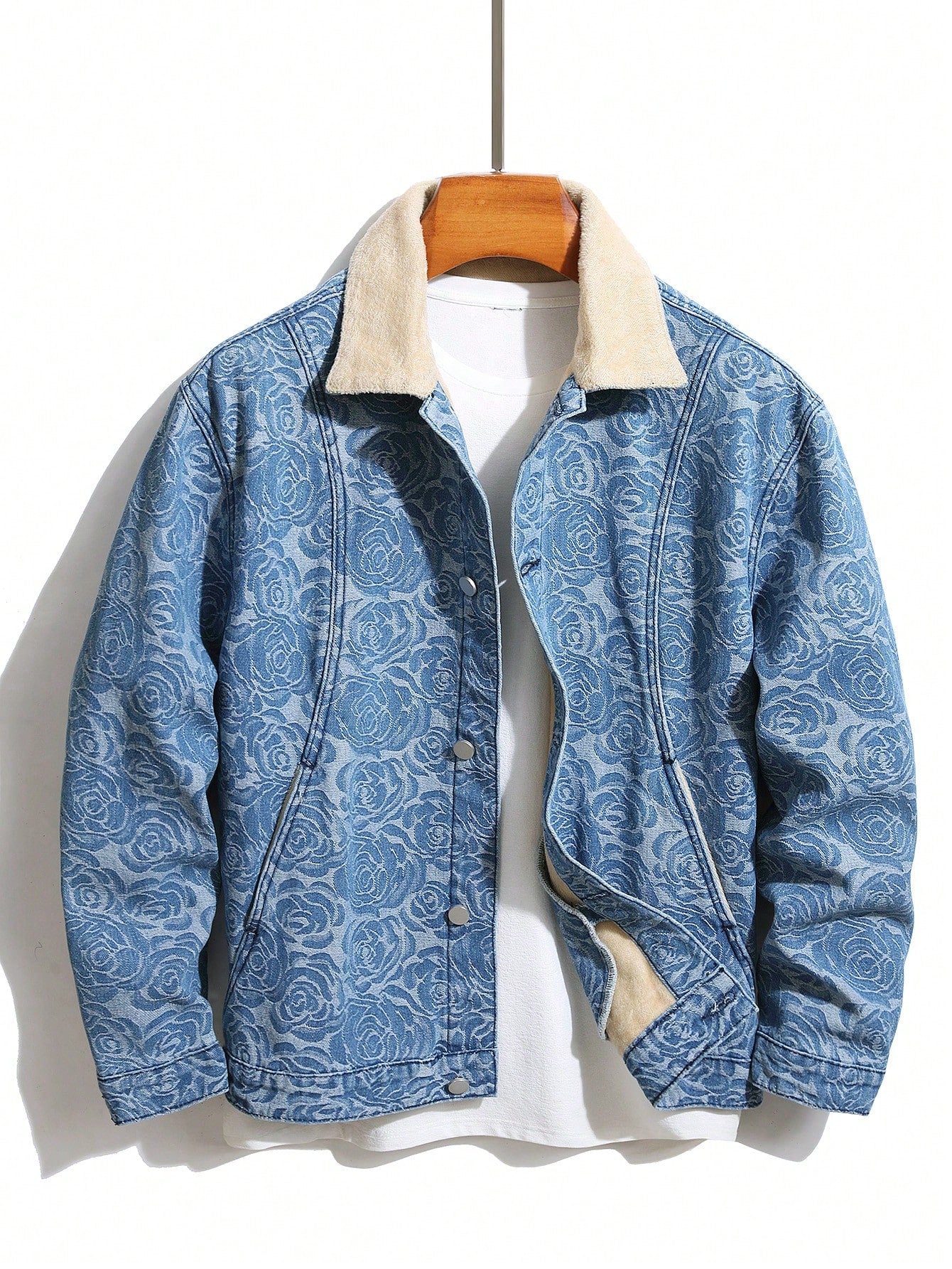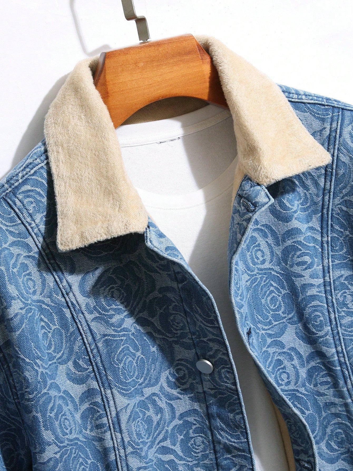 Manfinity Hypemode Plus Size Men's Casual Denim Jacket With Allover Floral Print And Front Button, Long