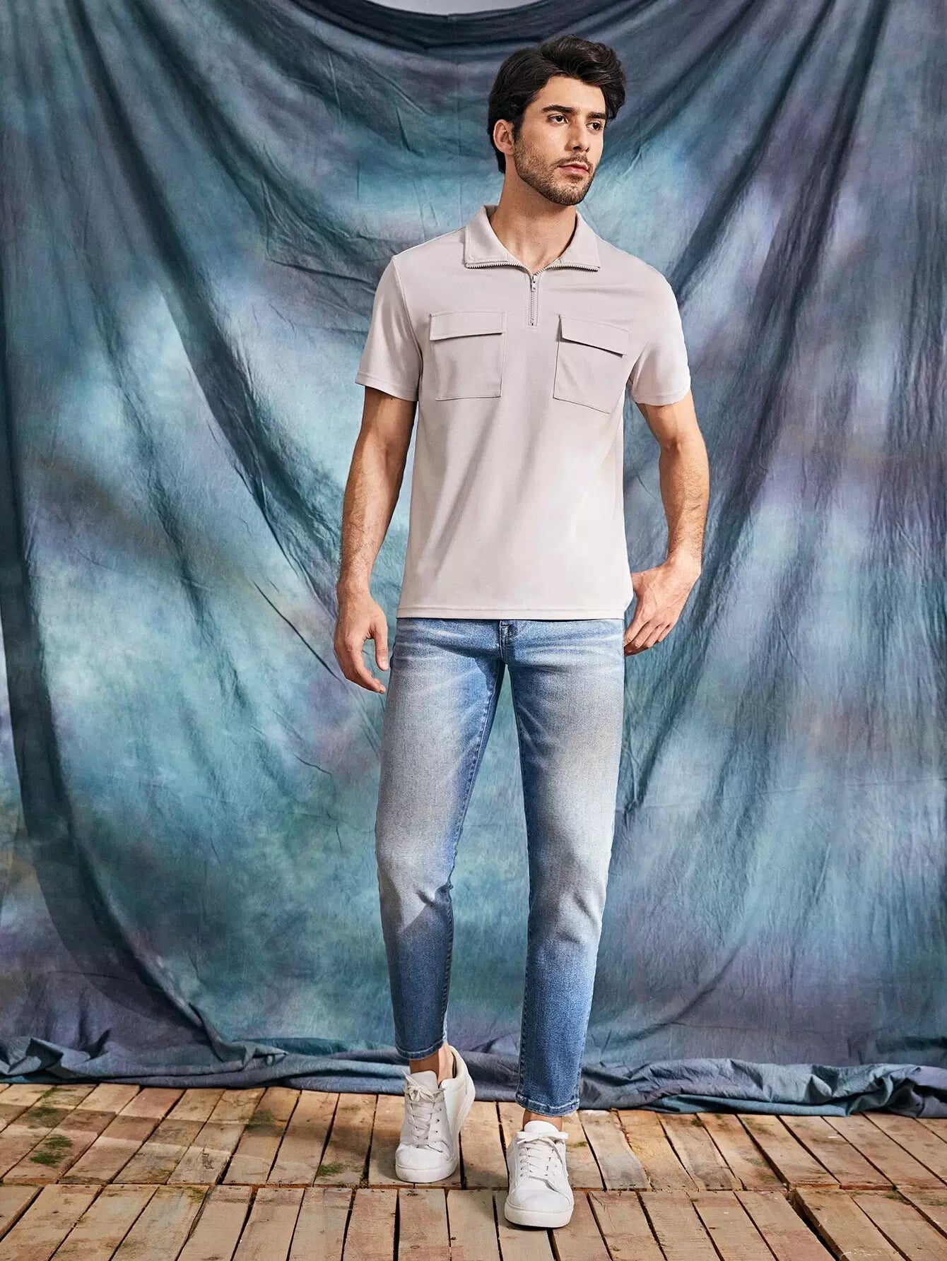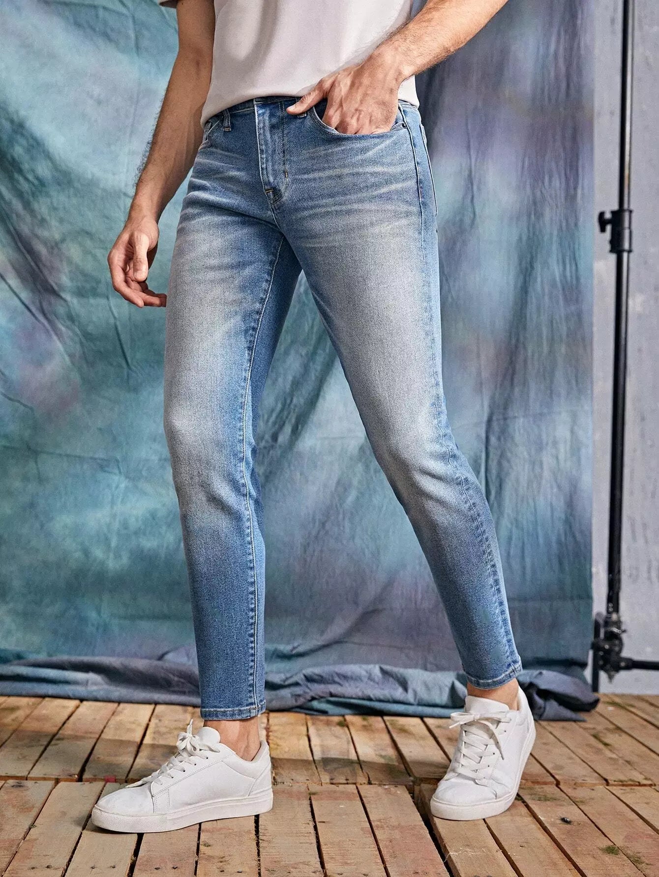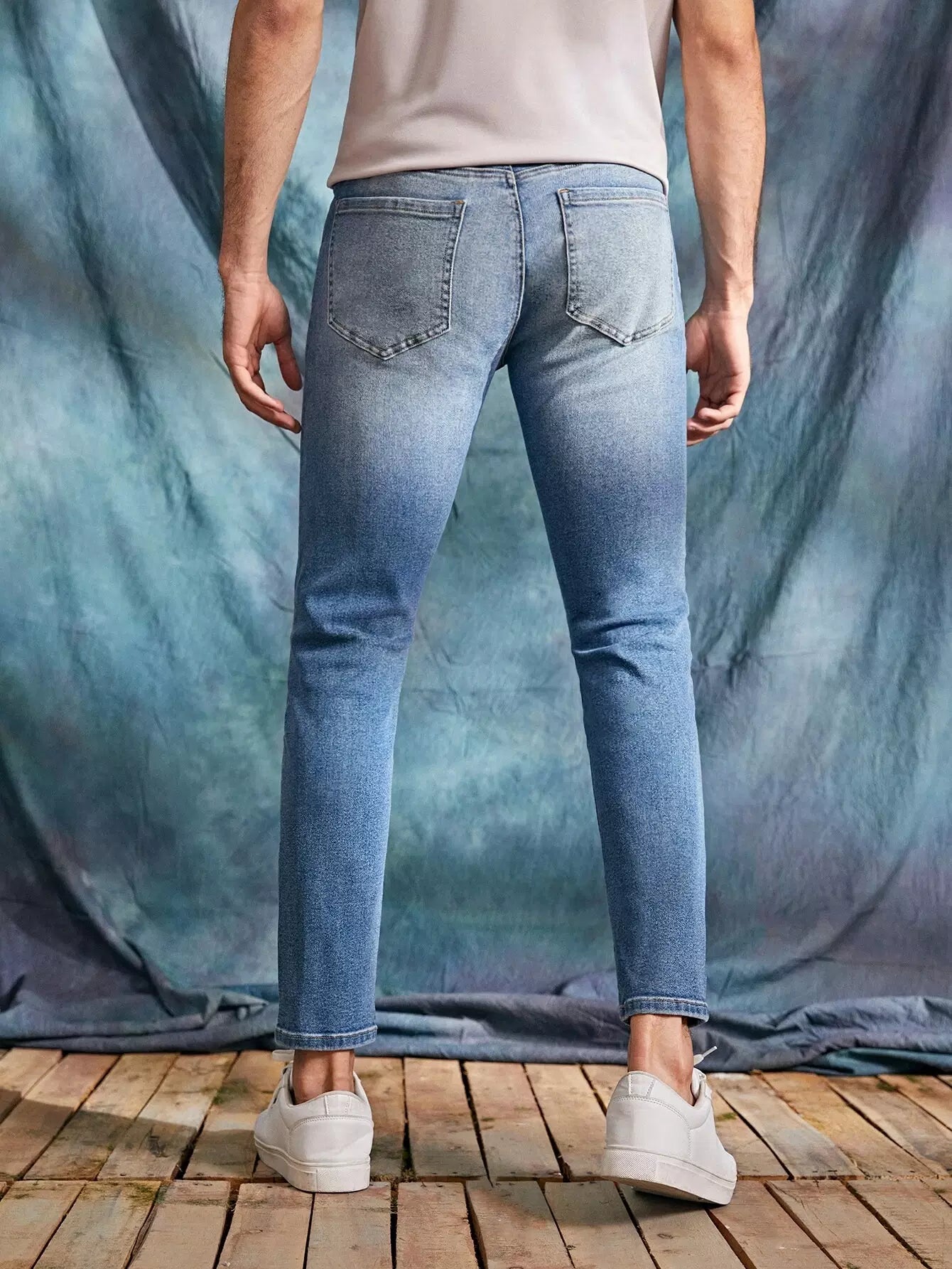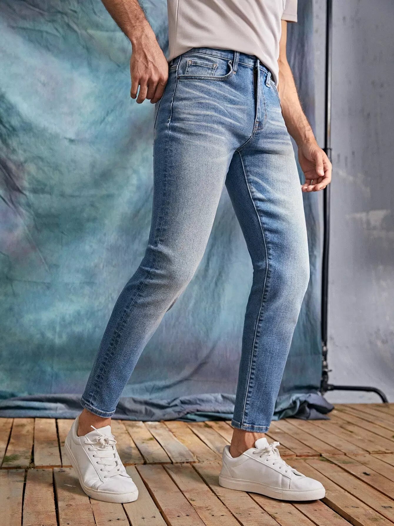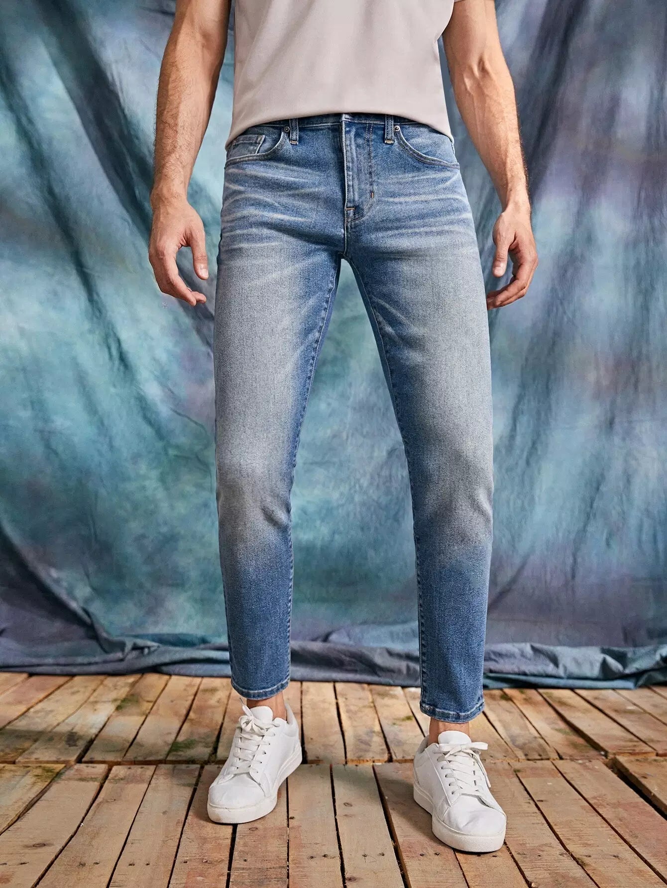 Men Cat Whisker Cropped Tapered Jeans