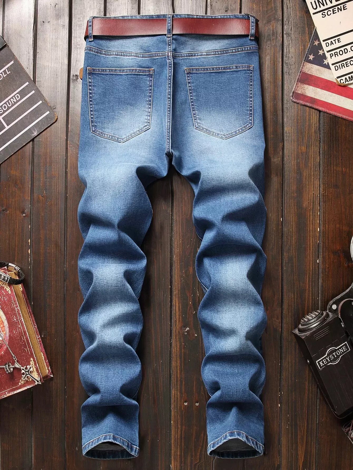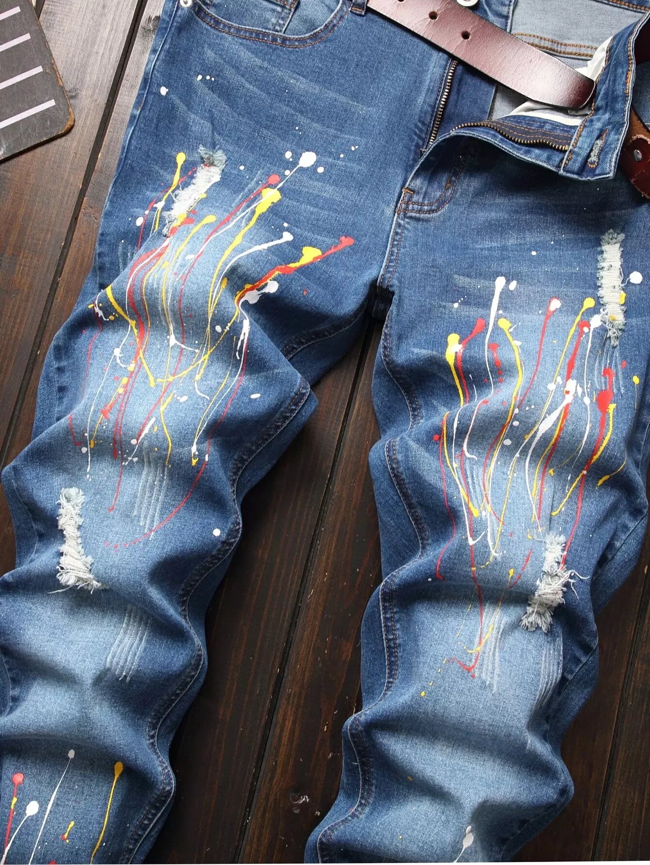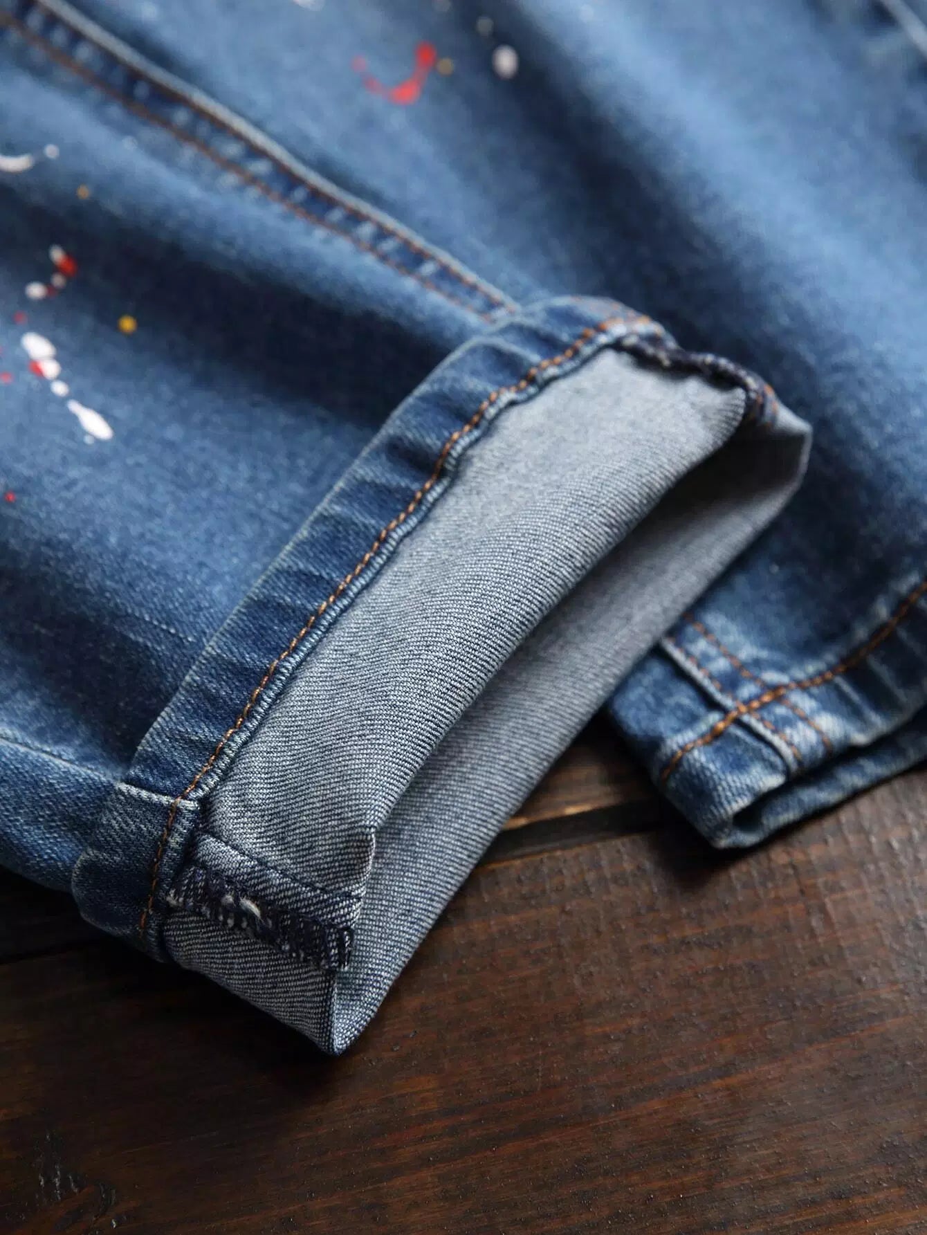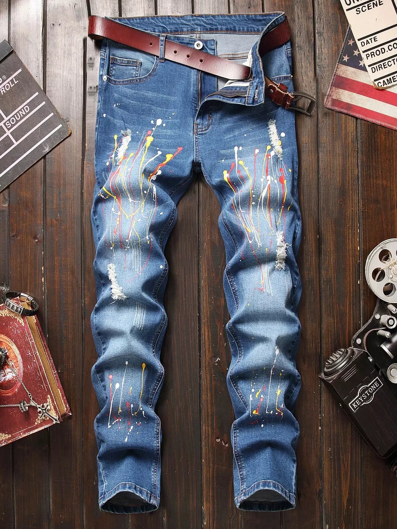 Men Paint Splatter Pattern Ripped Jeans Without Belted
