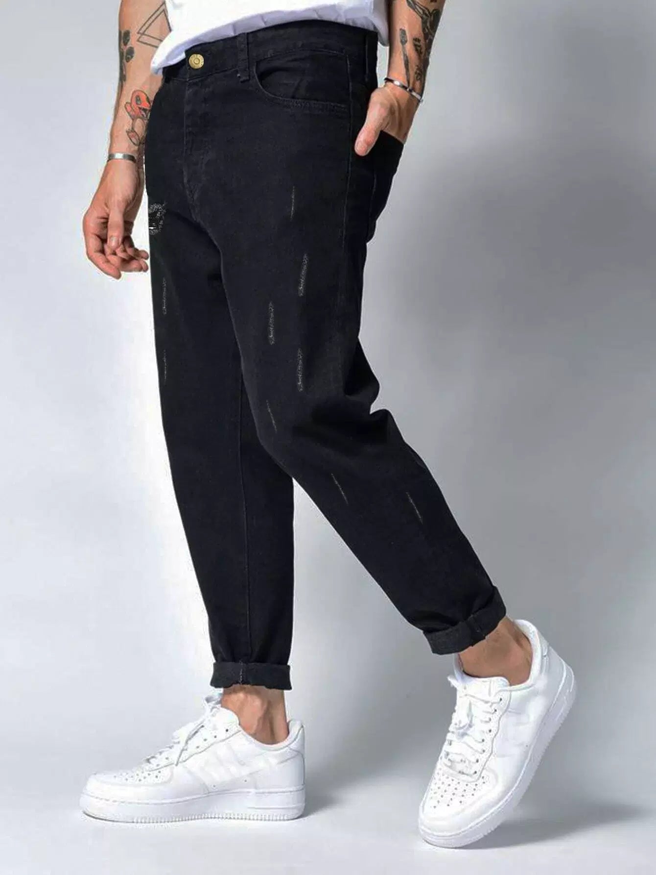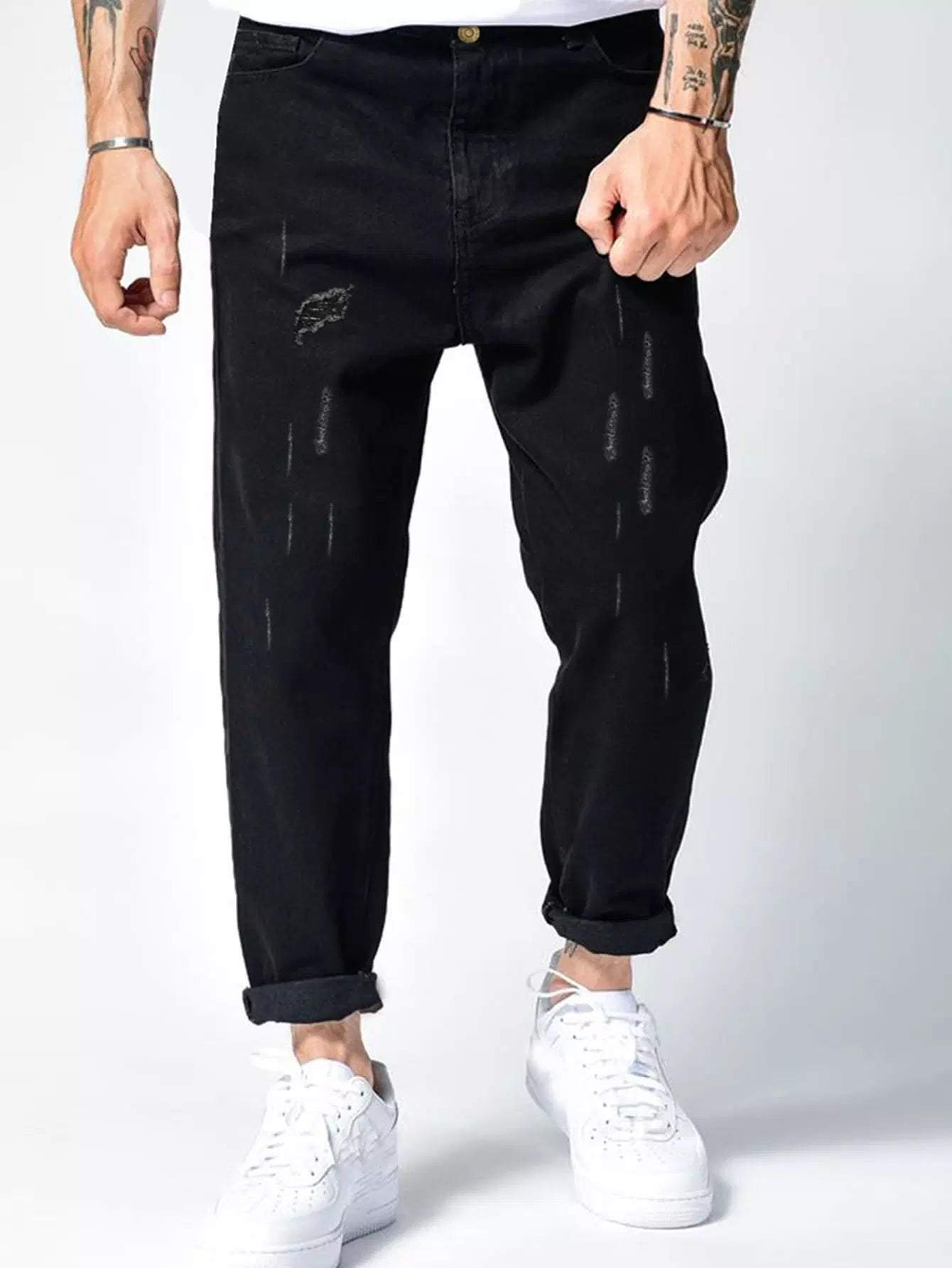 Men Ripped Cat Scratch Tapered Jeans