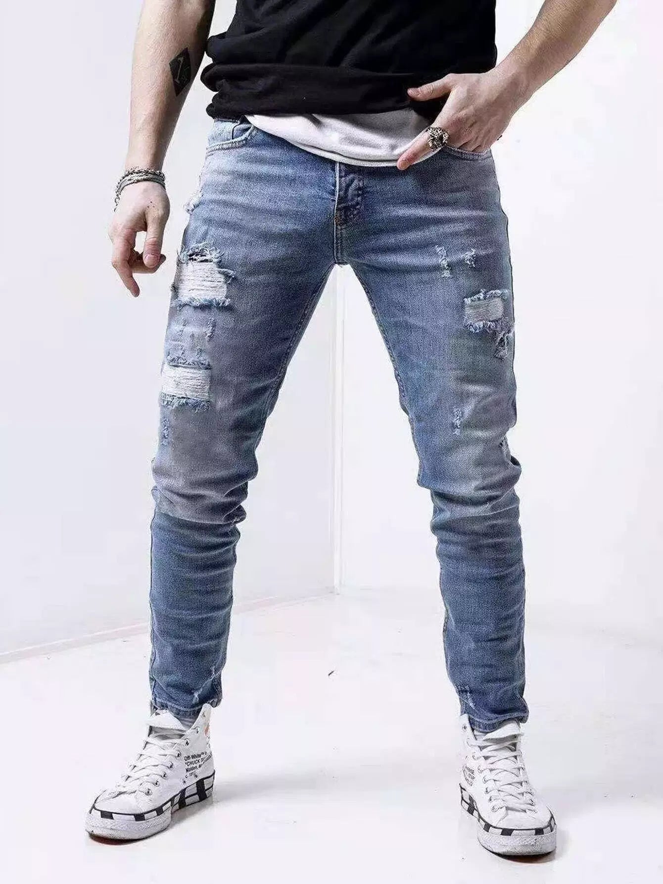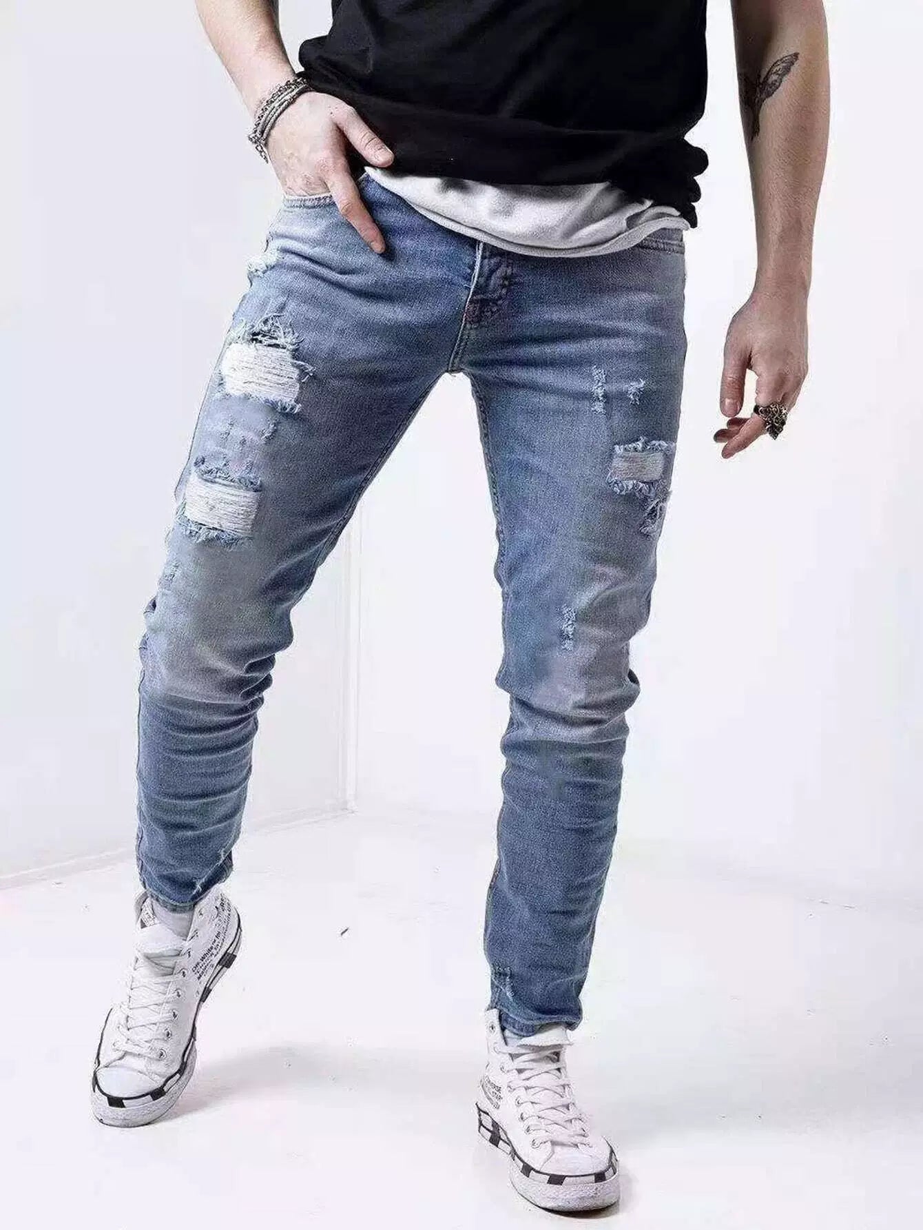 Men Ripped Washed Jeans