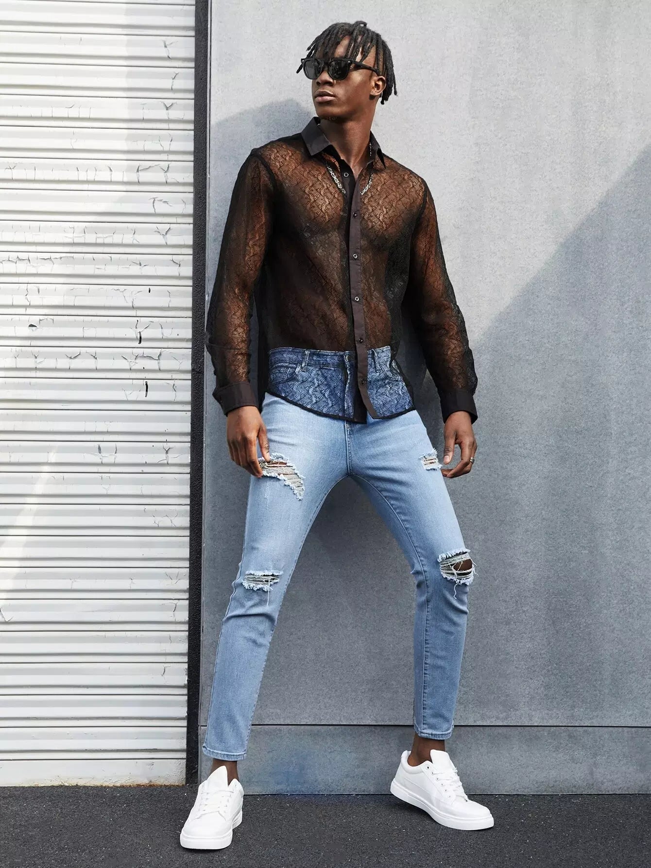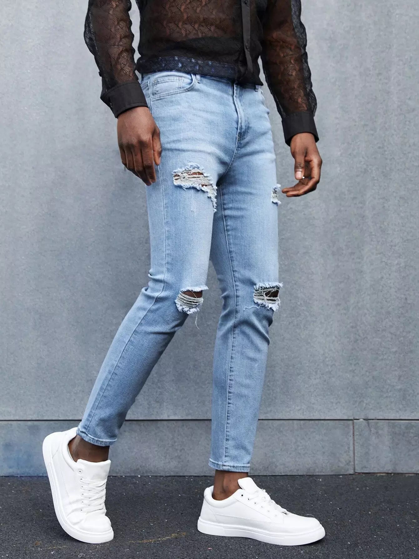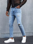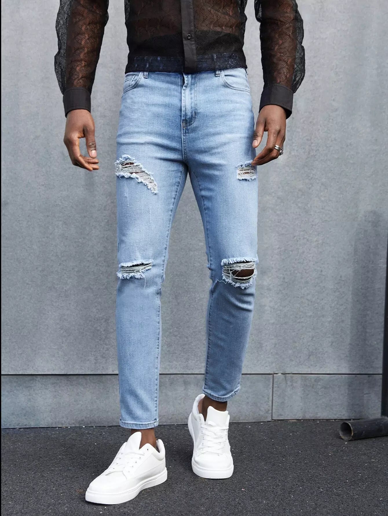 Men Zipper Fly Ripped Jeans