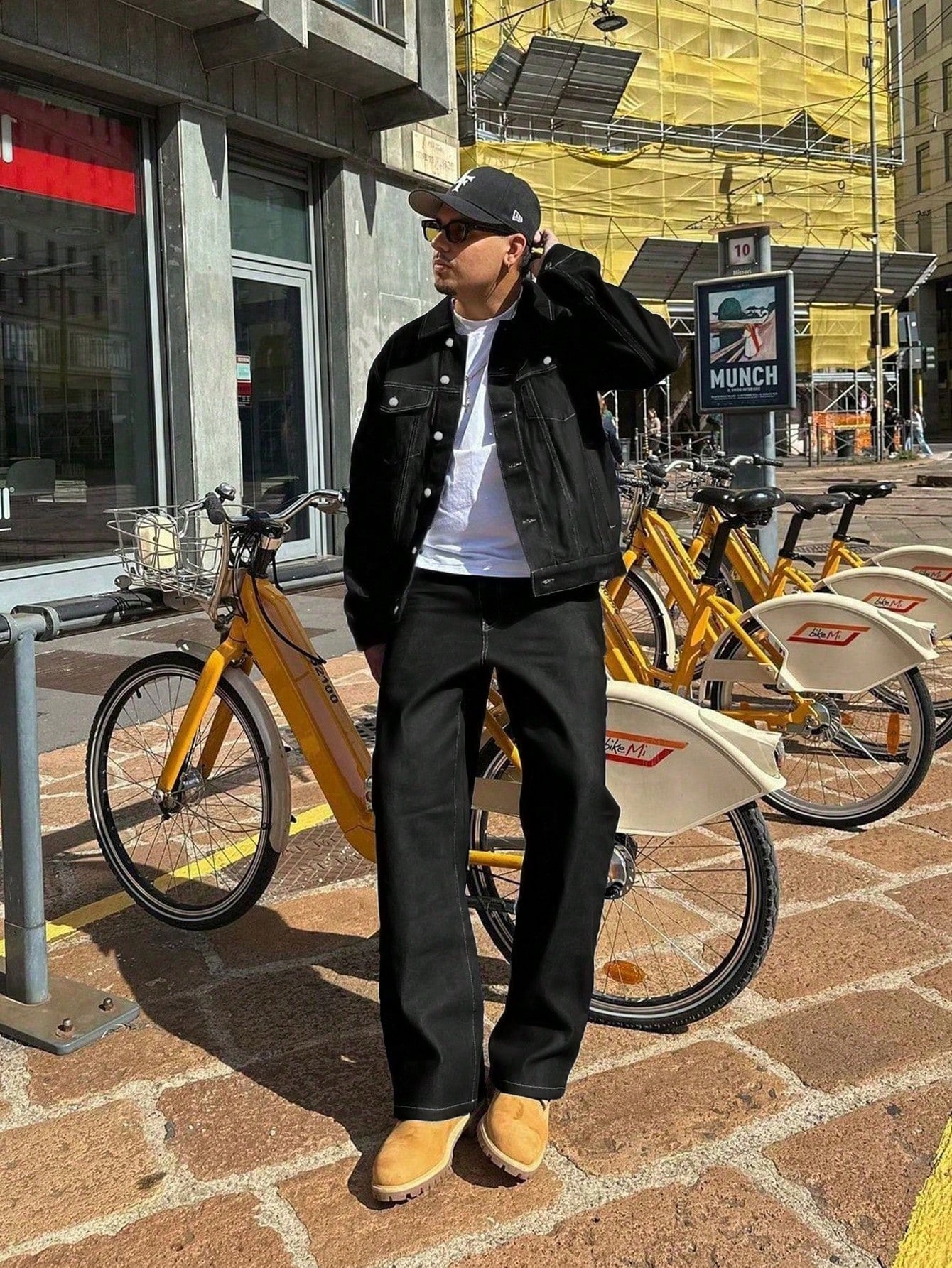 Men's Fashionable Casual Grunge Goth Y2K Style Slim Fit Straight Leg Jeans