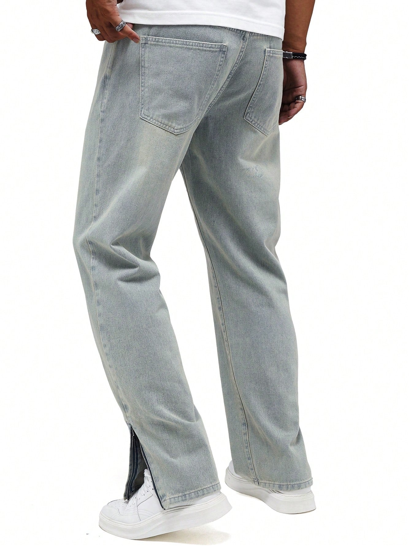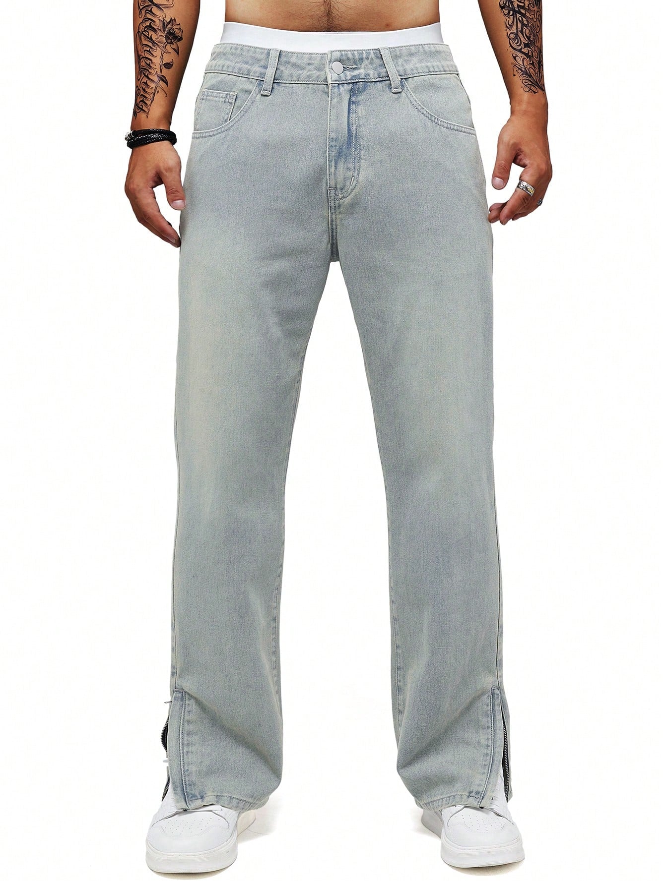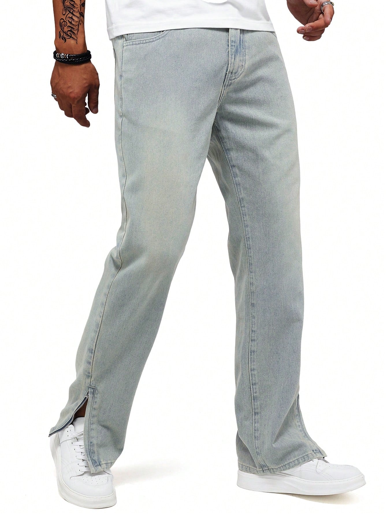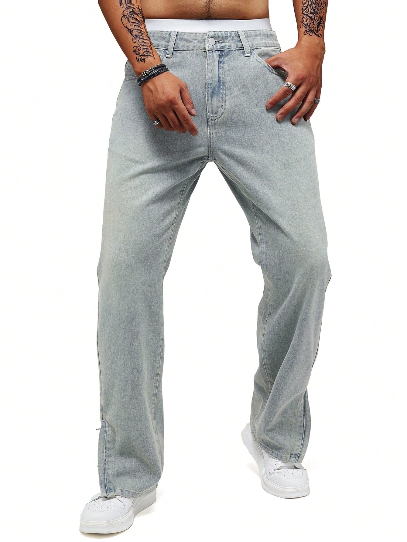 Men's Y2K Retro Casual Slit Light Blue Loose Straight Leg Jeans