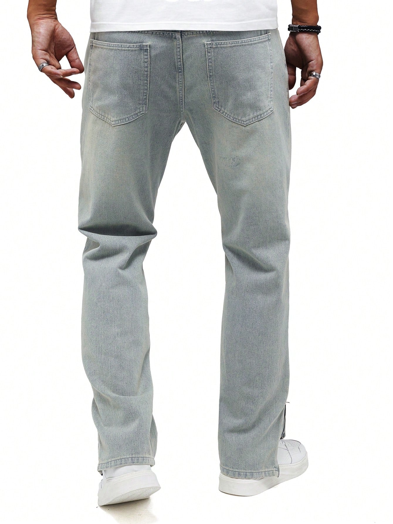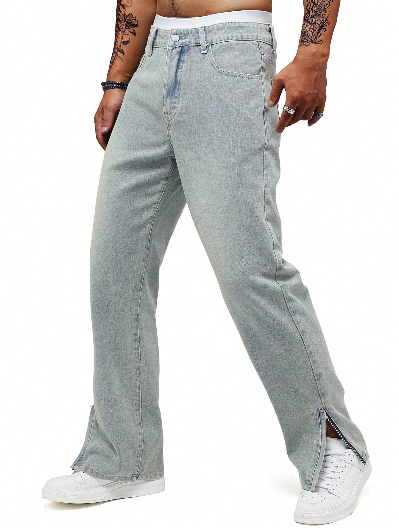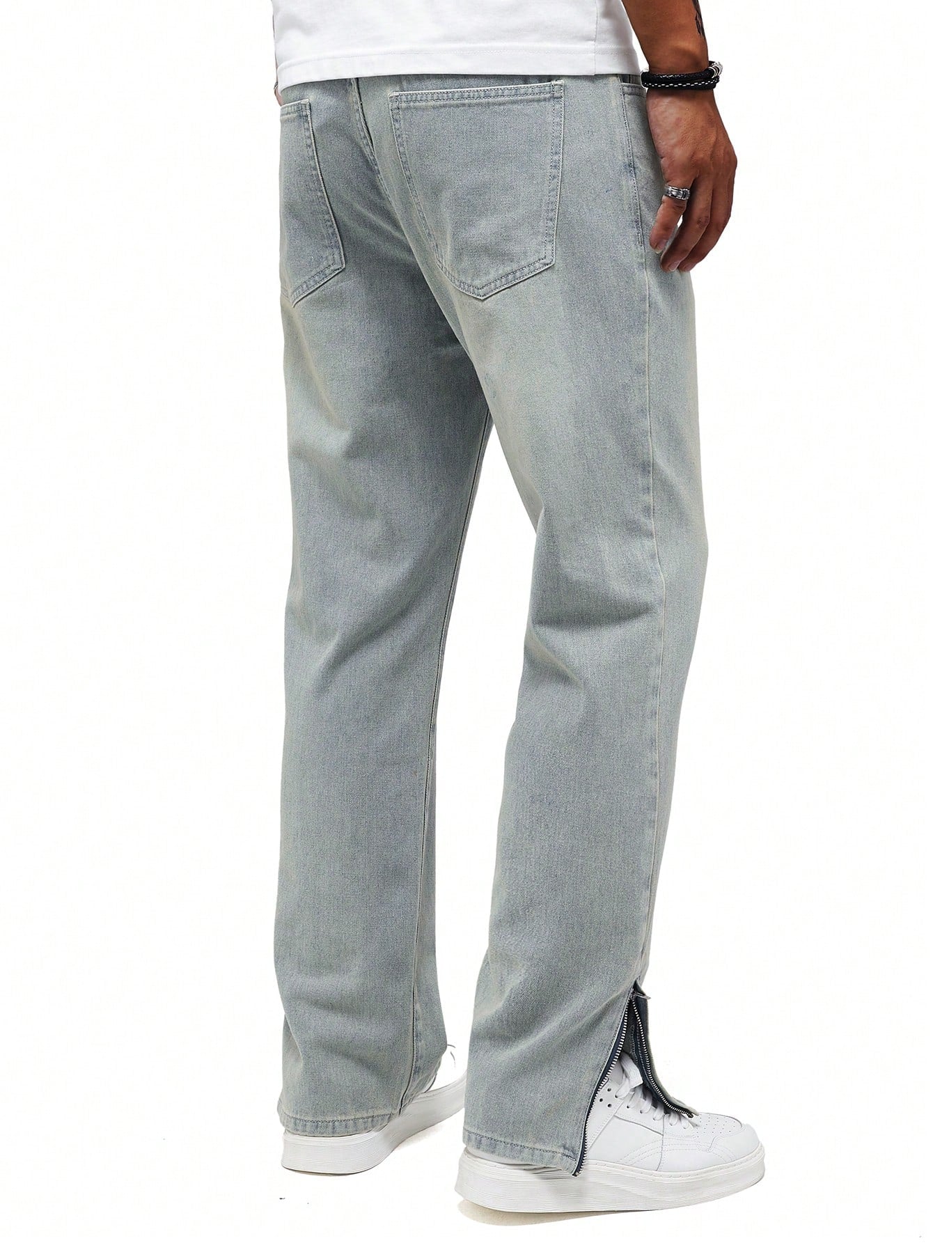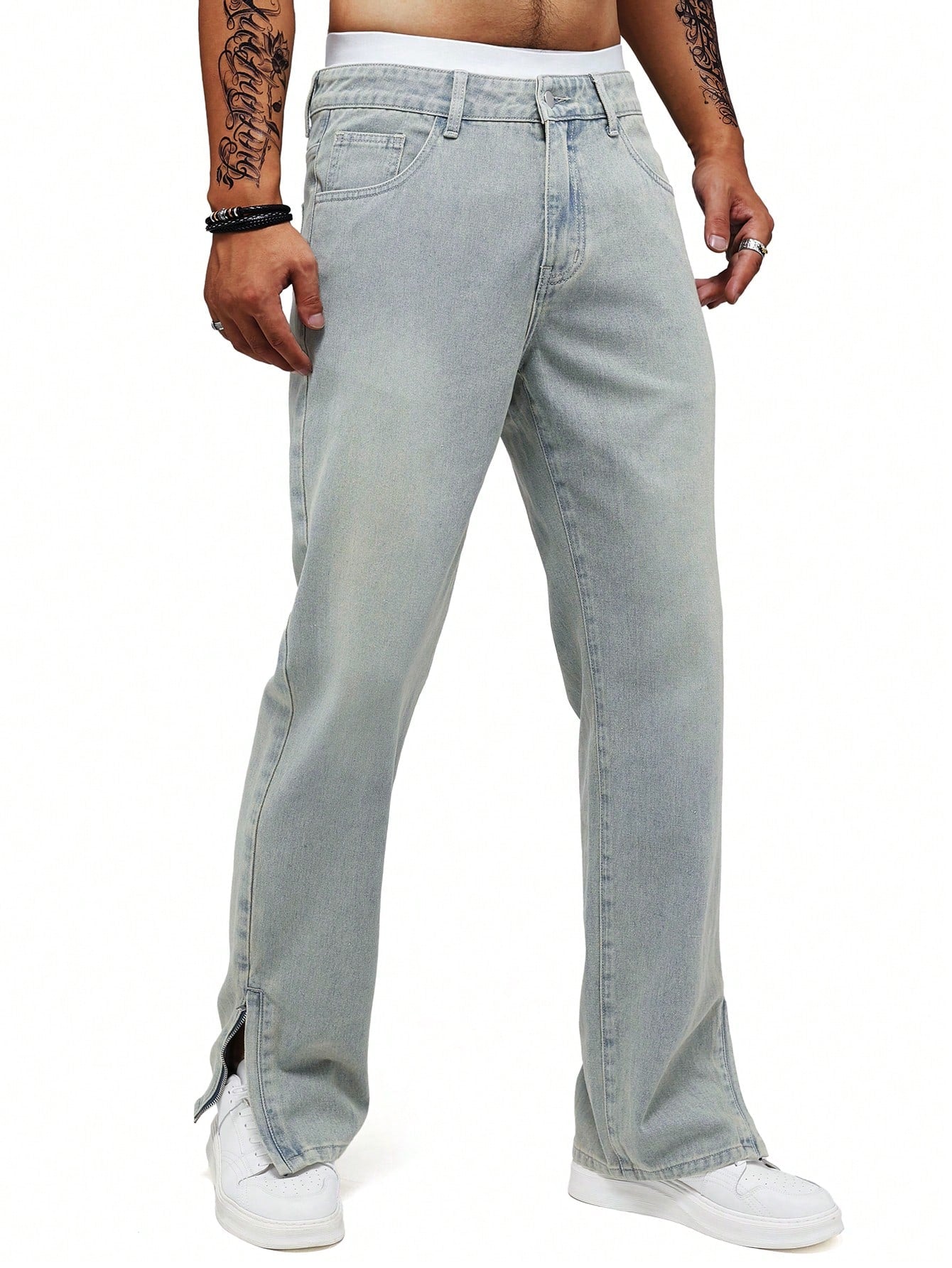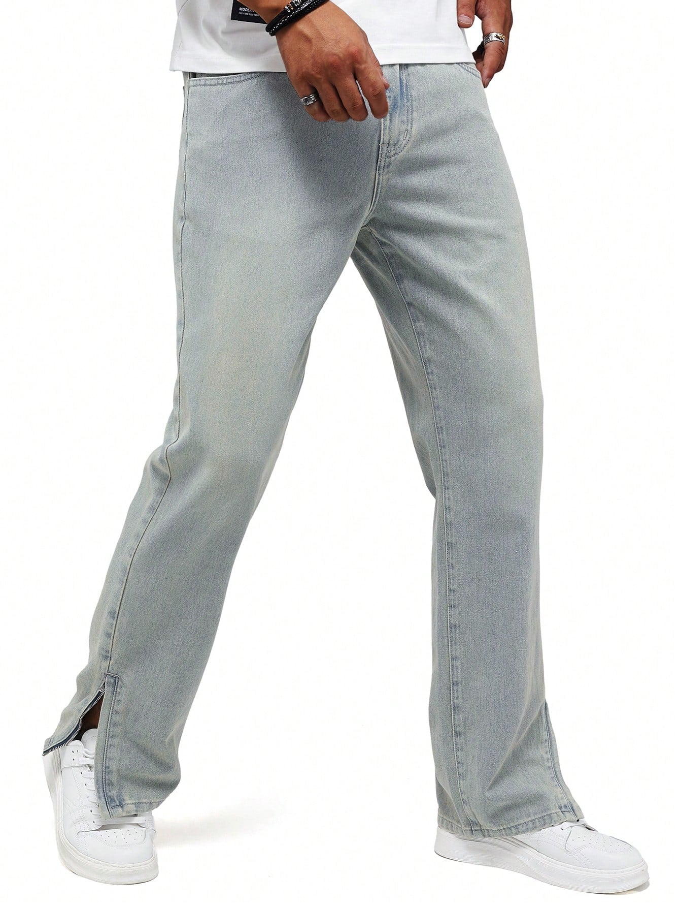 Men's Y2K Retro Casual Slit Light Blue Loose Straight Leg Jeans