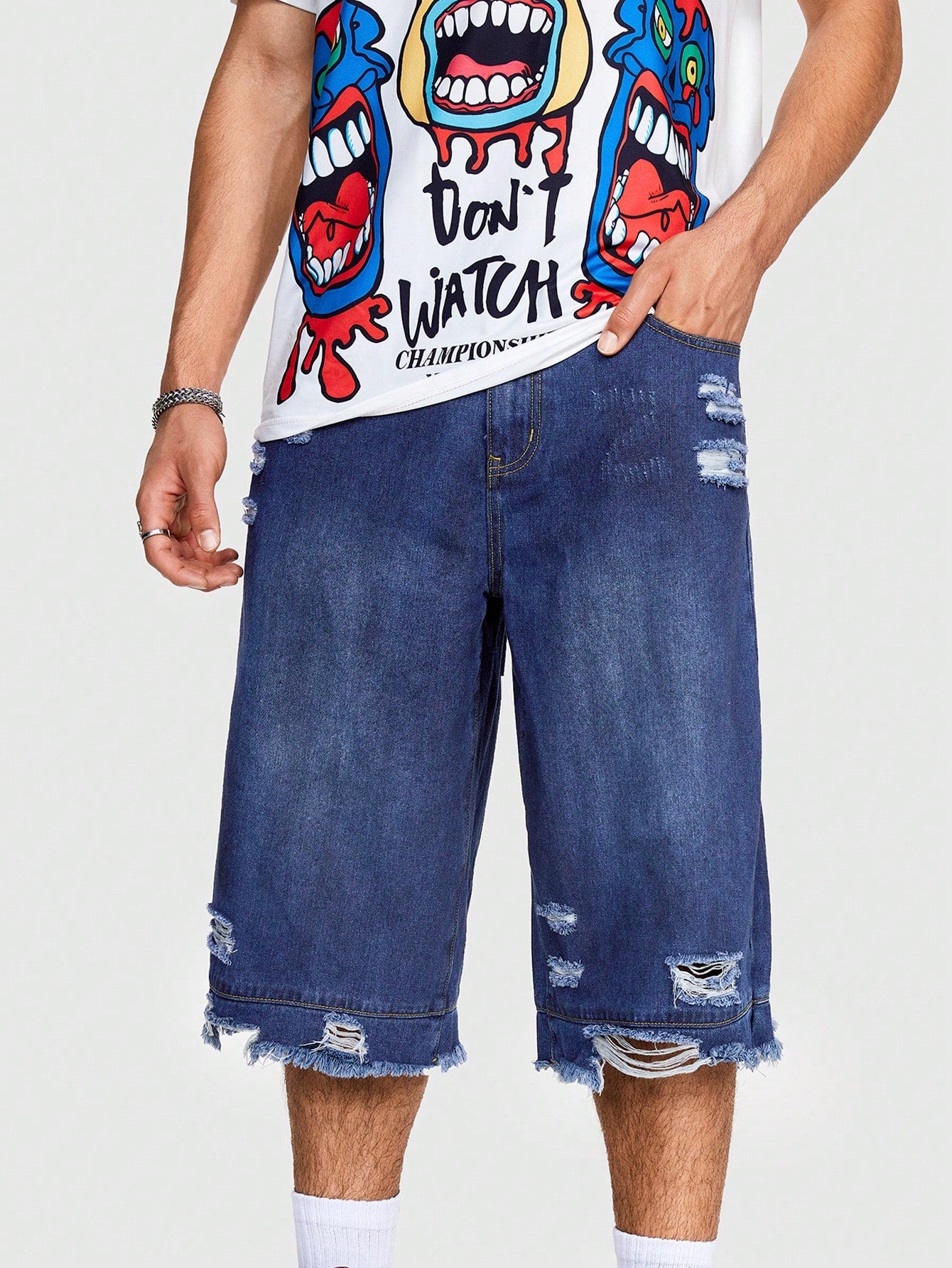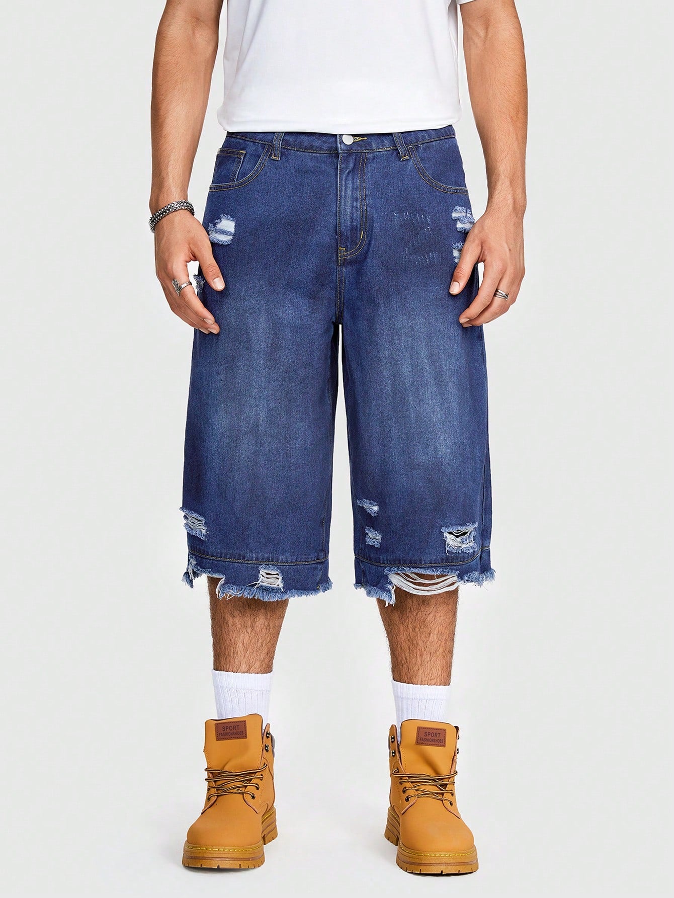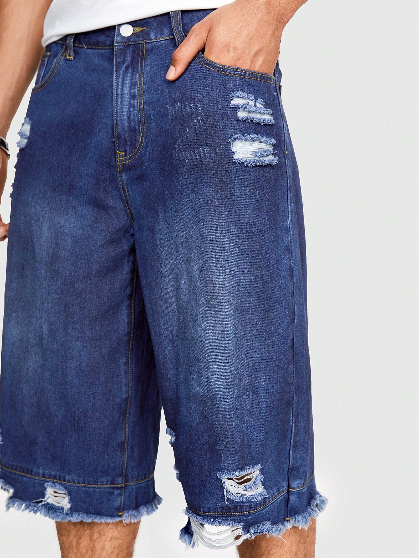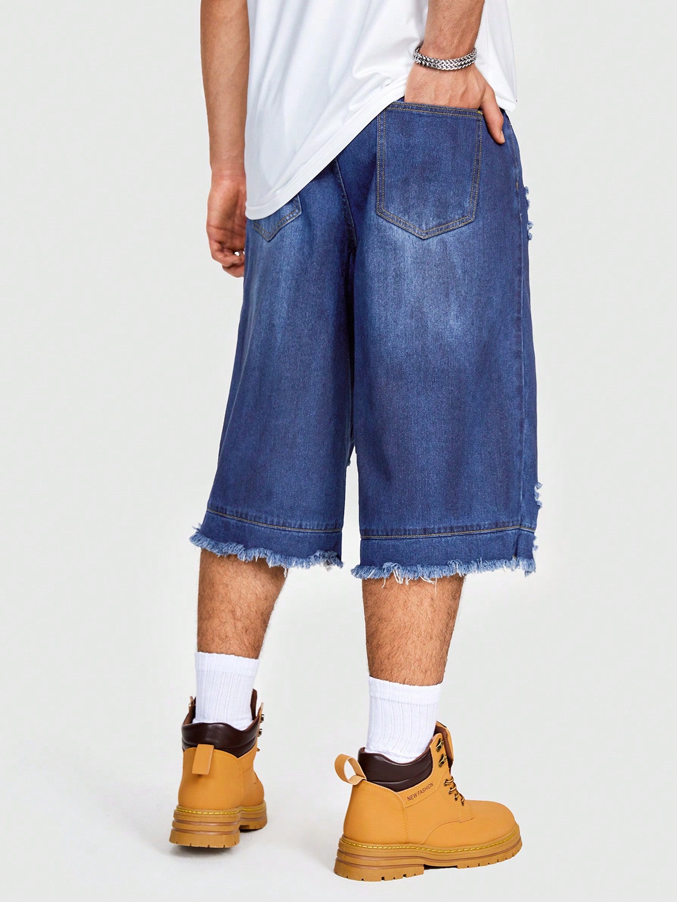 men ROMWE MEN Street Life Men's Zipper Fly Distressed Frayed Edge Jeans