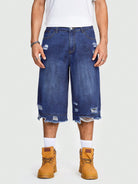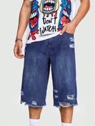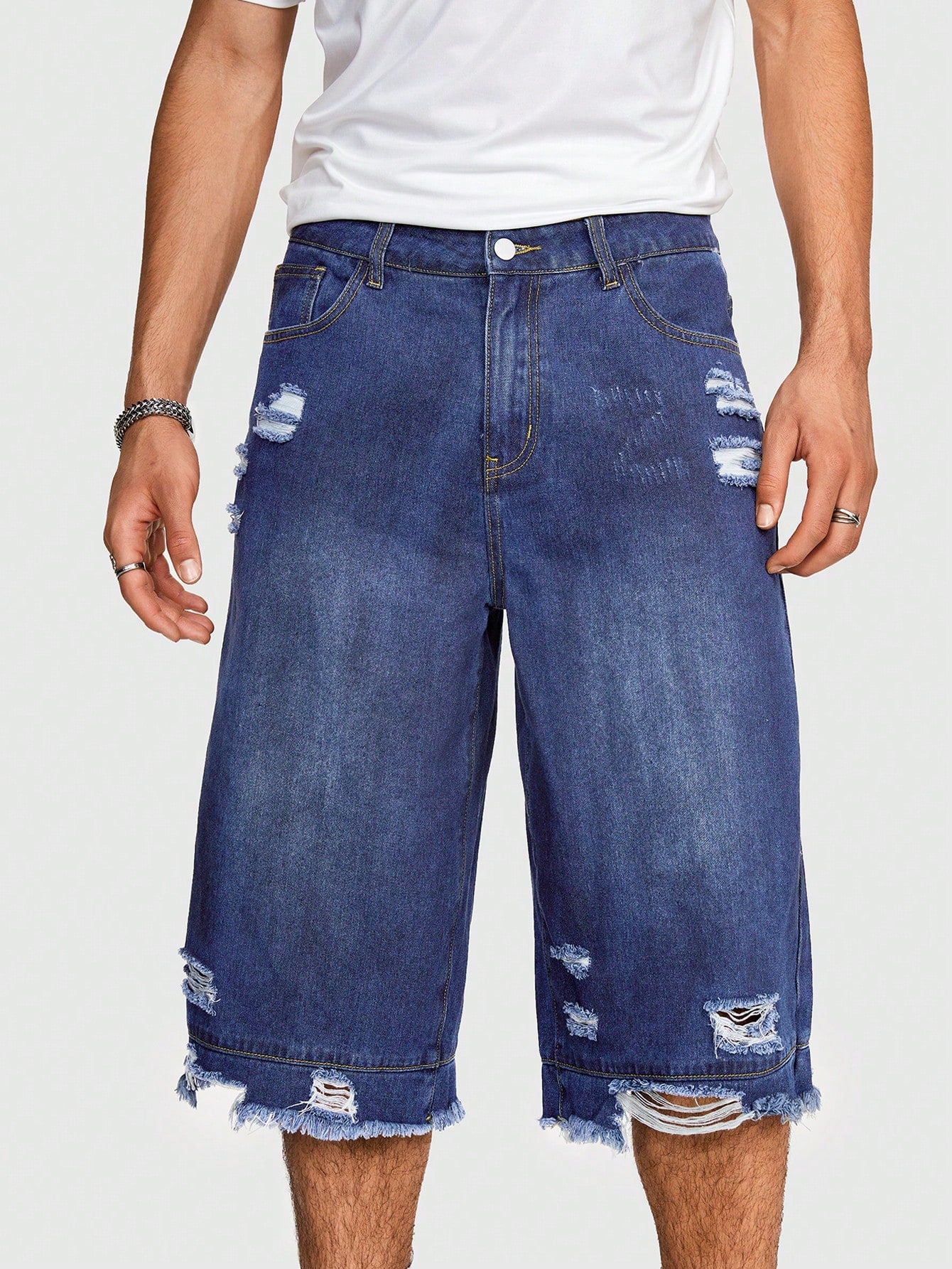 ROMWE MEN Street Life Men's Zipper Fly Distressed Frayed Edge Jeans