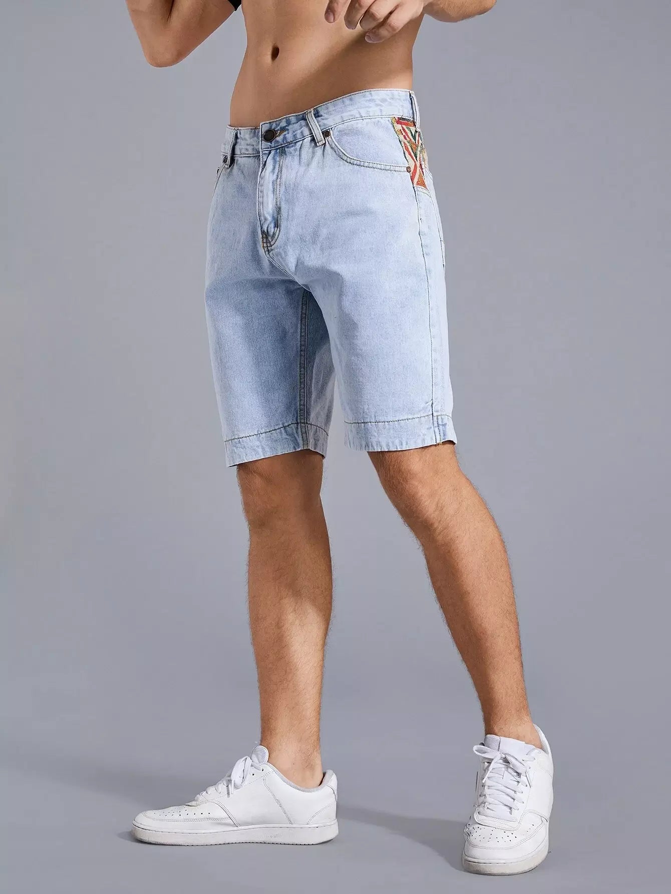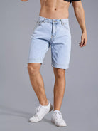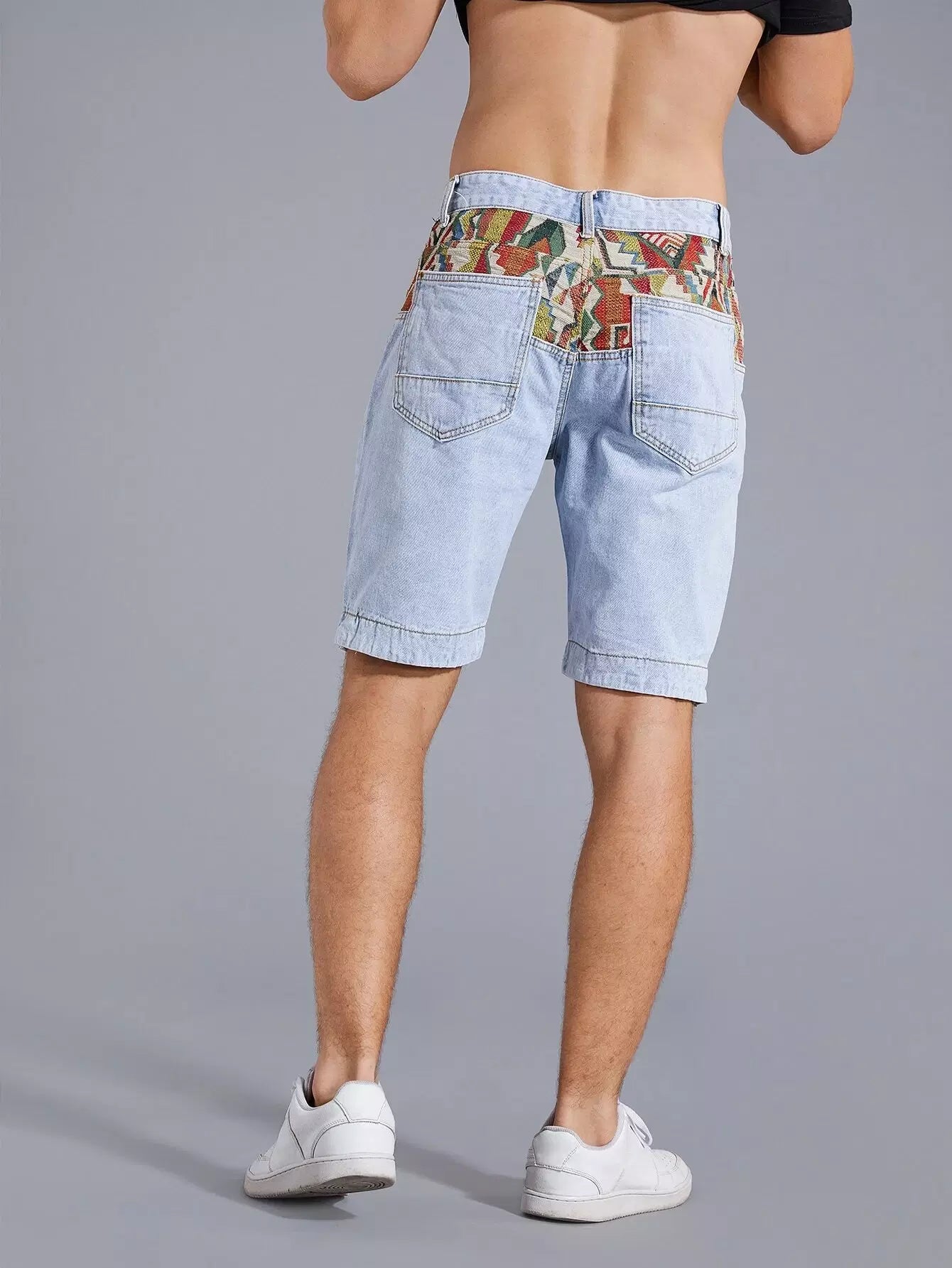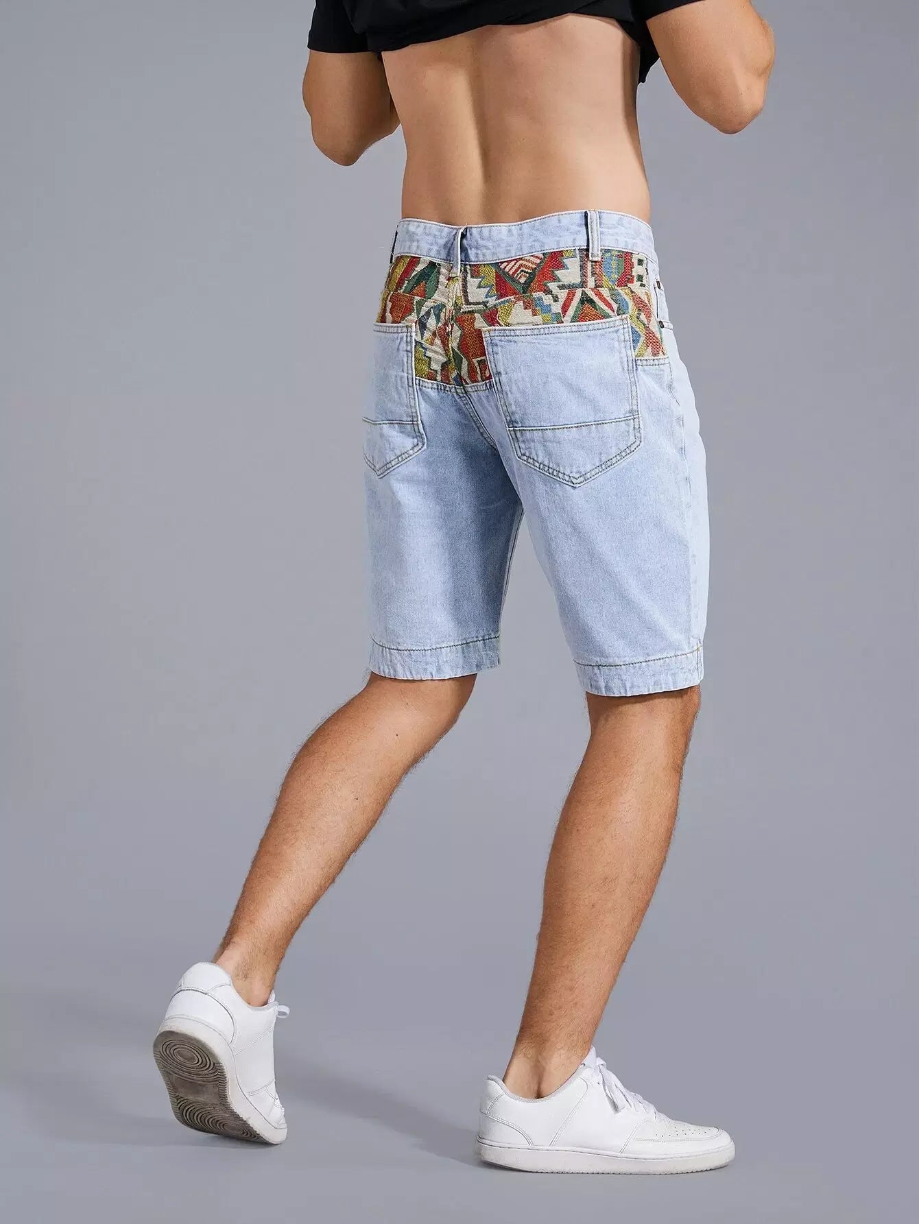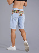 Men Geo Panel Washed Denim Shorts