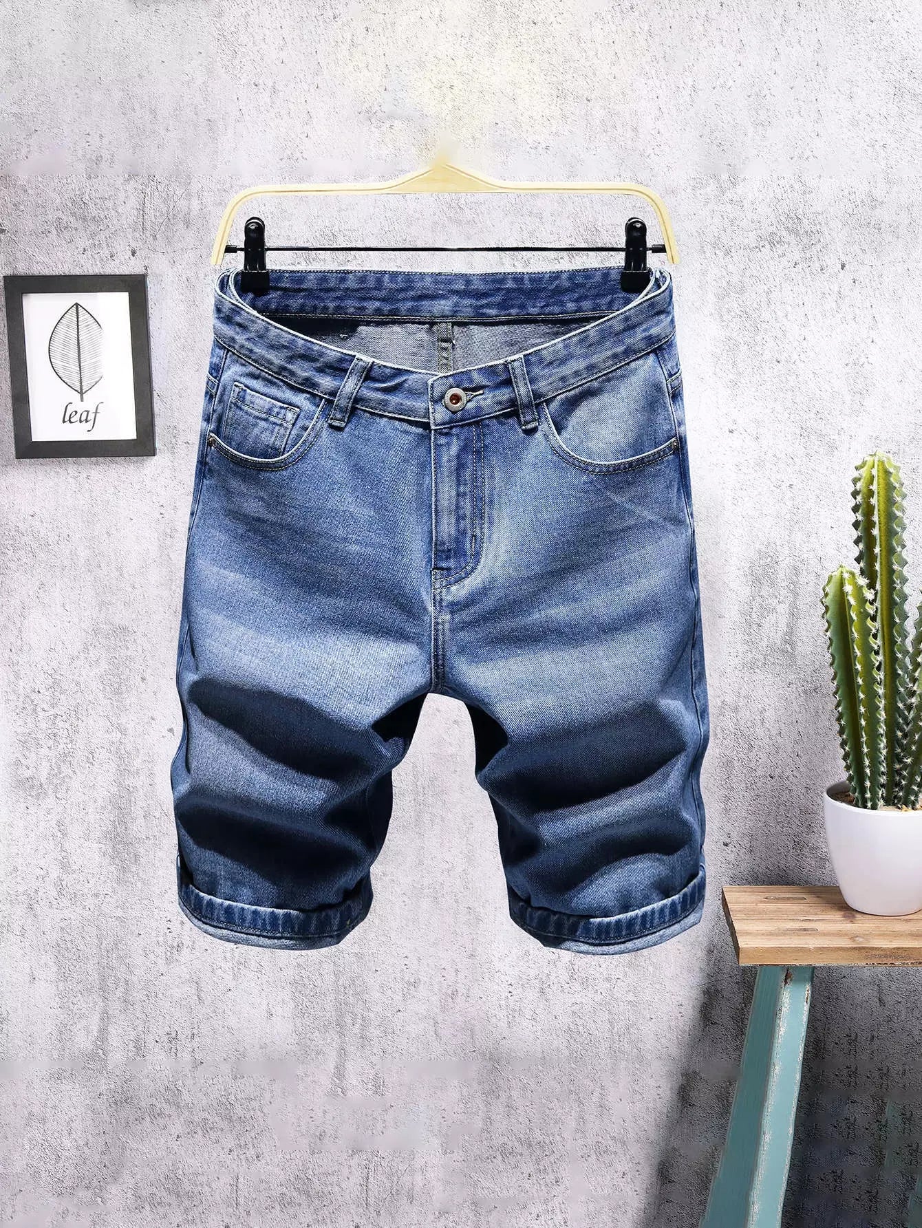 Men Pocket Button Fly Denim Shorts