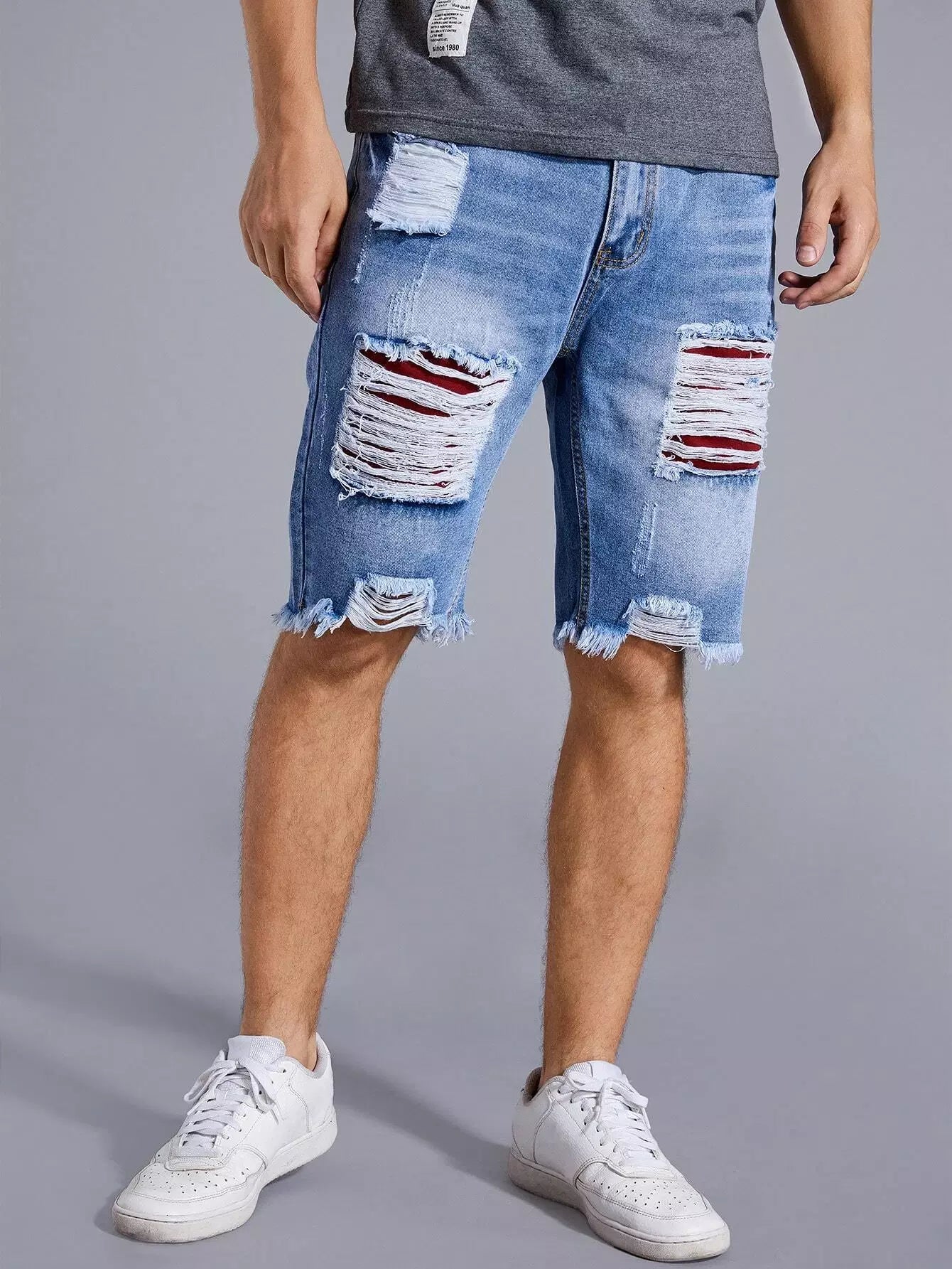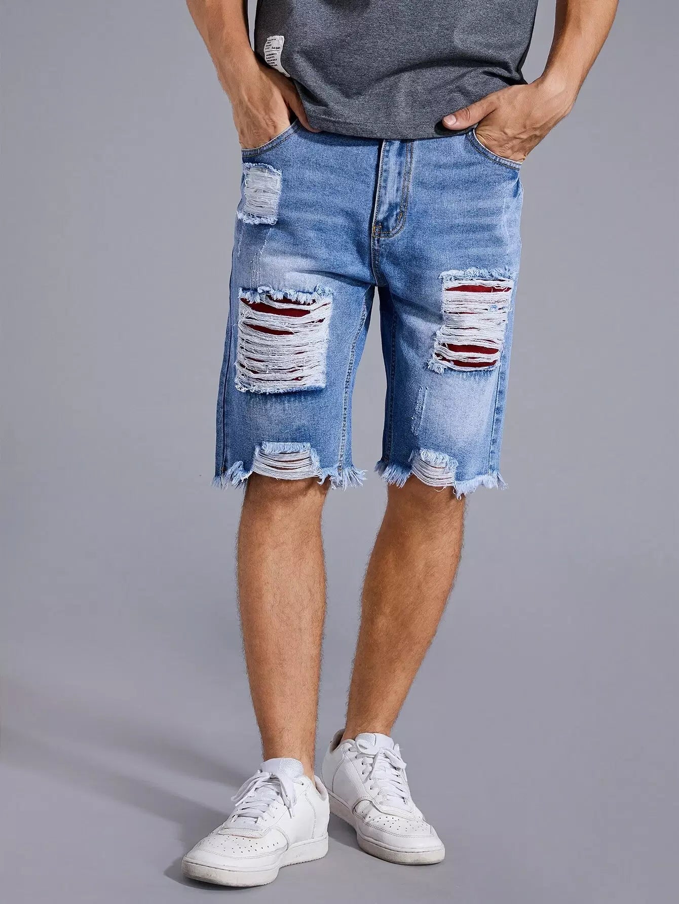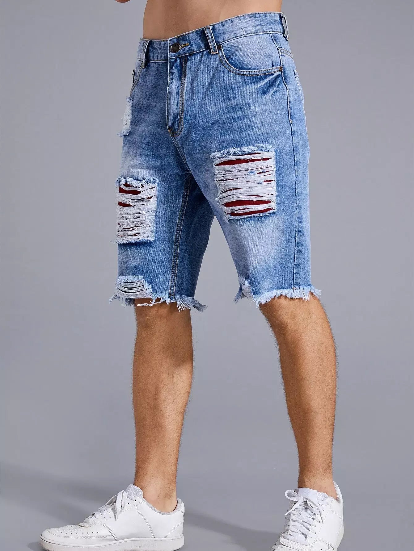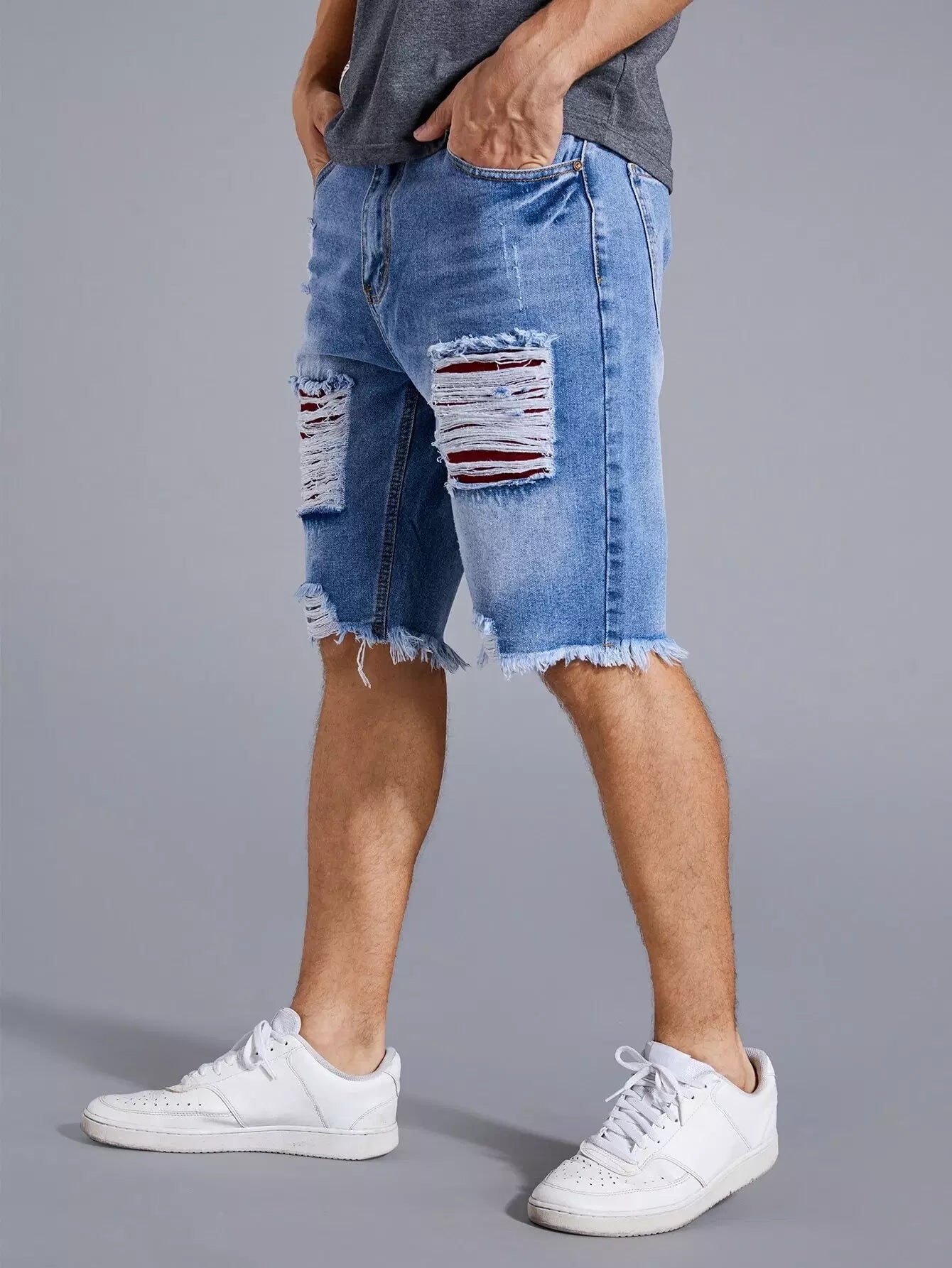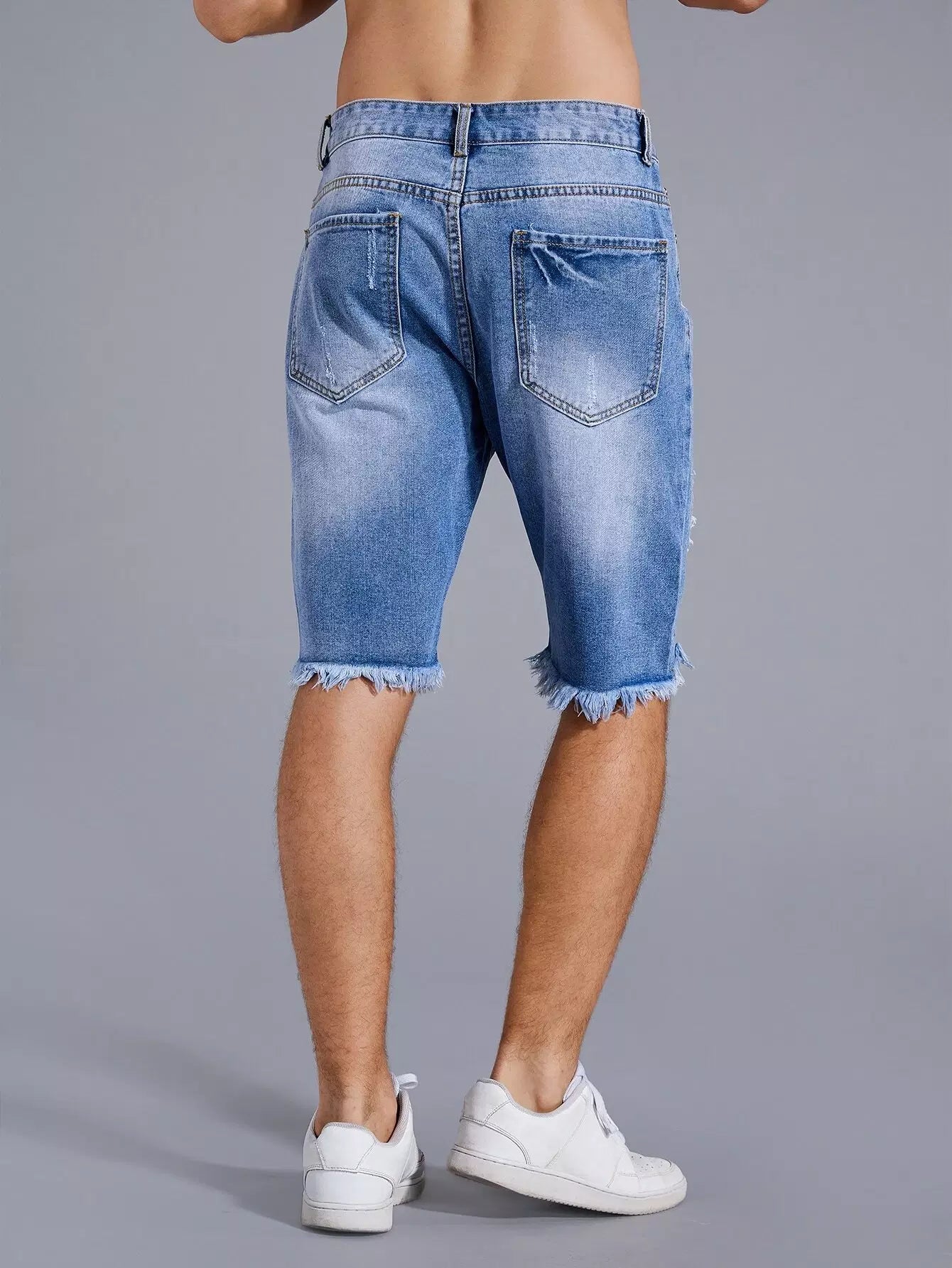 Men Ripped Raw Hem Denim Shorts