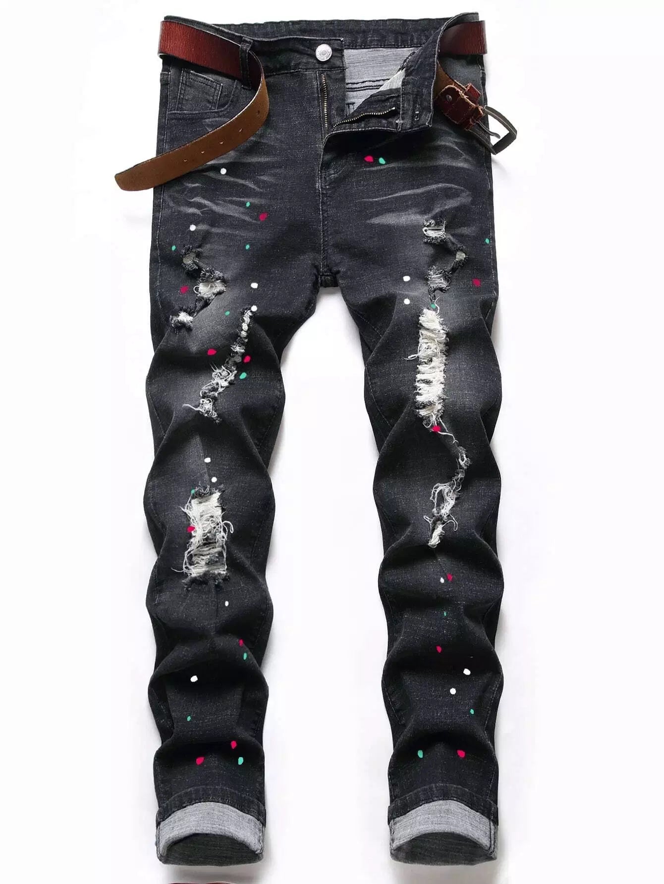 Guys Washed Ripped Jeans