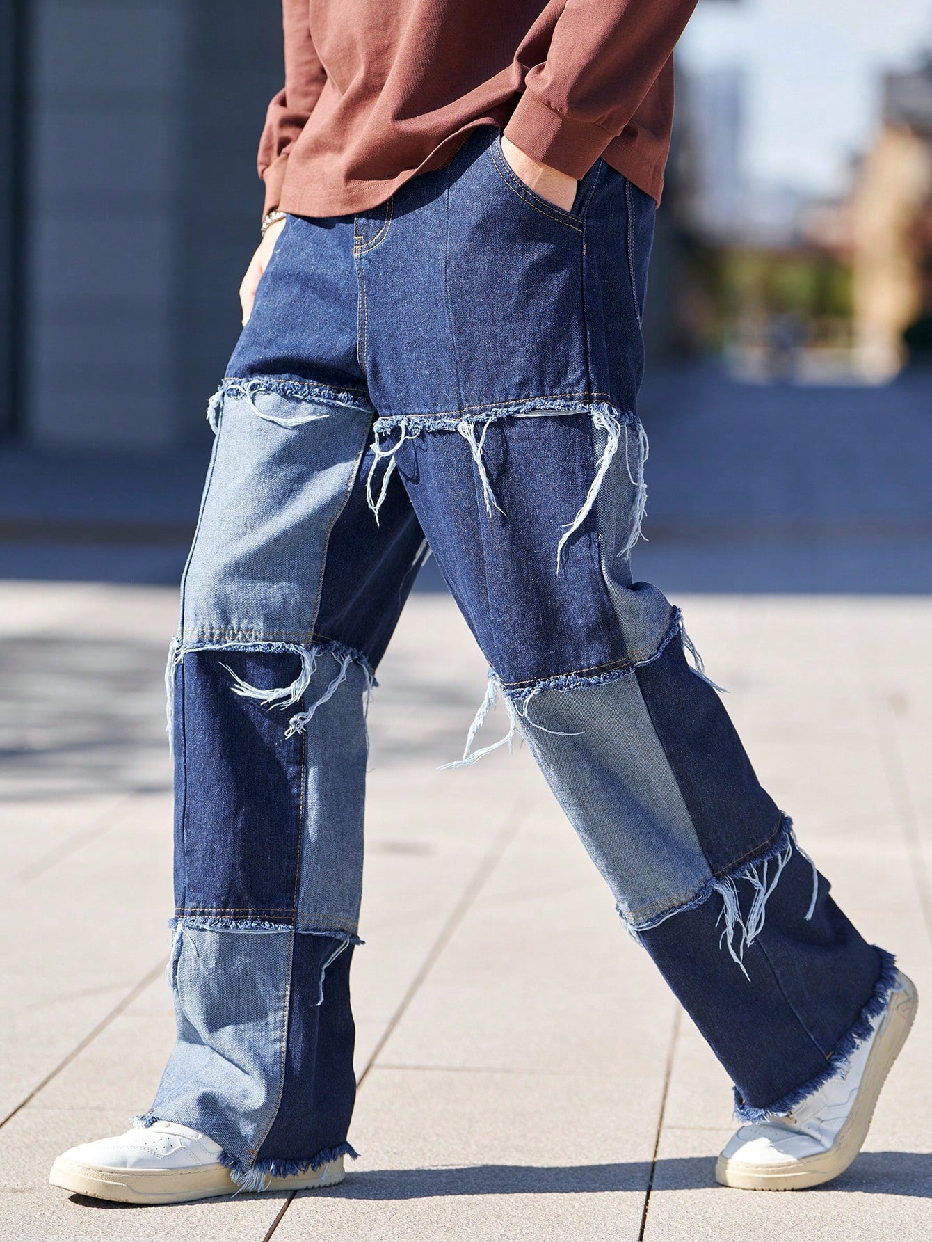 Manfinity EMRG Men's Casual Straight-Leg Jeans With Pockets And Frayed Hem