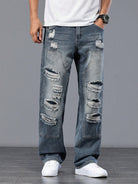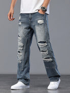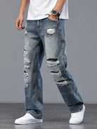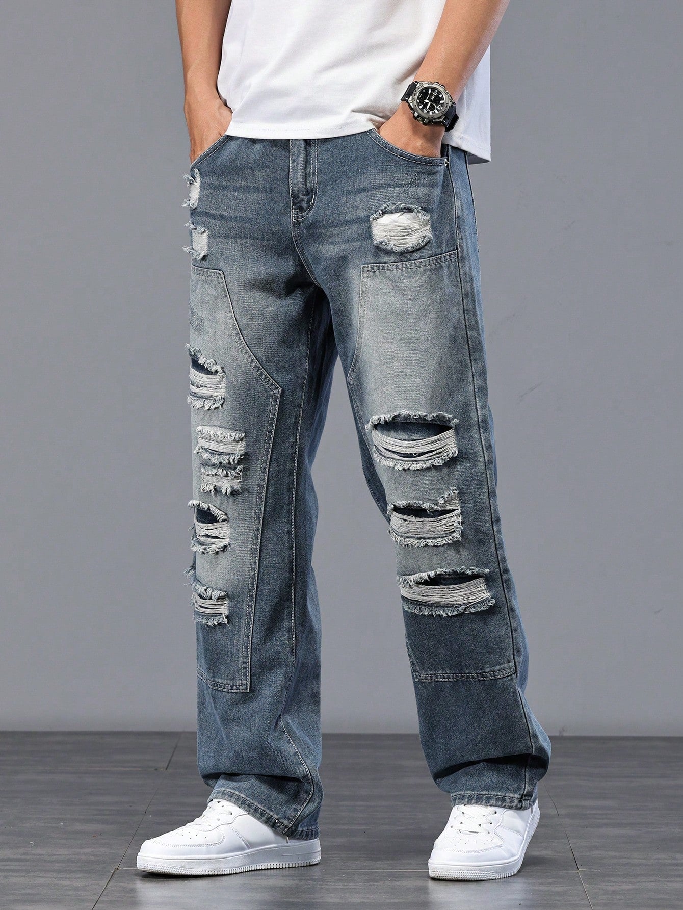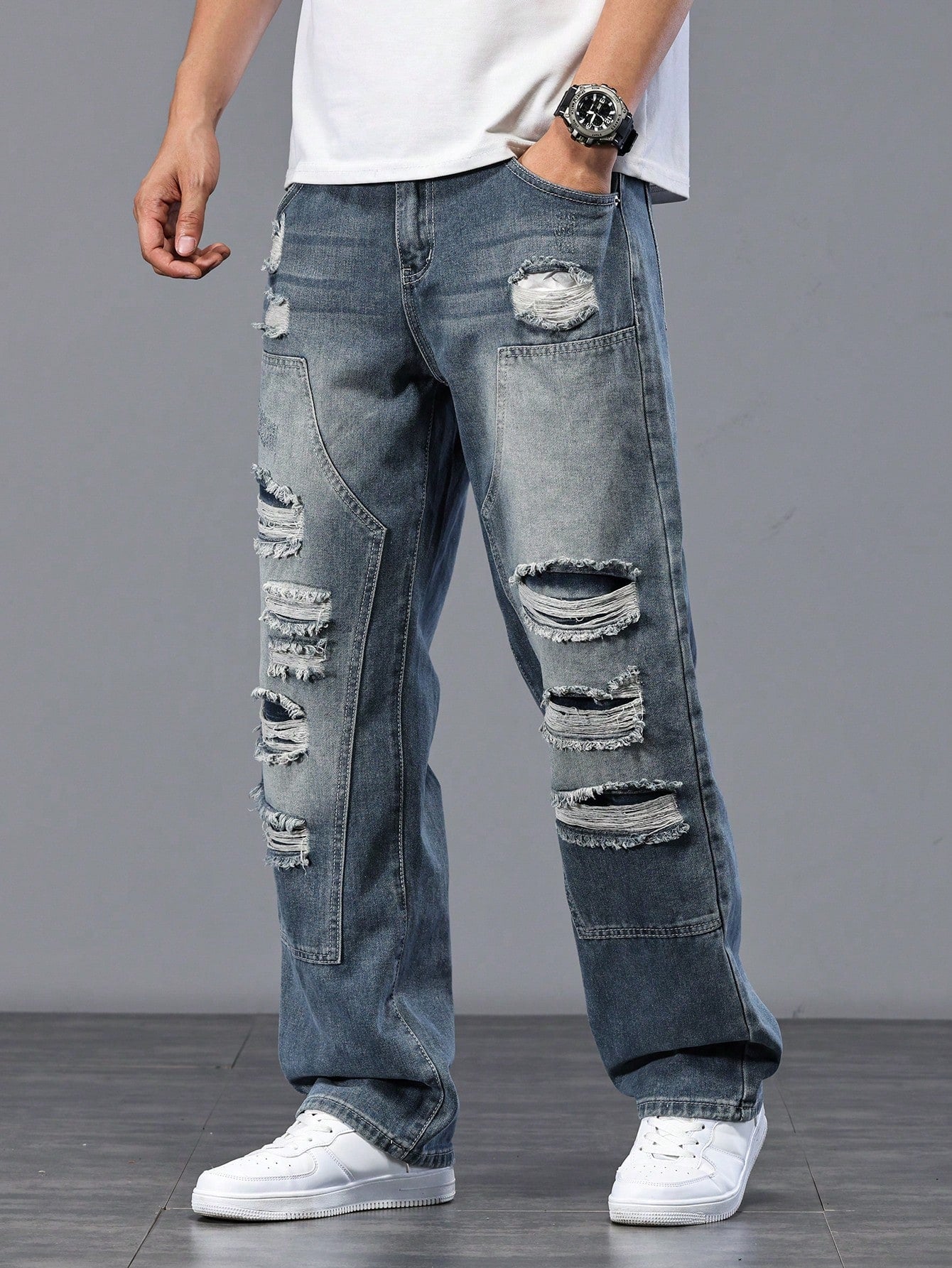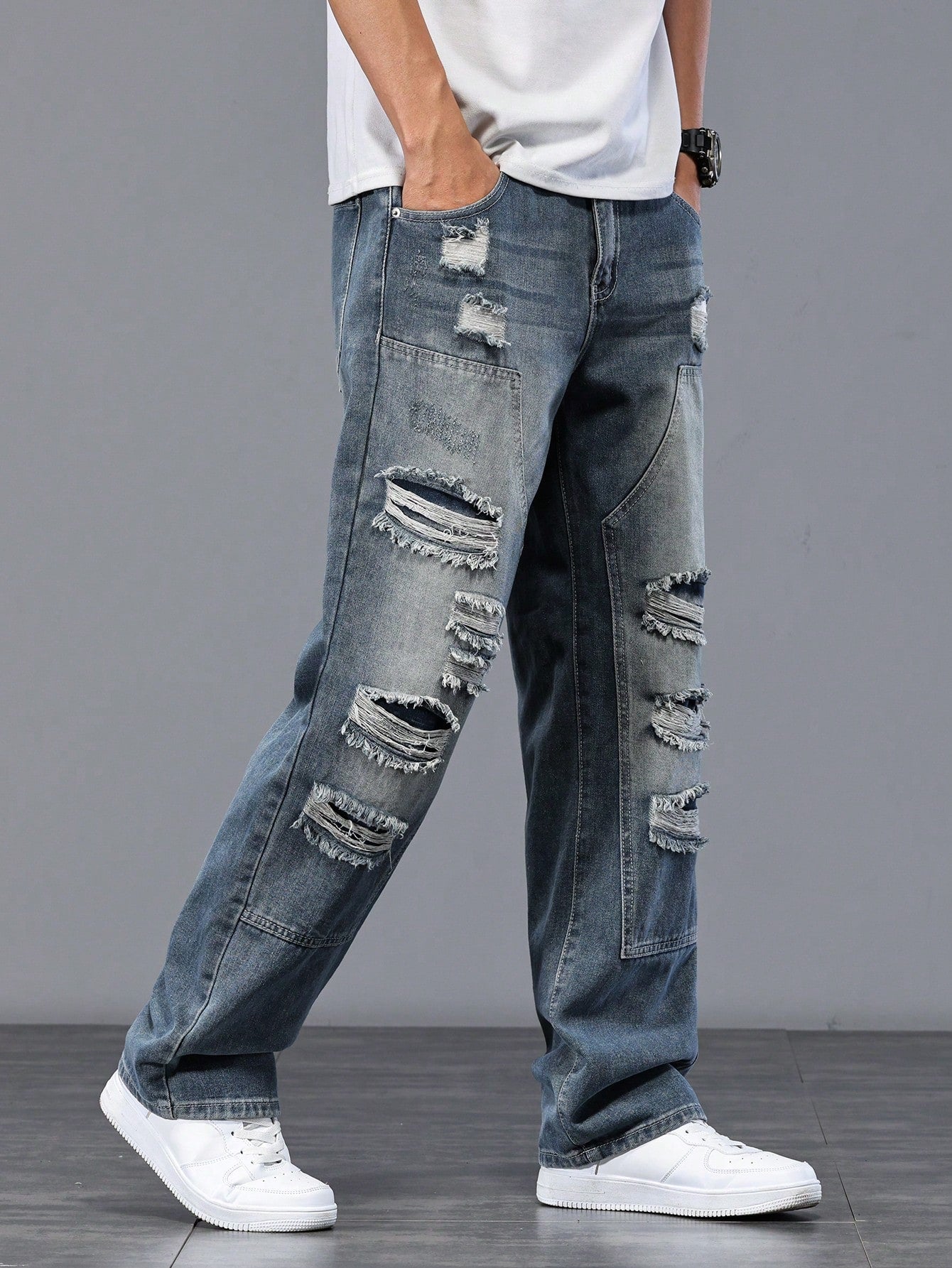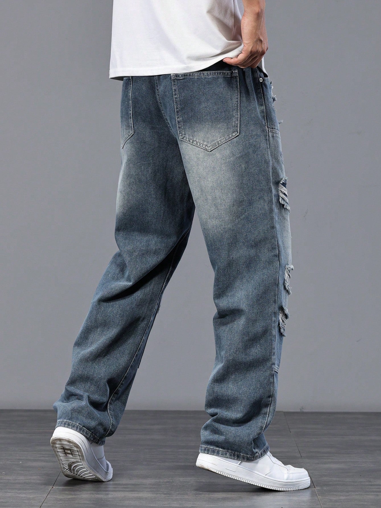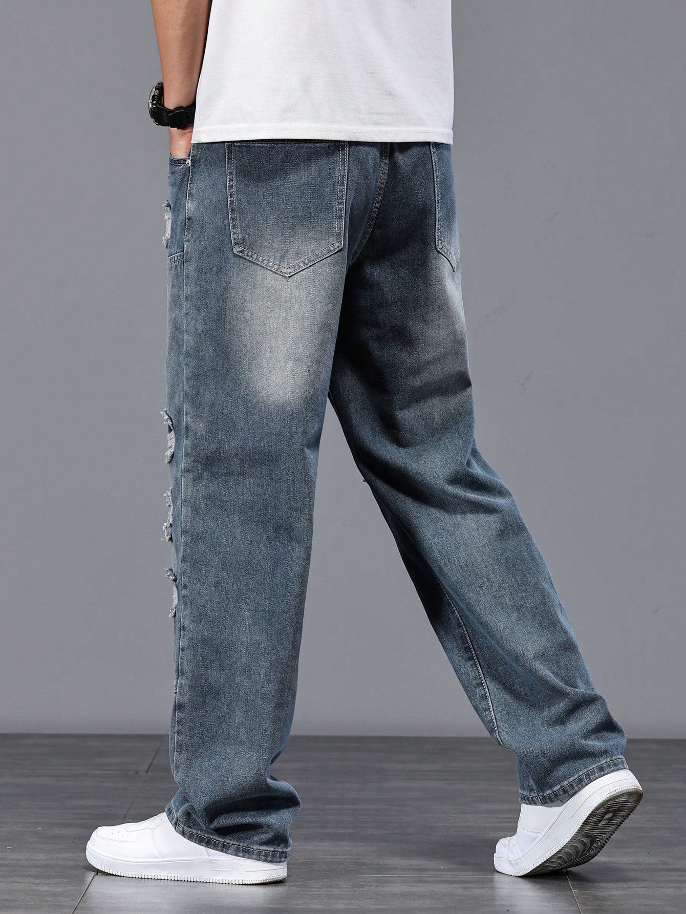 Manfinity Homme Men's Casual Streetwear Loose Straight Fit Distressed Denim Jeans
