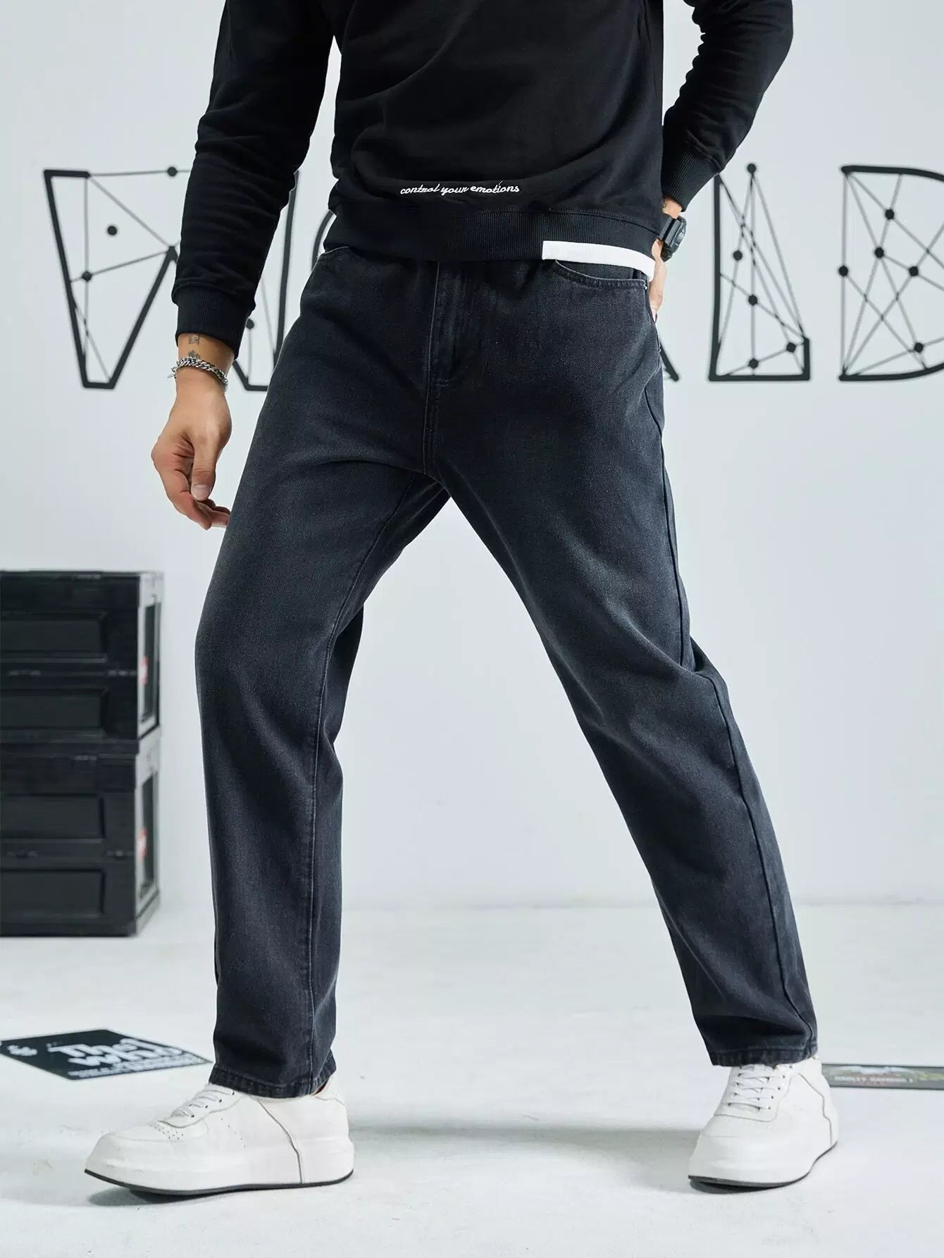 Men Slant Pocket Tapered Jeans