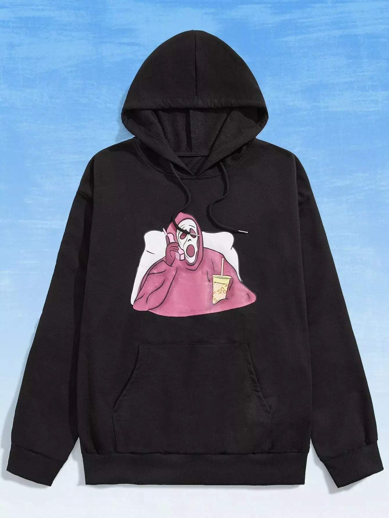 Guys Ghost Graphic Kangaroo Pocket Drawstring Hoodie