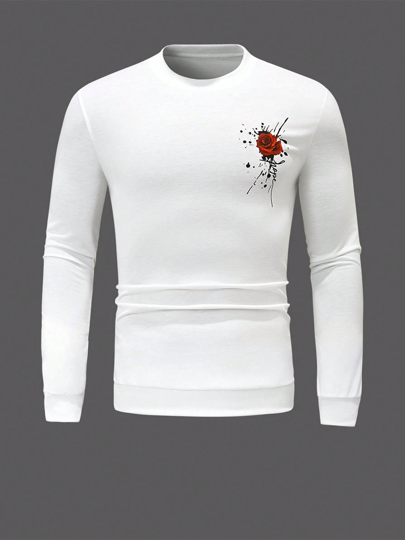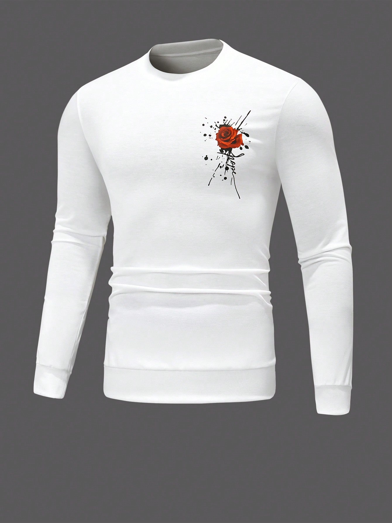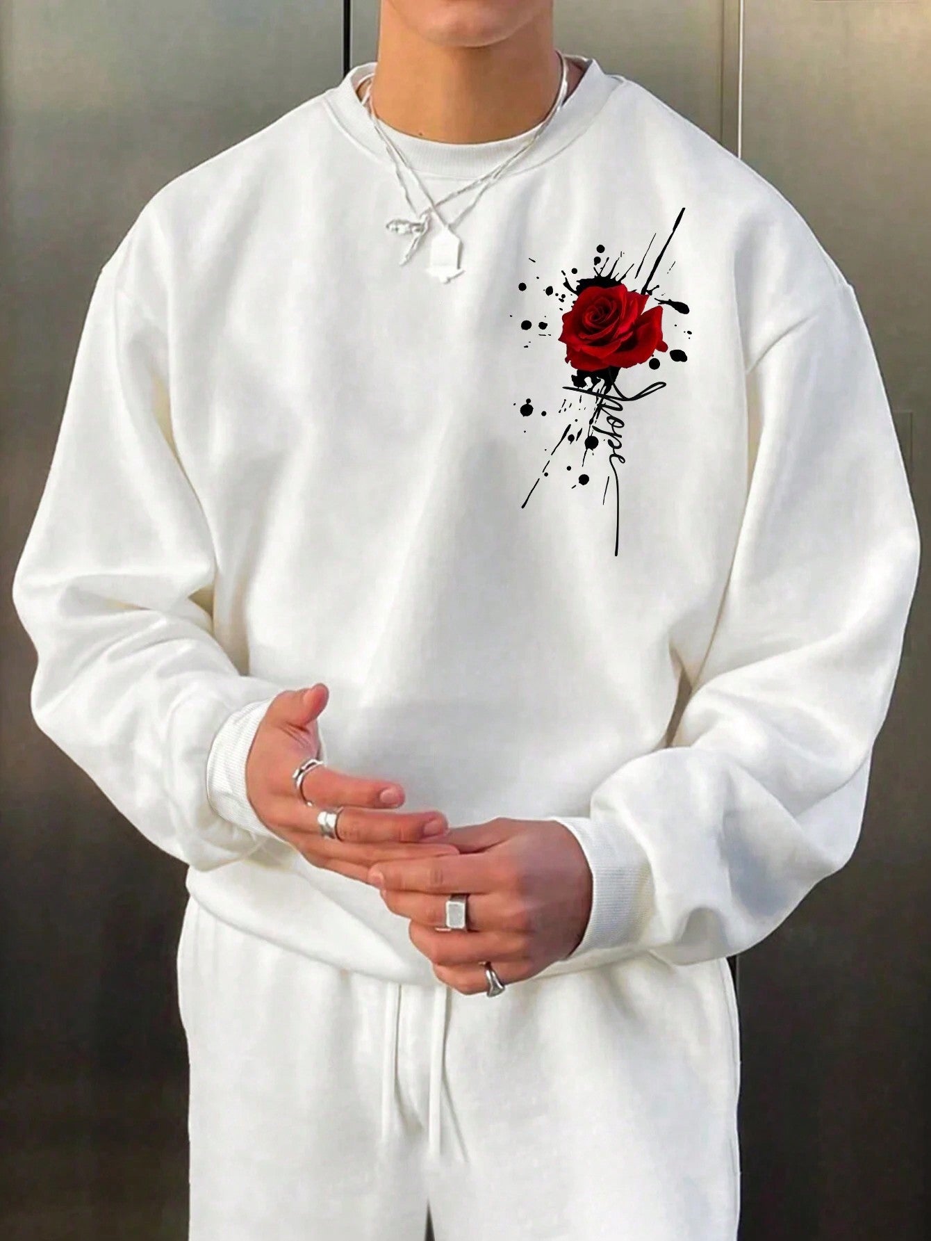Manfinity Homme Men's Plus Size Loose Fit Floral Printed Round Neck Drop Shoulder Long Sleeve Casual Sweatshirt