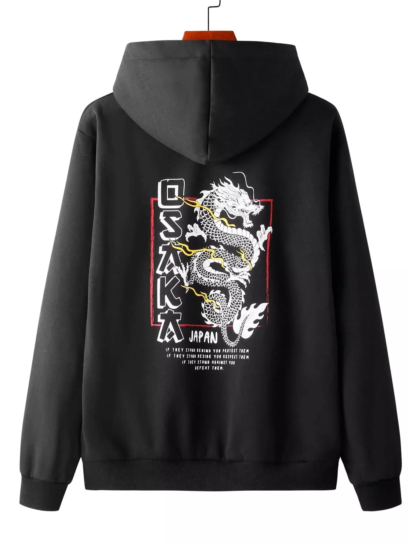 Men Chinese Dragon And Slogan Graphic Hoodie