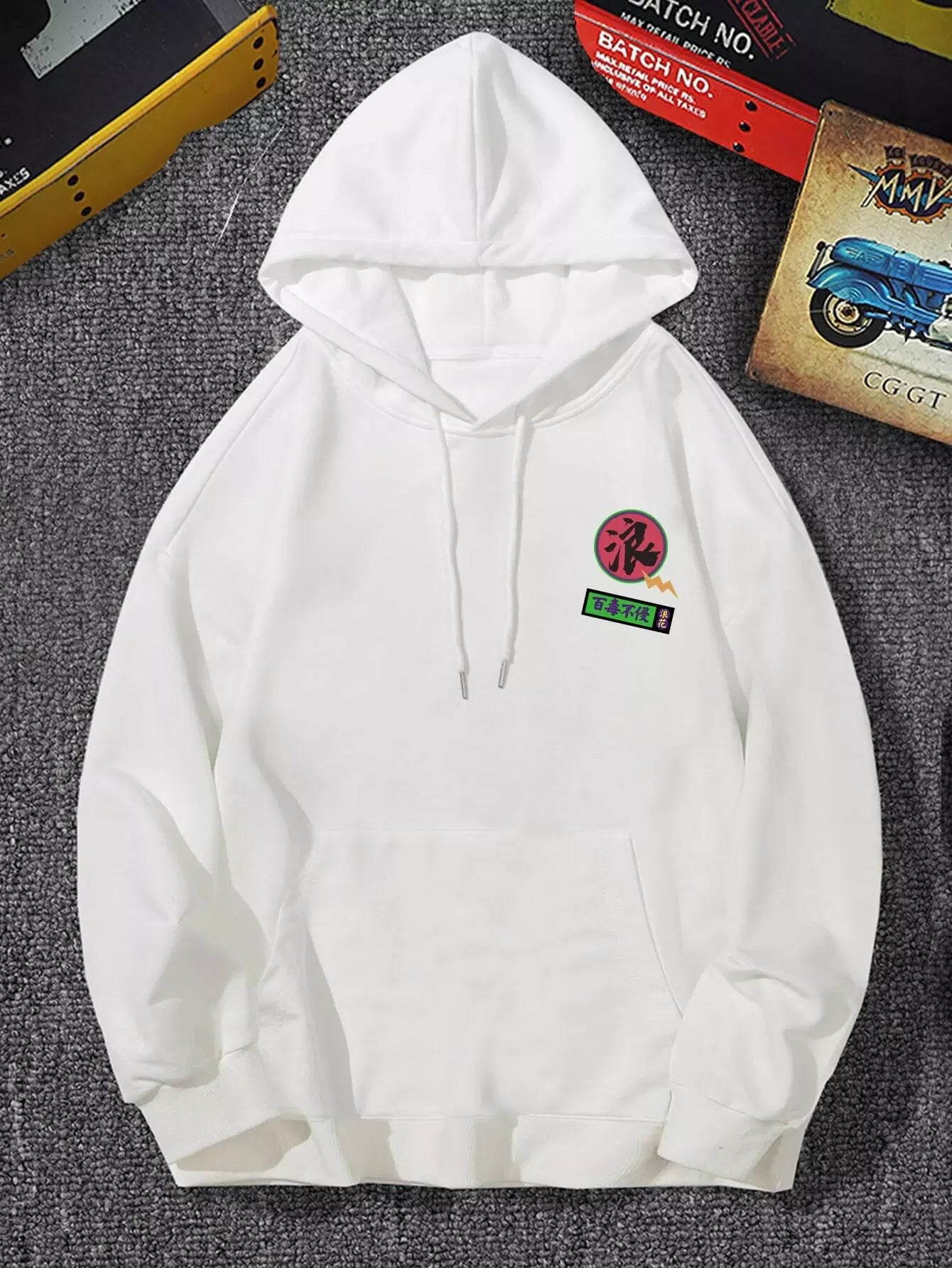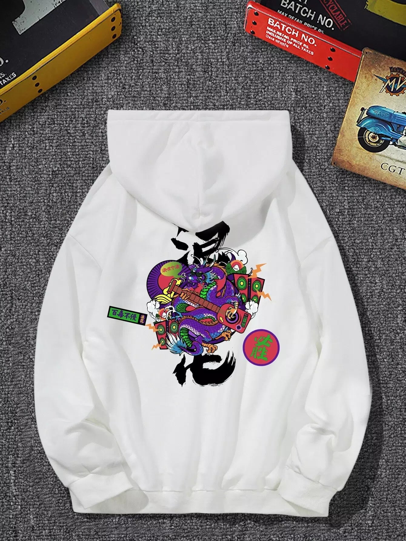 Men Chinese Letter & Dragon Graphic Kangaroo Pocket Drop Shoulder Drawstring Hoodie