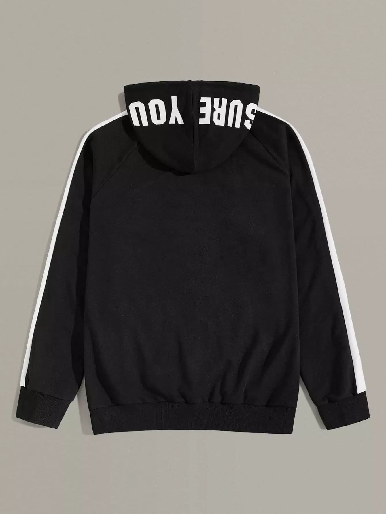 Men Contrast Sideseam Raglan Sleeve Pocket Front Hoodie