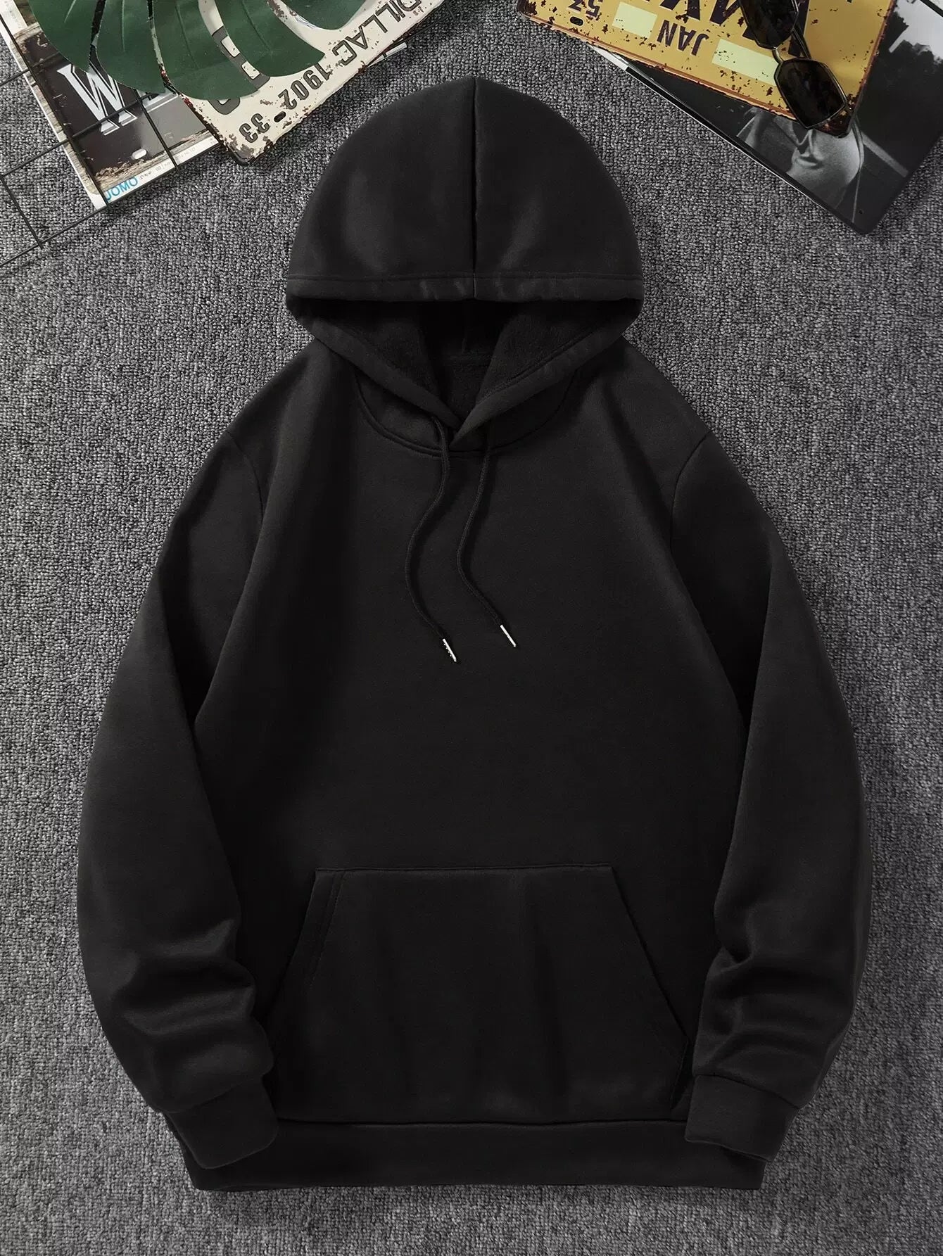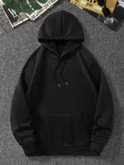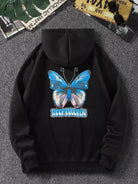 Men Letter And Butterfly Print Drawstring Thermal Lined Hoodie