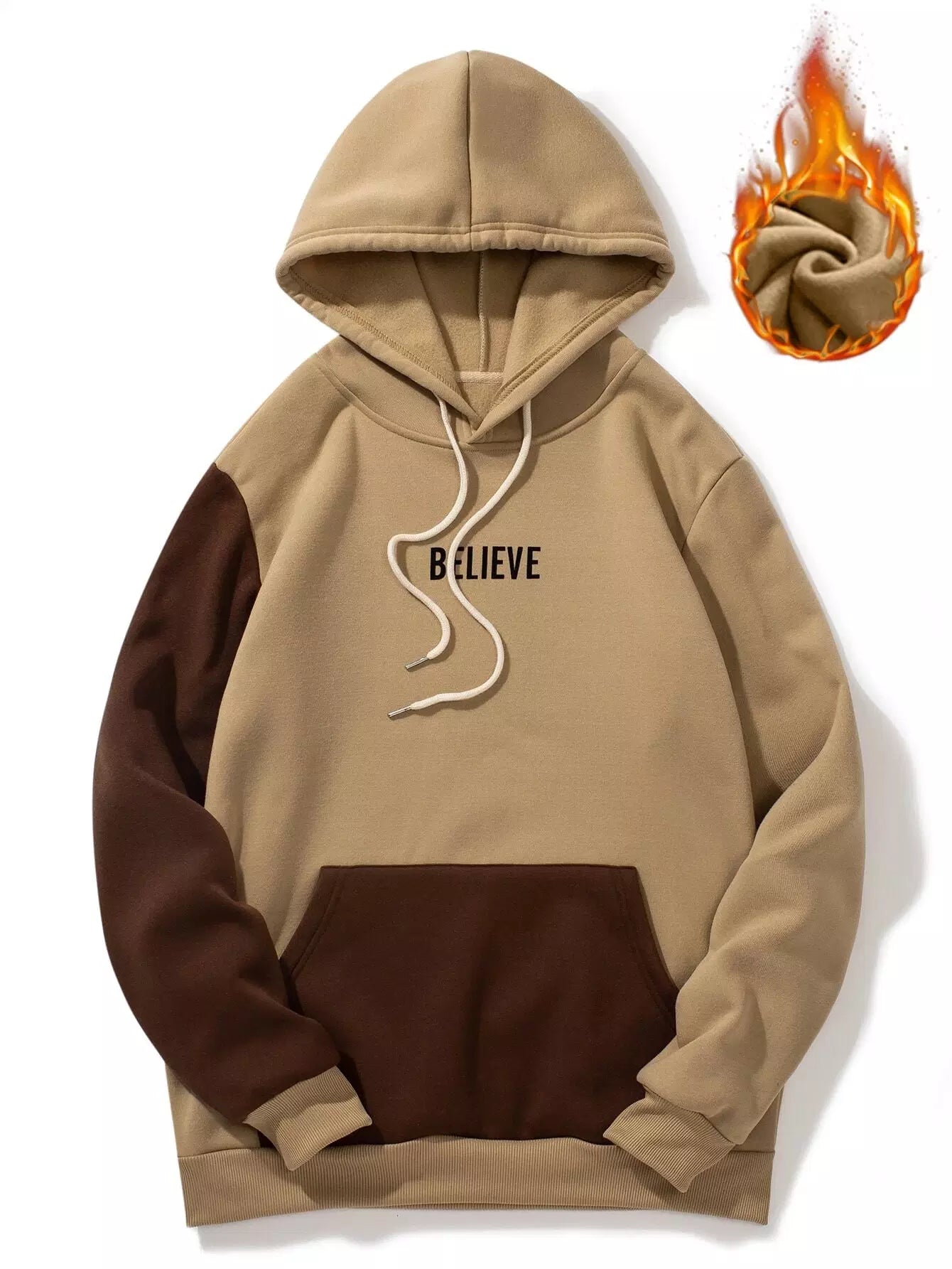 Men Letter Graphic Drawstring Thermal Lined Hoodie