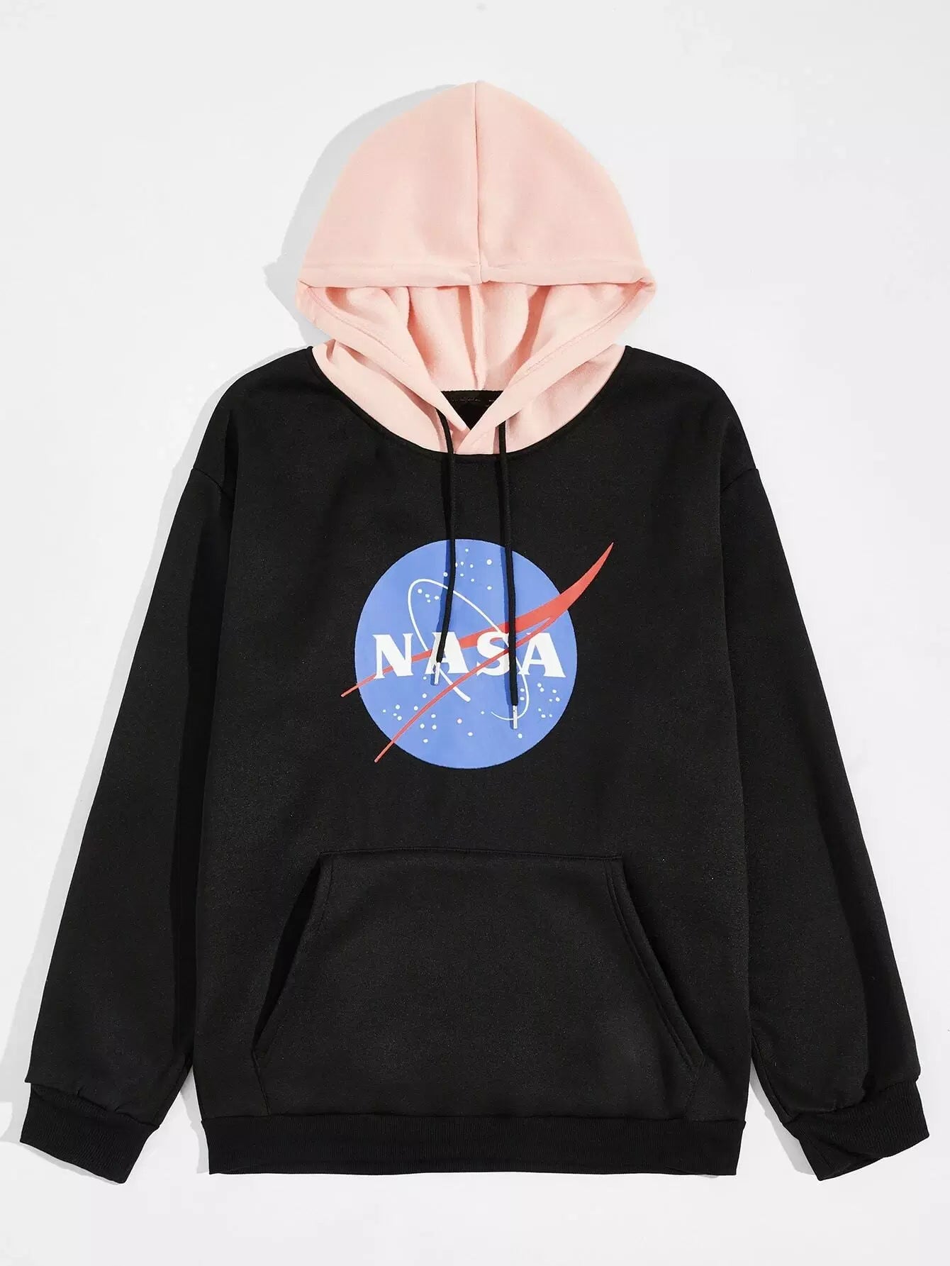 Men Letter Graphic Kangaroo Pocket Drawstring Hoodie