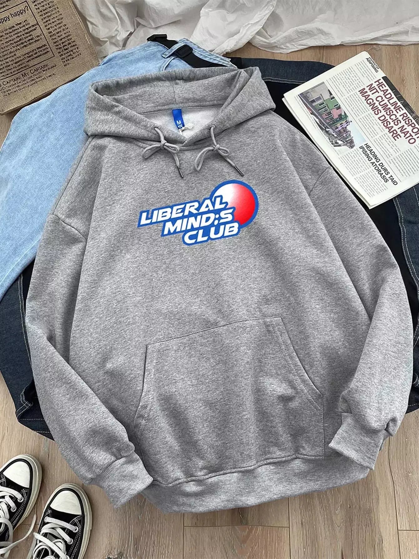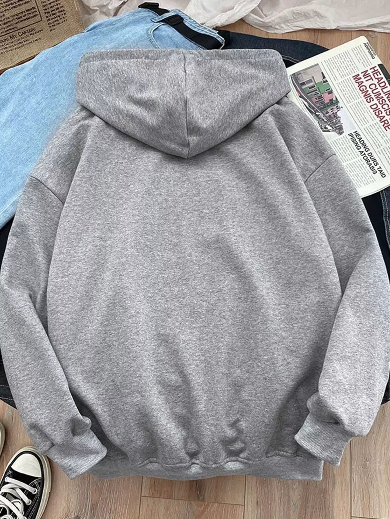 Men Letter Graphic Kangaroo Pocket Drawstring Hoodie