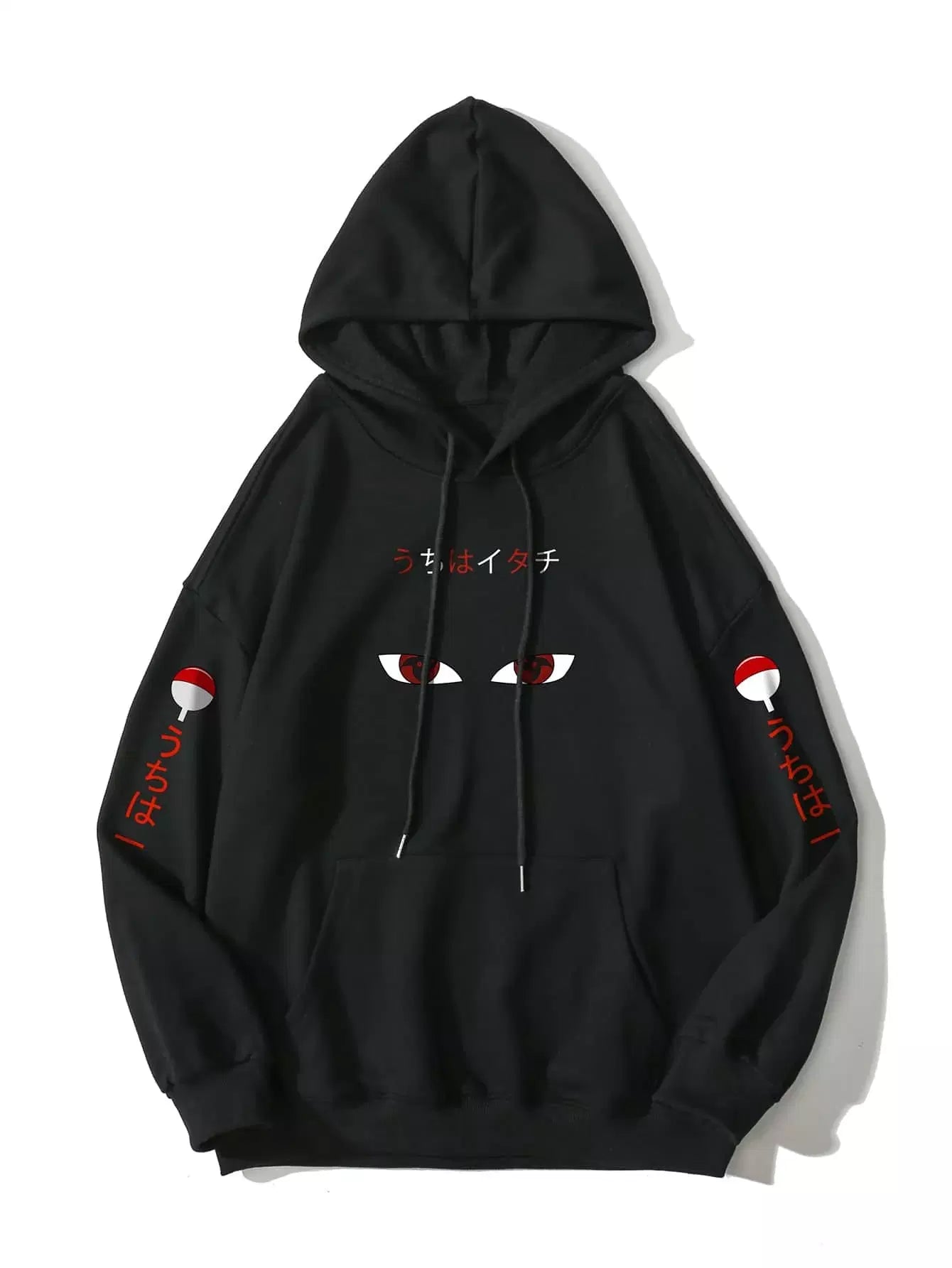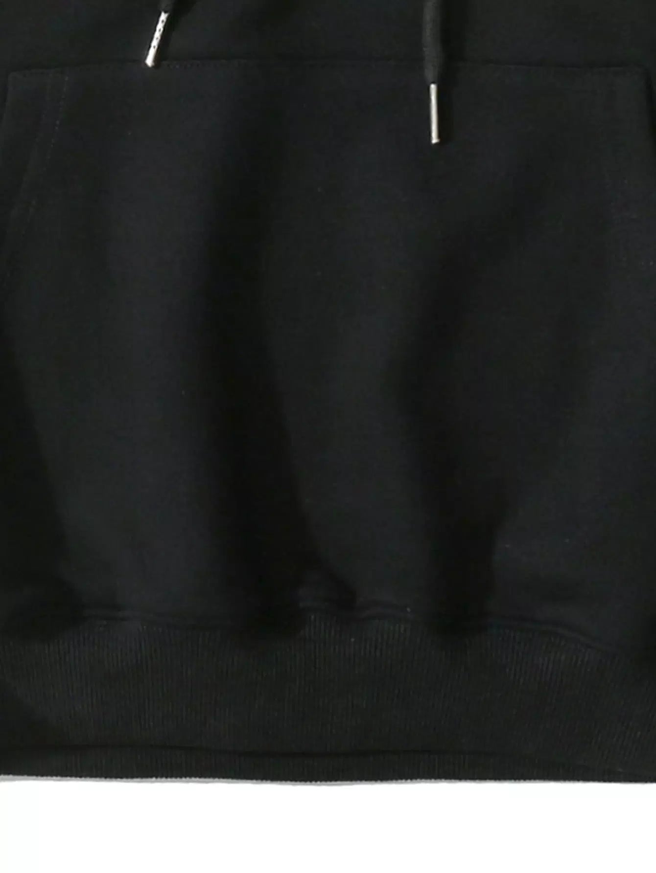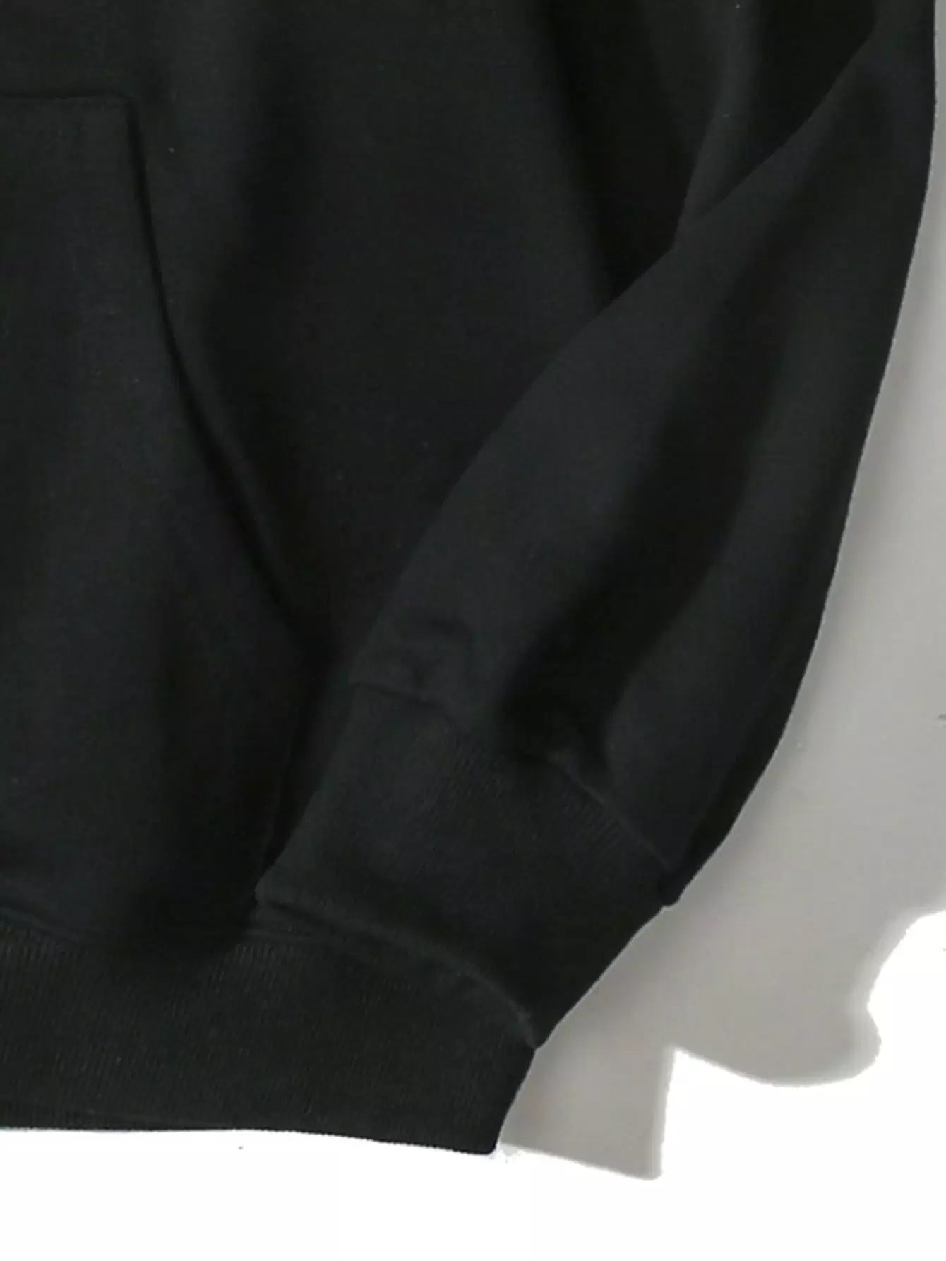 Men Letter & Graphic Kangaroo Pocket Drawstring Sweatshirt
