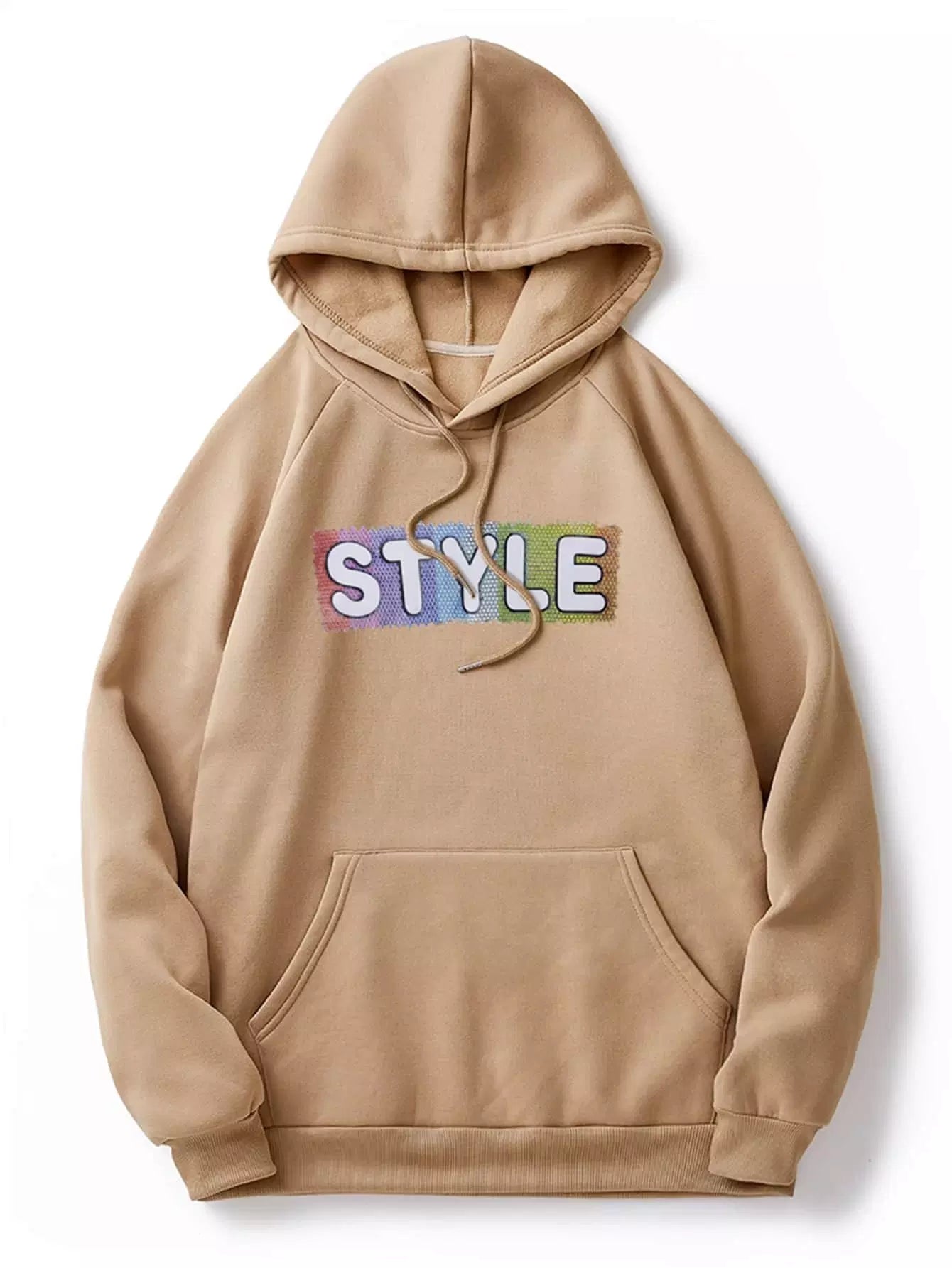 Men Letter Graphic Raglan Sleeve Drawstring Thermal Lined Hoodie