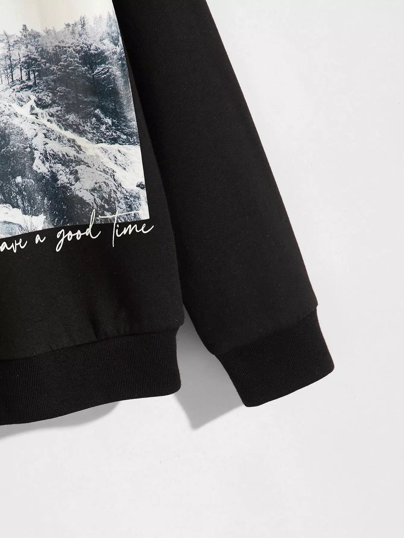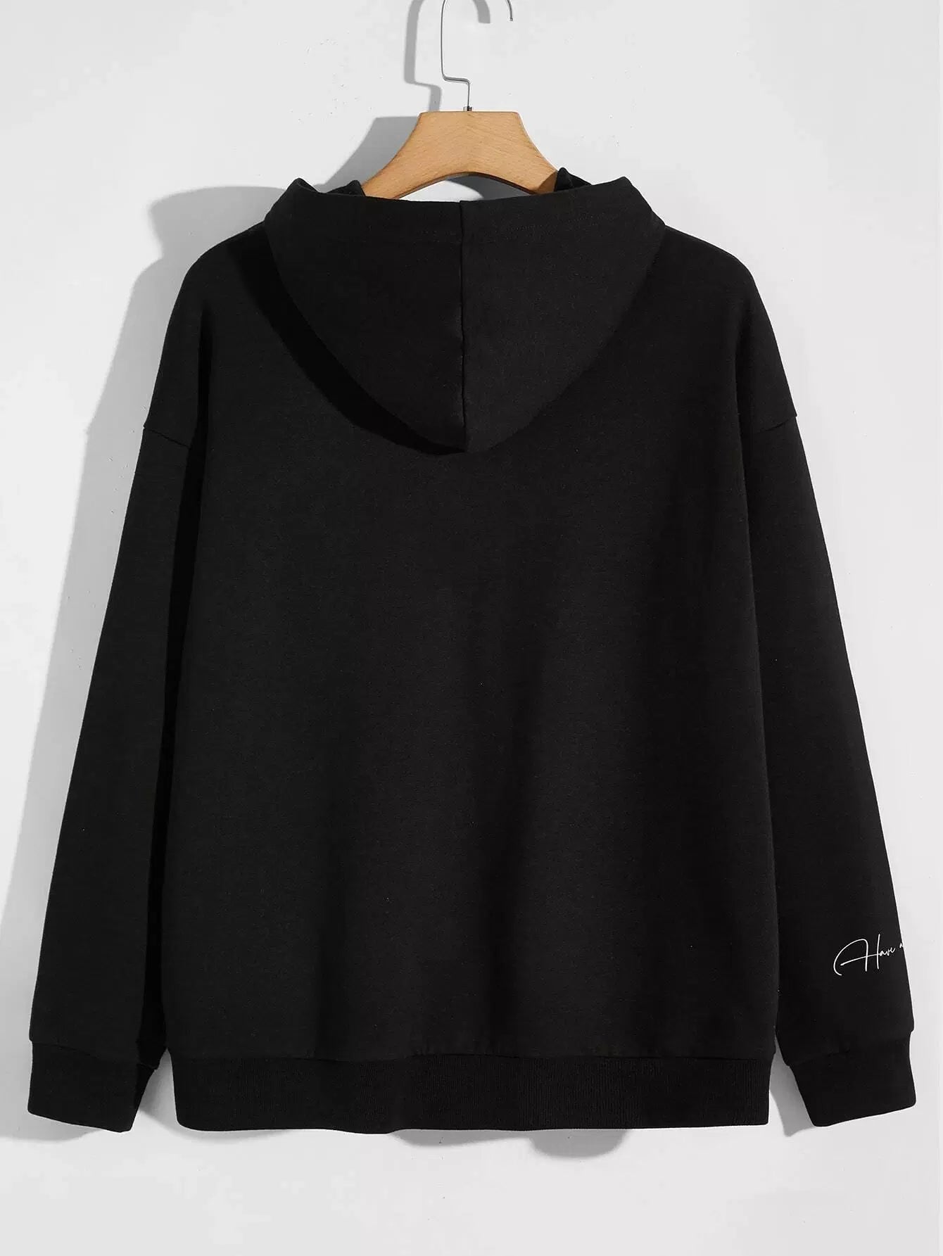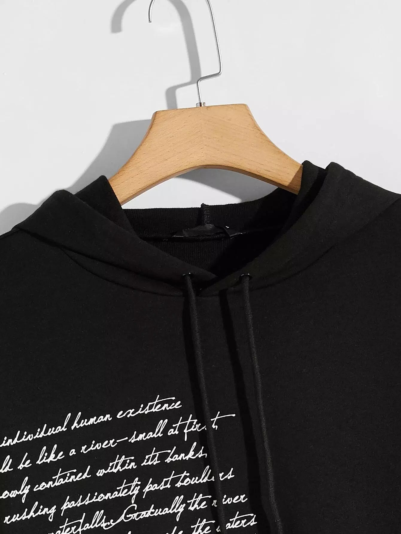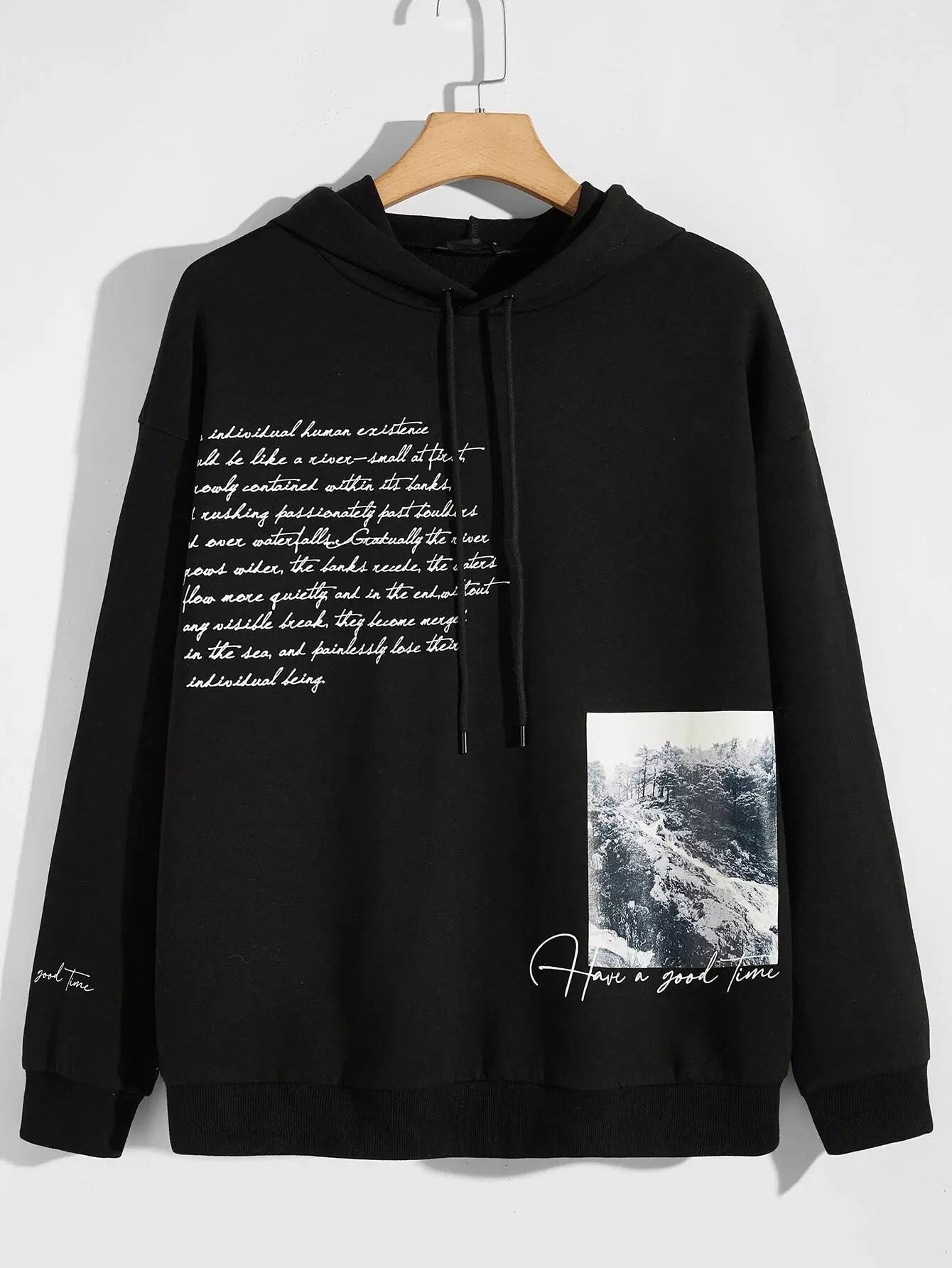 Men Slogan & Photo Print Drop Shoulder Drawstring Hoodie