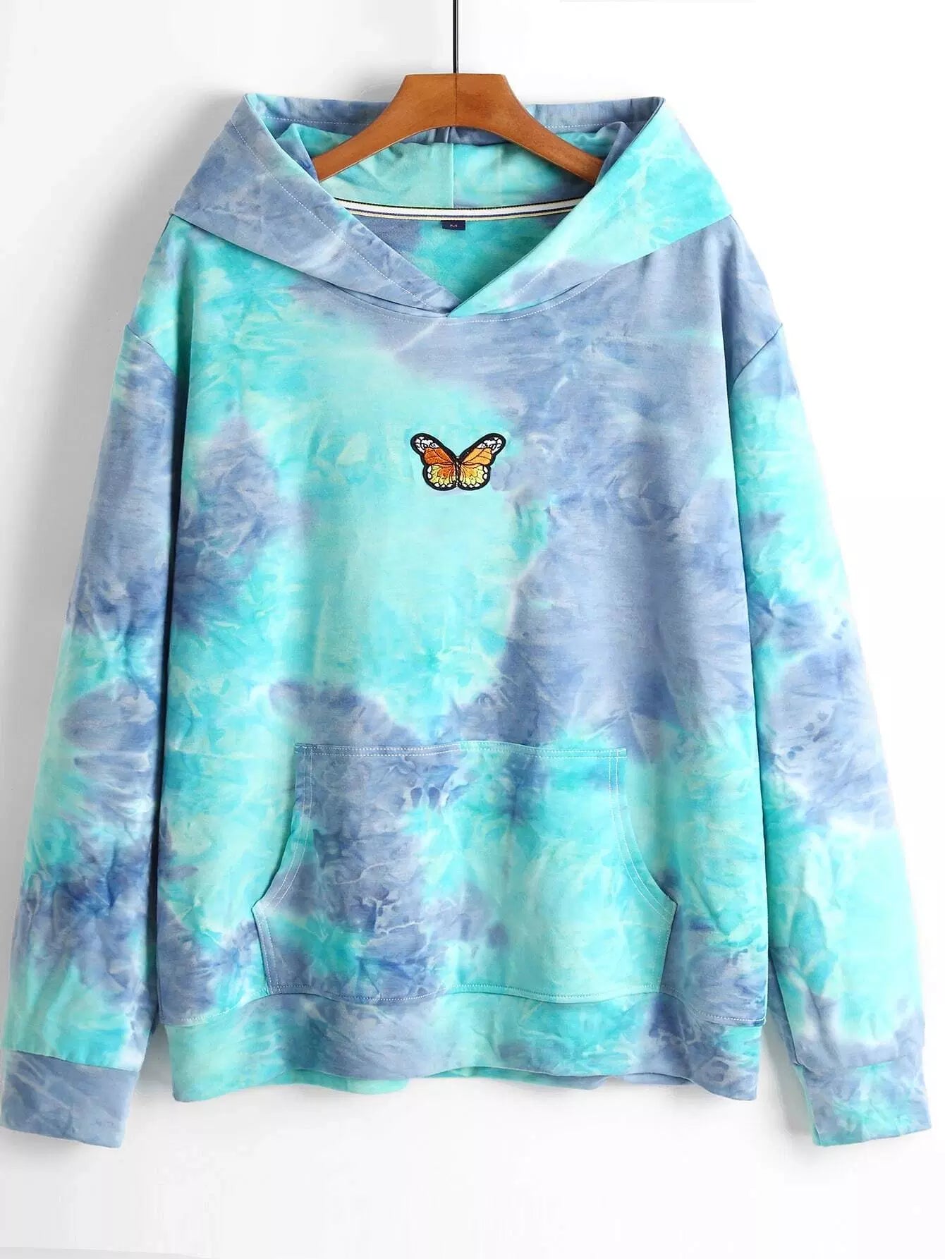 Men Tie Dye Butterfly Patched Hoodie