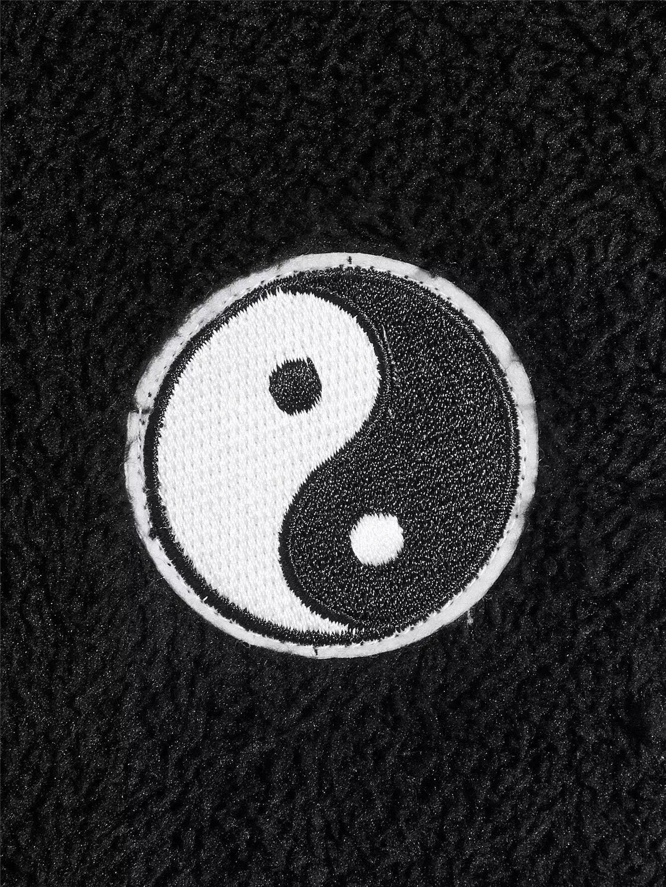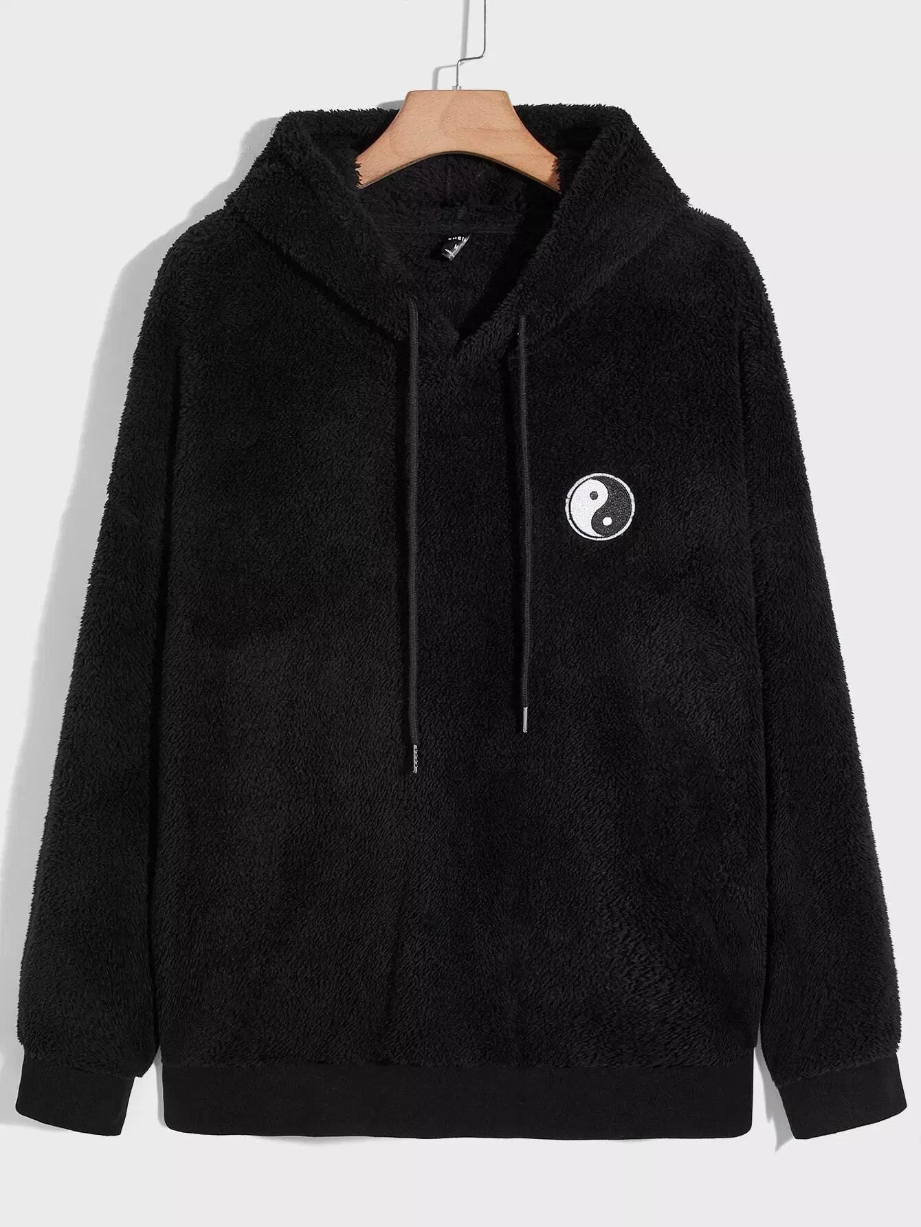 Men Yin & Yang Drawstring Flannel Hoodie