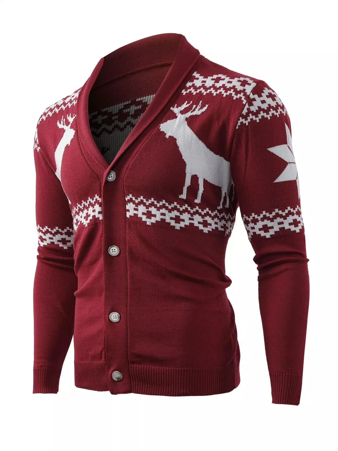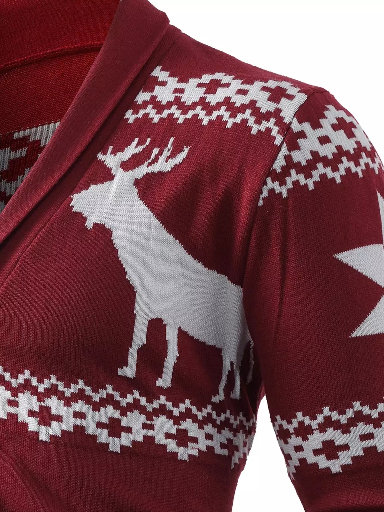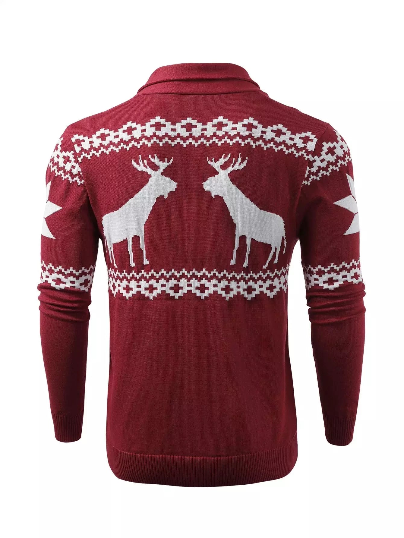 Men Christmas Elk & Geo Pattern Shawl Collar Cardigan