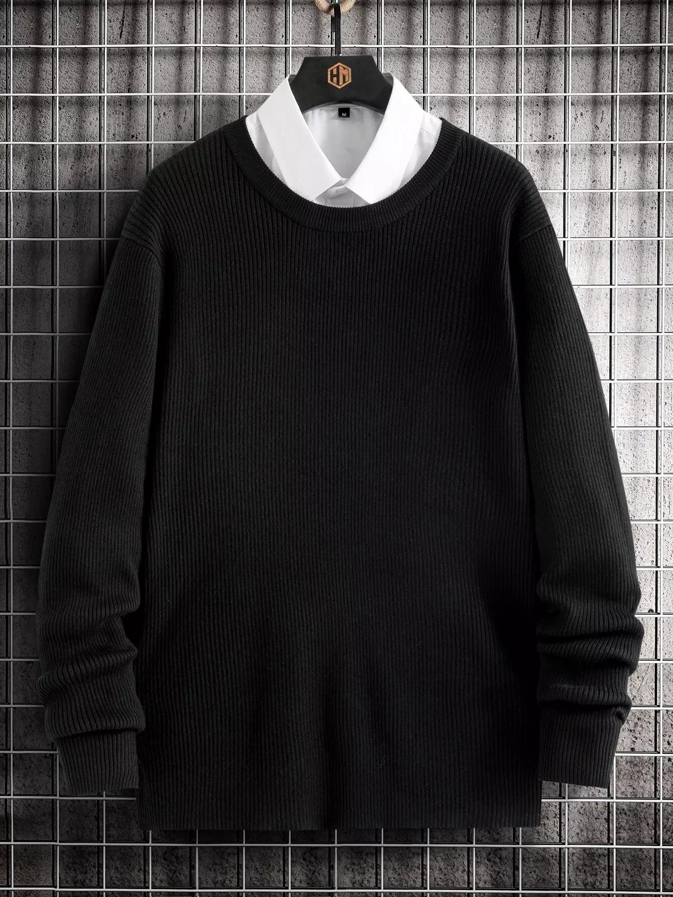 Men Drop Shoulder Ribbed Knit Sweater Without Shirt