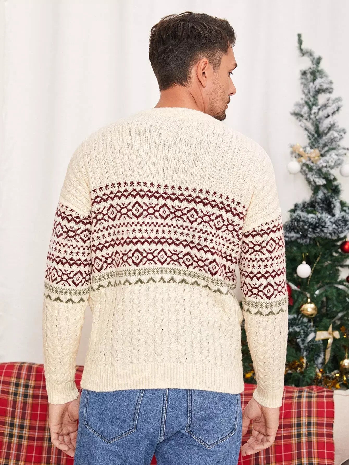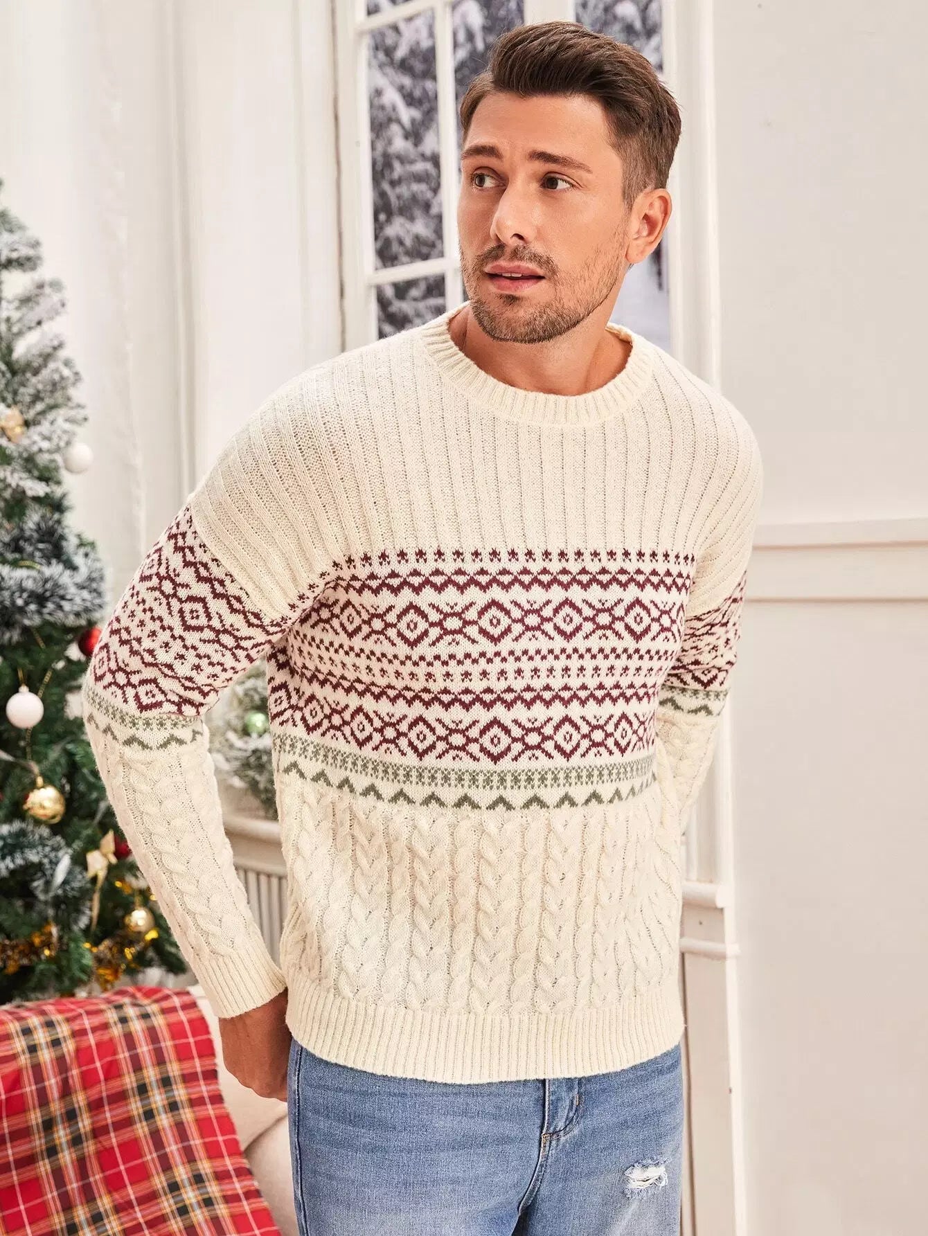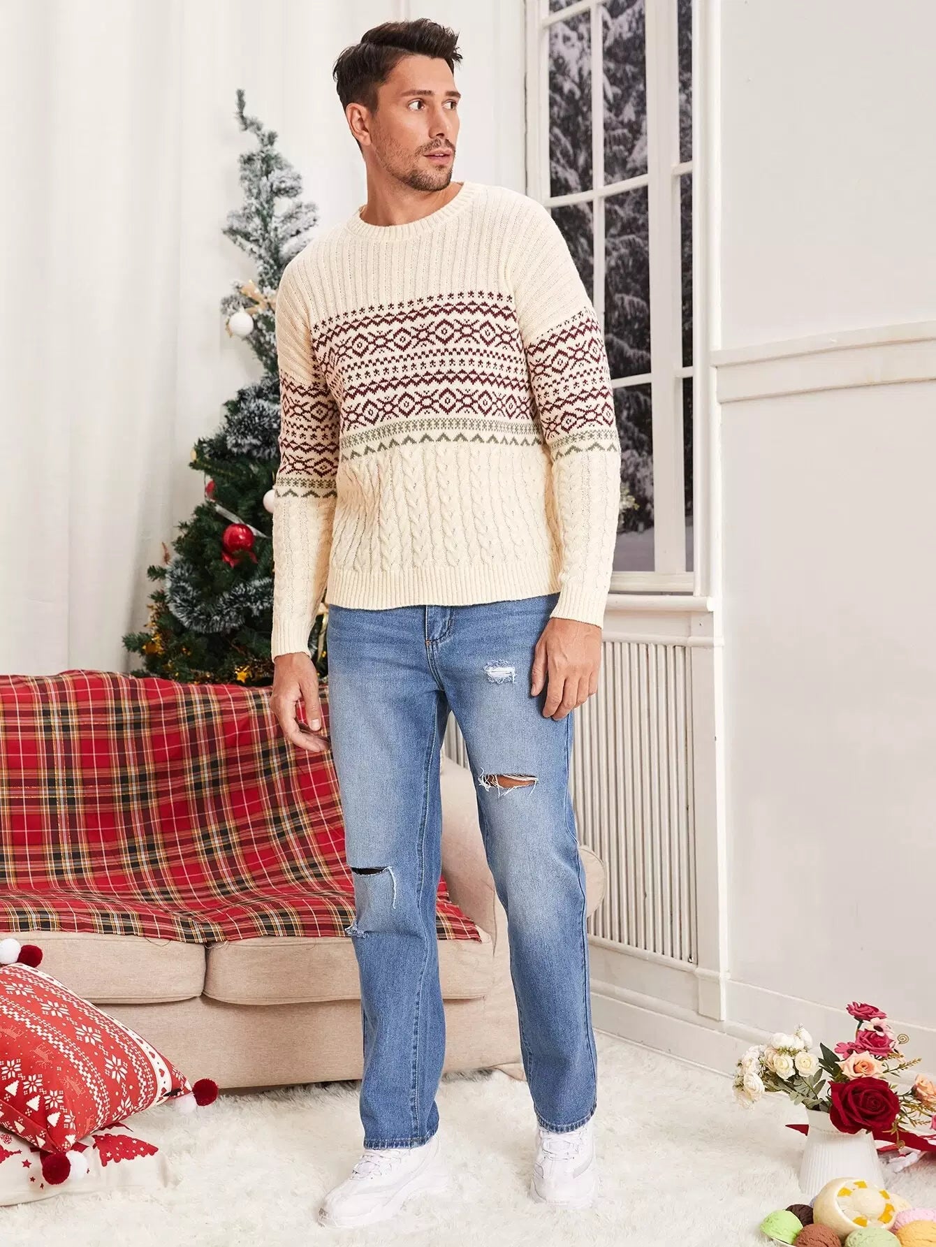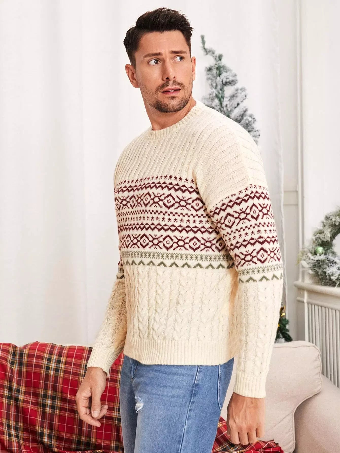 Men Geo Pattern Cable Knit Drop Shoulder Sweater