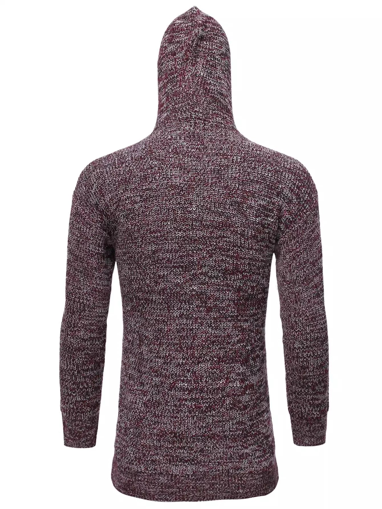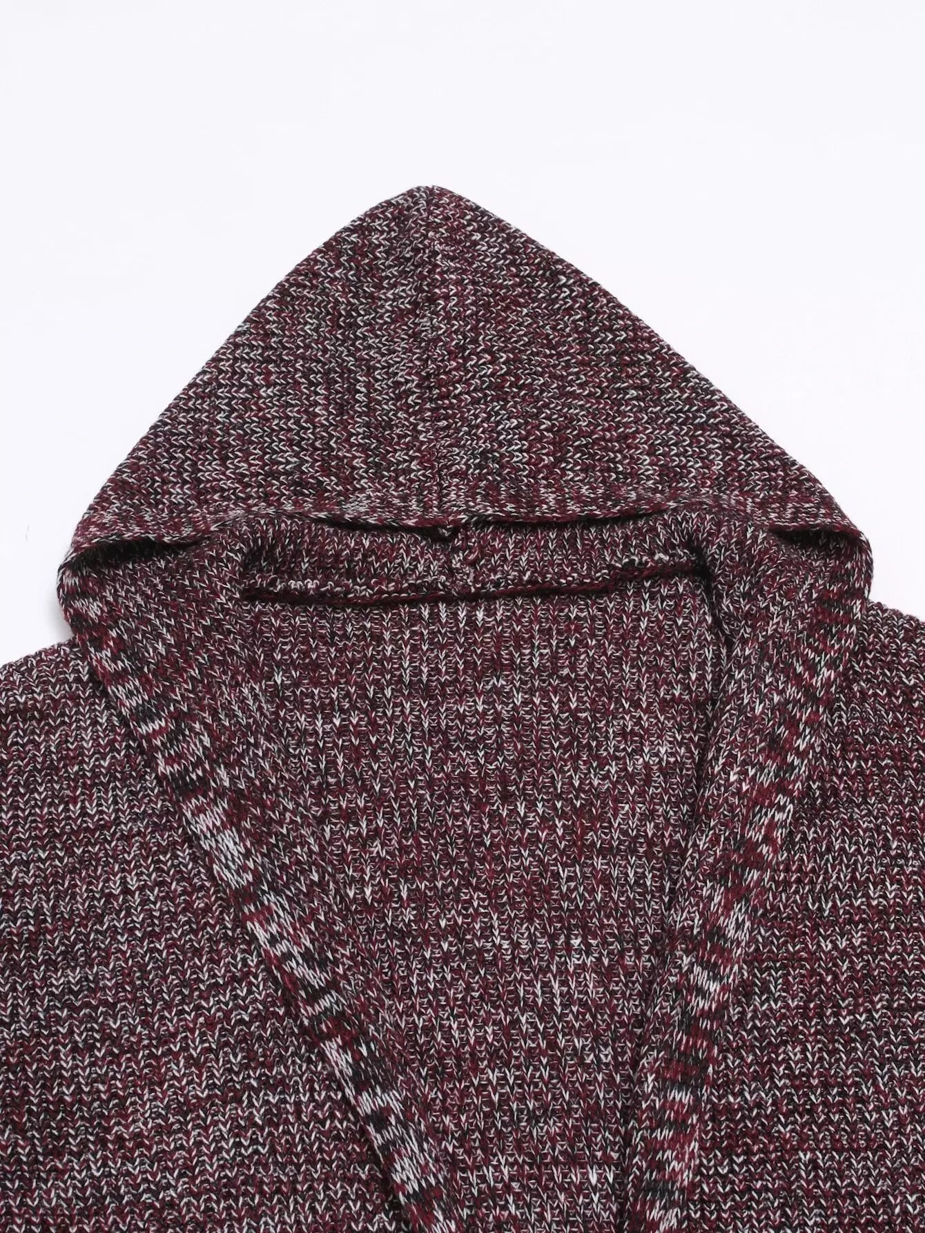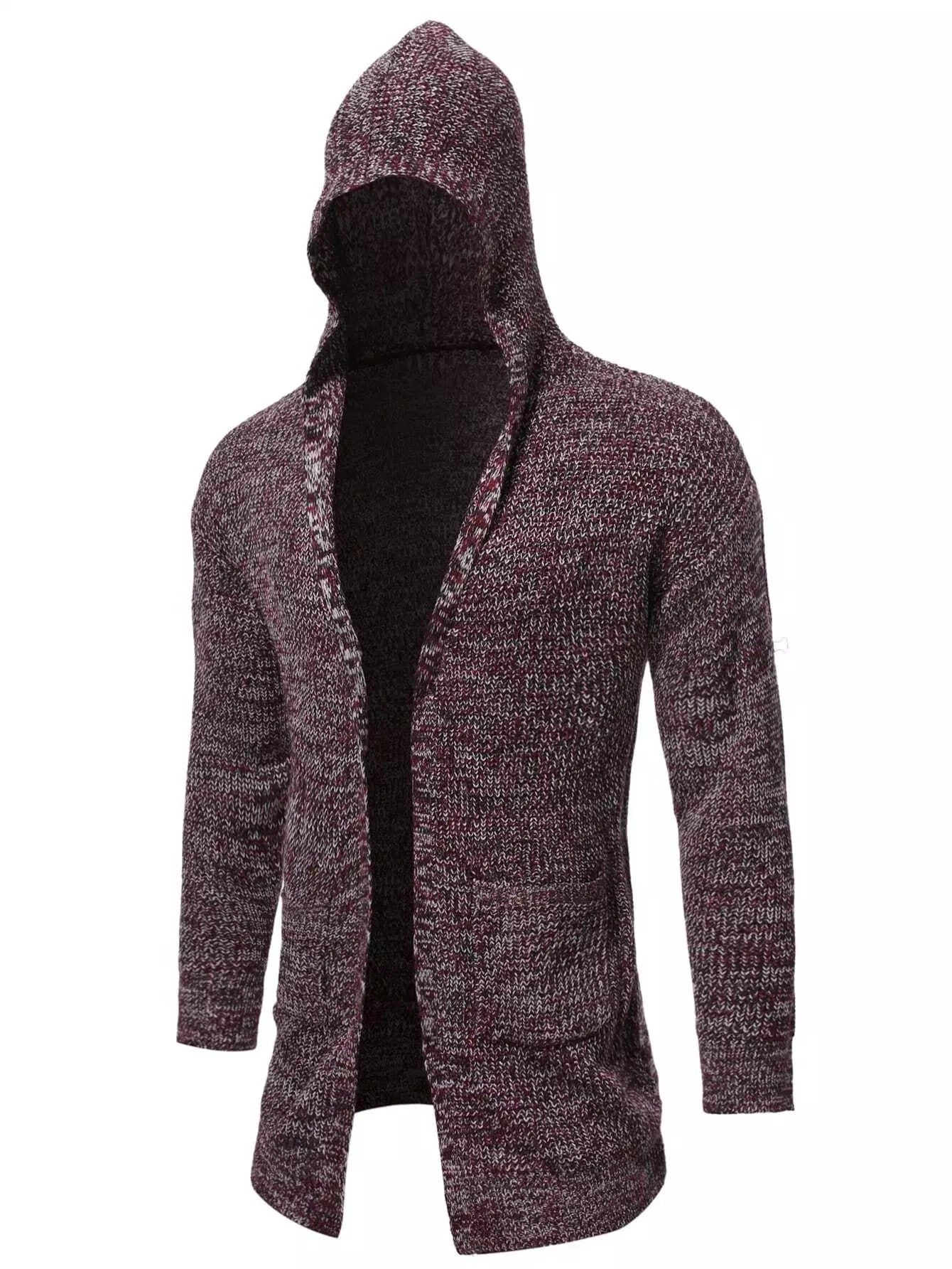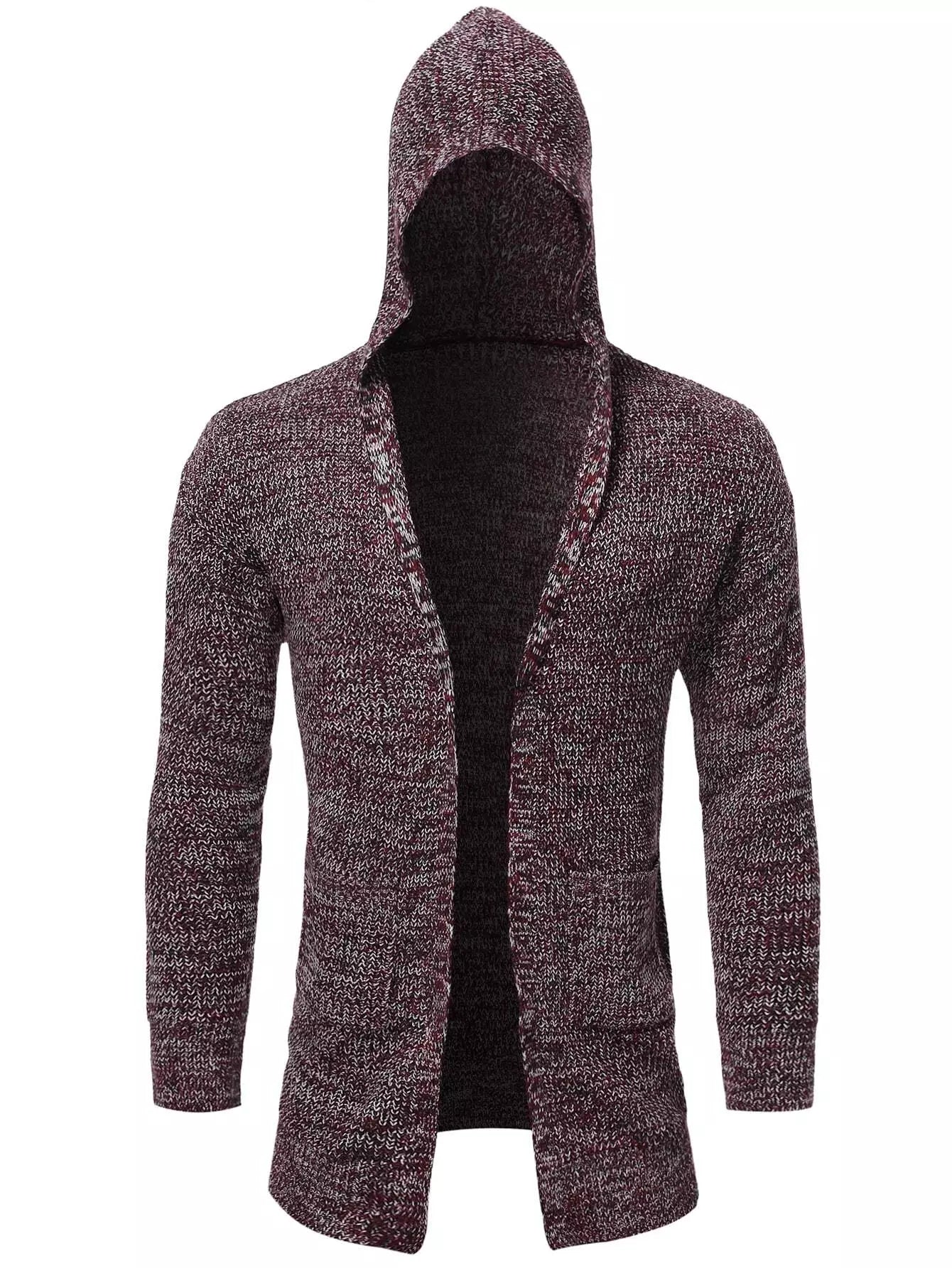 Men Marled Knit Pocket Patched Hooded Cardigan