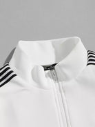 Men Embroidery Detail Striped Tape Detail Zipper Placket Jacket