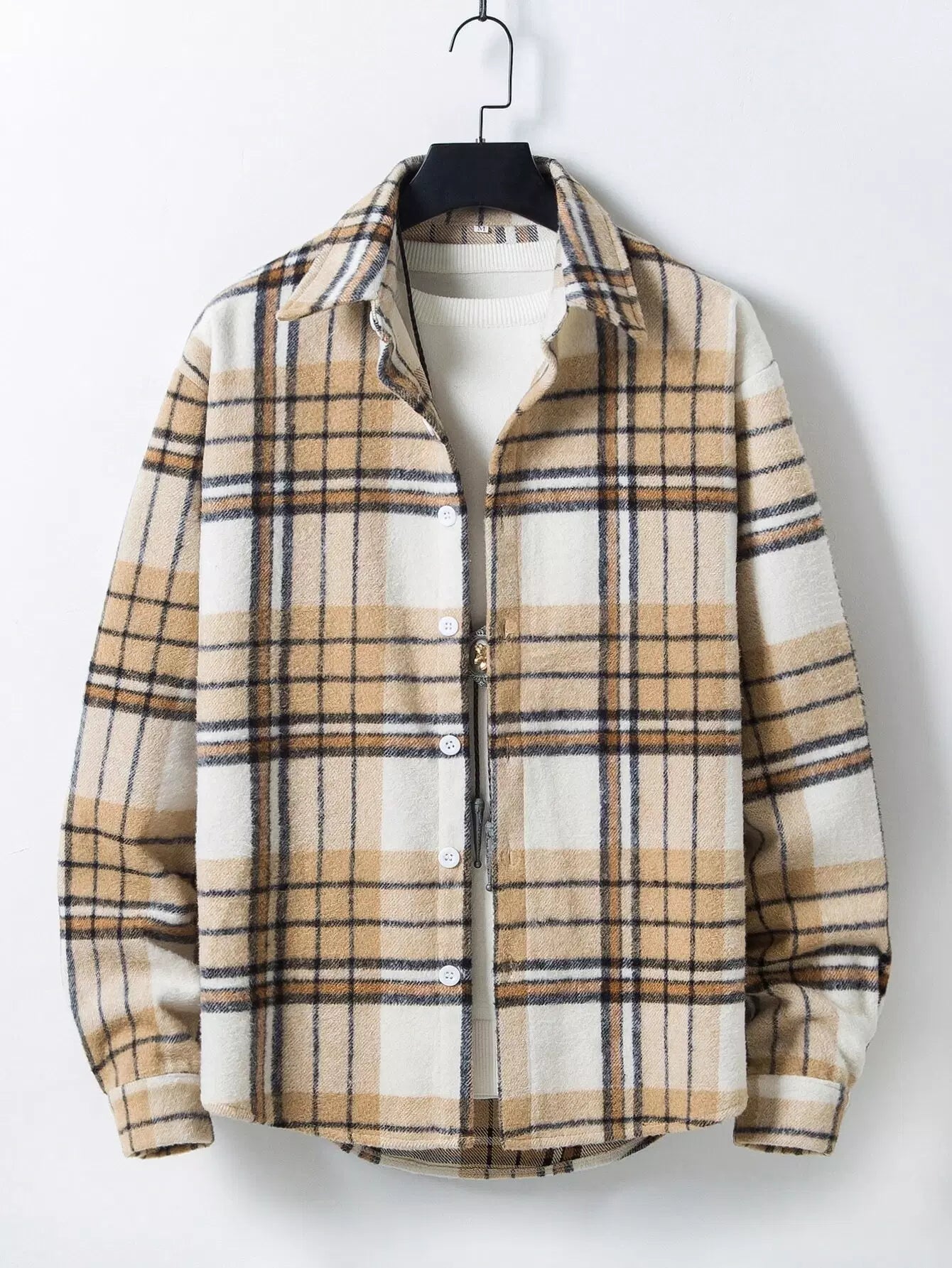 Men Plaid Overcoat Without Tee