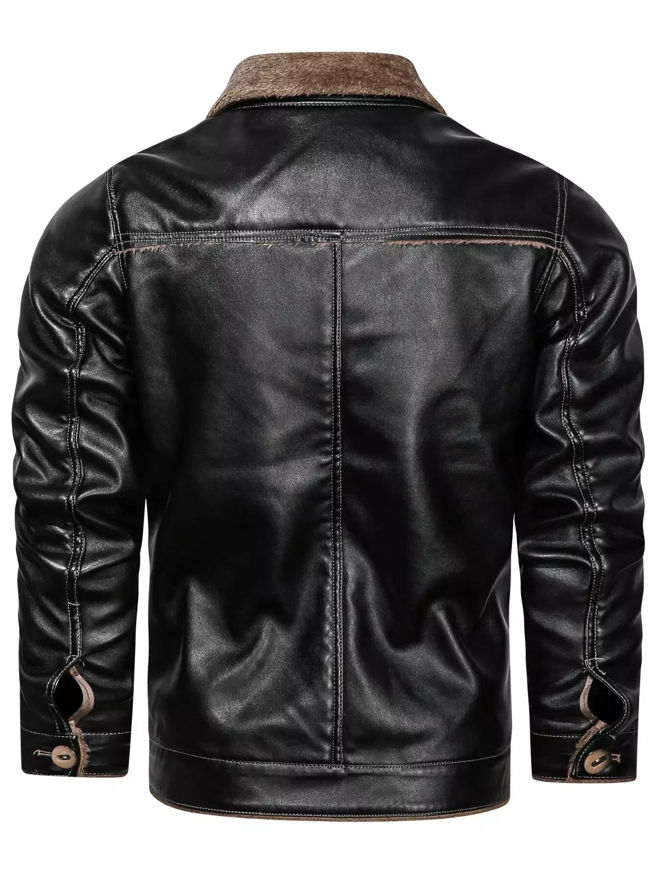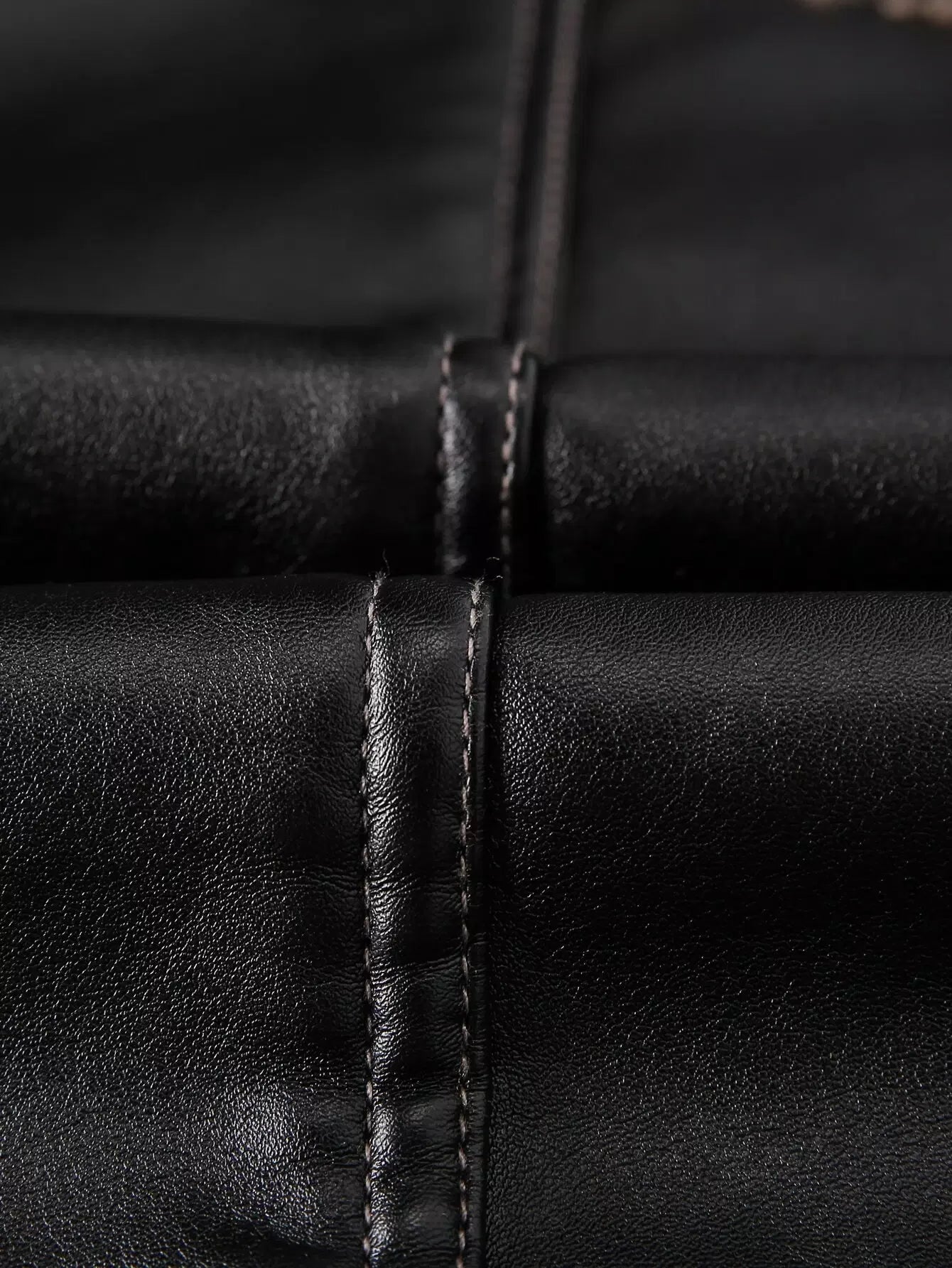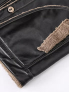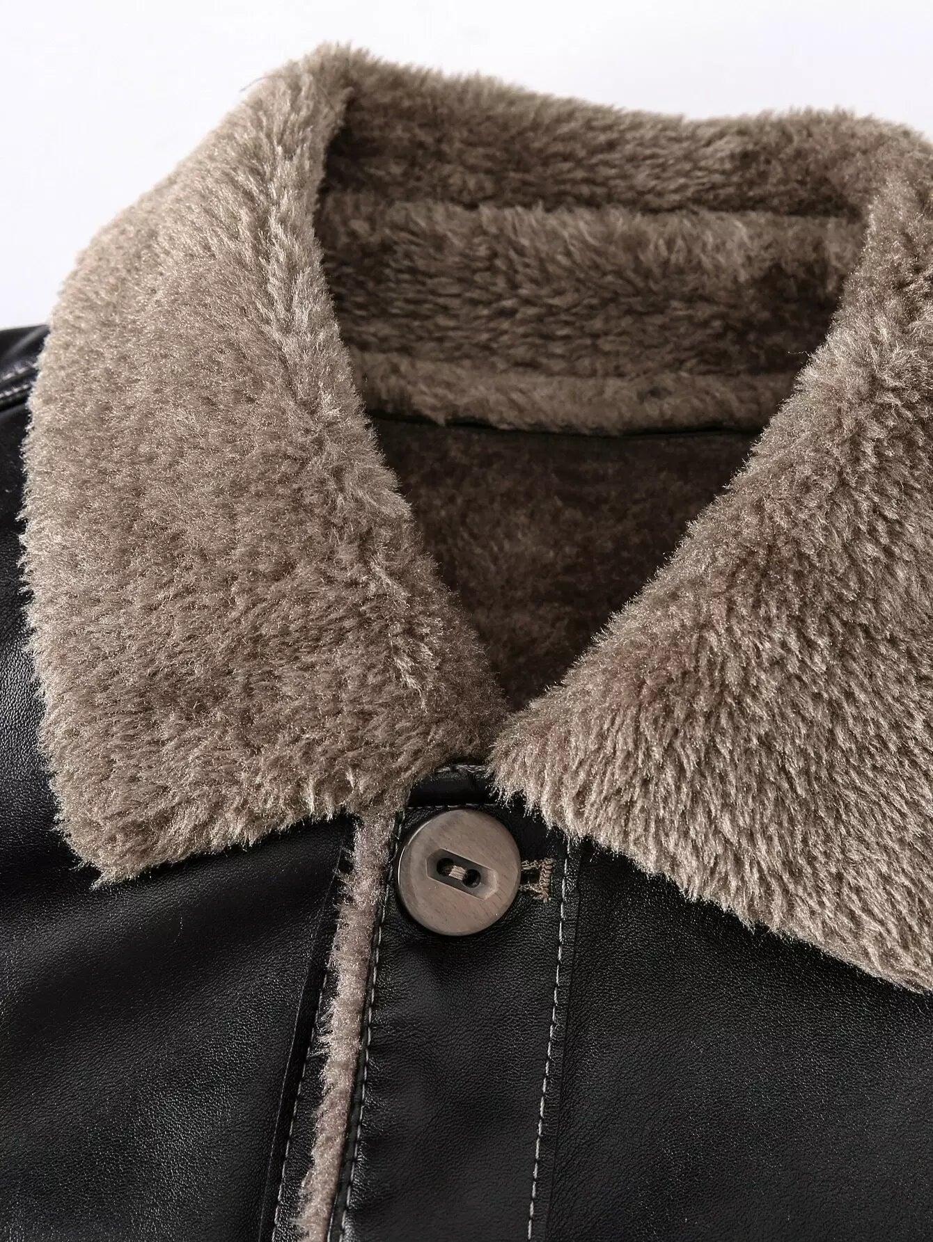 Men Slant Pockets Teddy Lined PU Leather Jacket