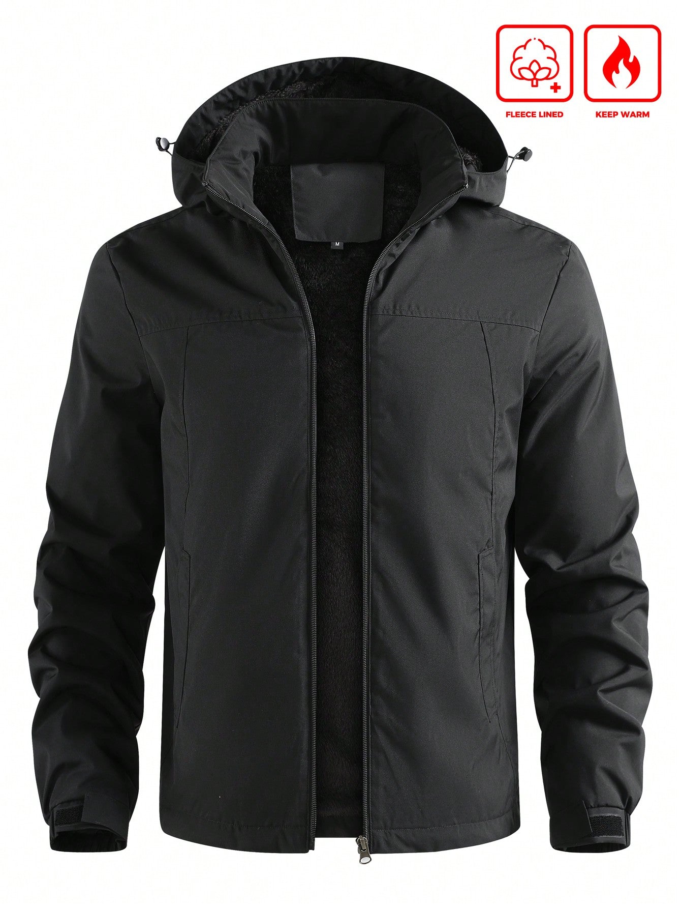 Manfinity Homme Men Casual Hooded Thermal Lined Wind Resistant Jacket, Outdoor Coat, Going Out Black